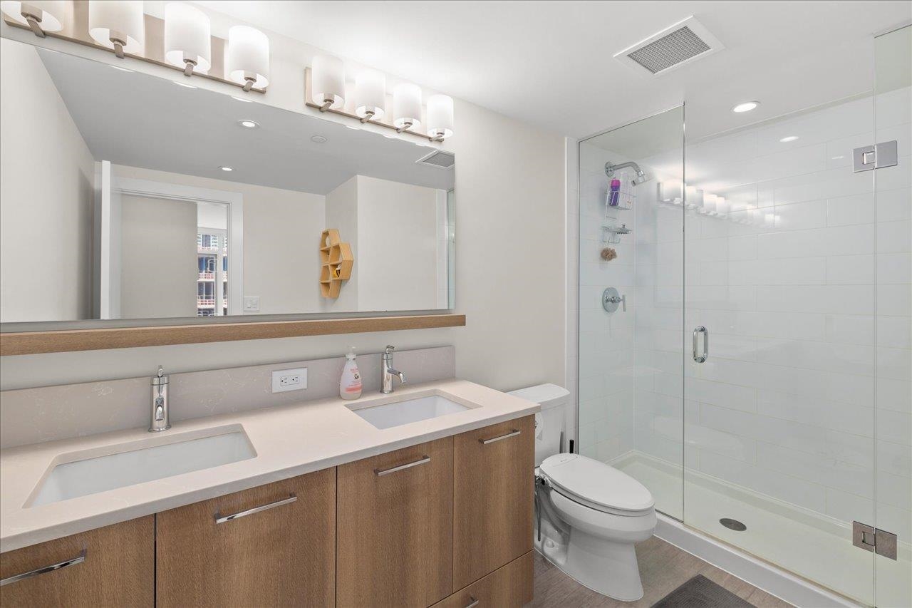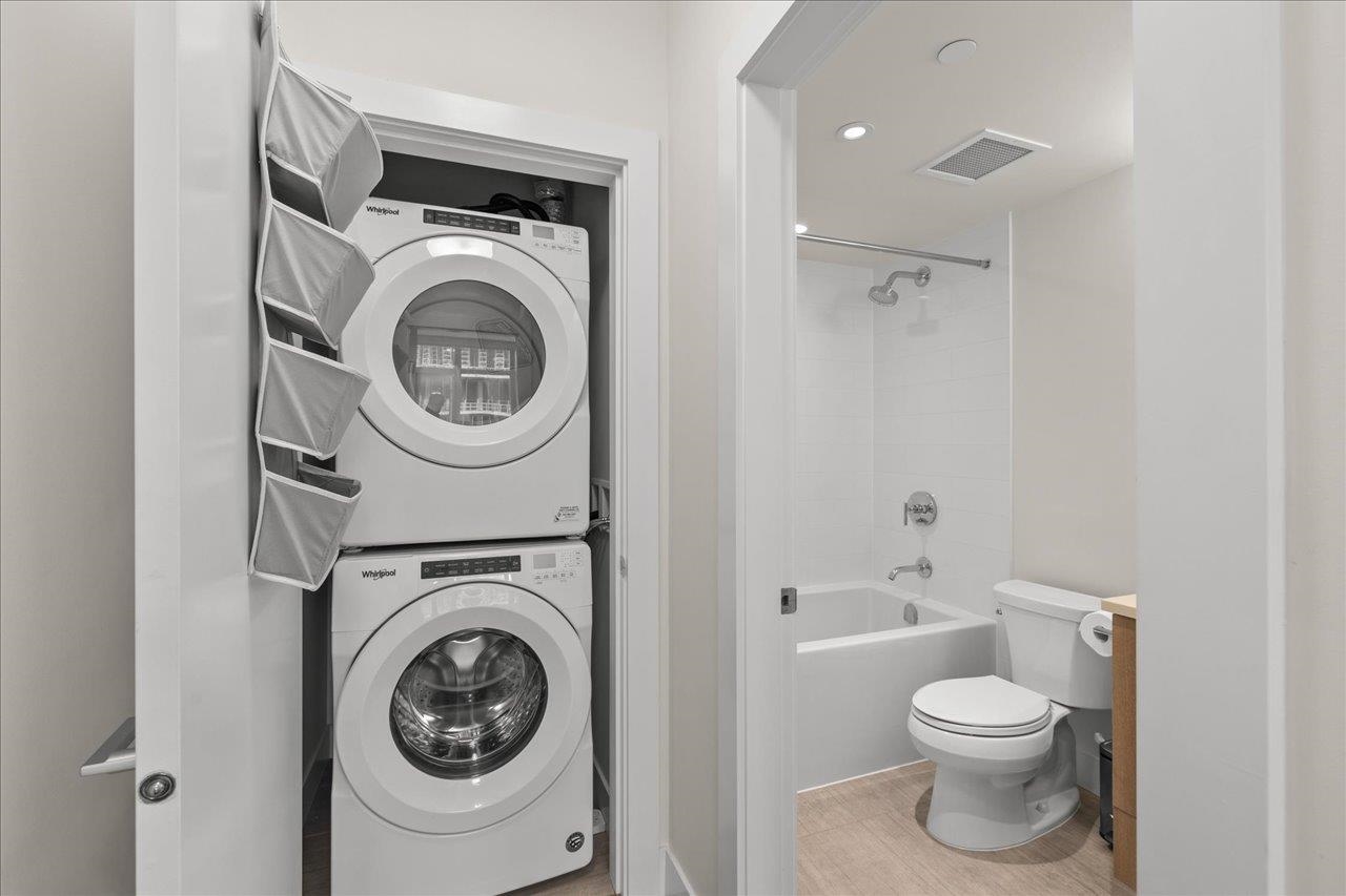 Immaculate 2 bed, 2 full bath ~950 sqft home at THE COLUMBIA—one of the best layouts in the Brewery District! Bright open plan w/ no wasted space & large windows for natural light. Modern kitchen w/ GAS range, S/S appliances, quartz counters & island bar. Defined dining & living areas lead to a quiet court-facing 112 sqft balcony—perfect for relaxing or entertaining. Spacious primary bdrm w/ walk-in closet & ensuite w/ dbl sinks + a good-sized 2nd bdrm ideal for guests, kids, or office. Quality 5 yr old bld...