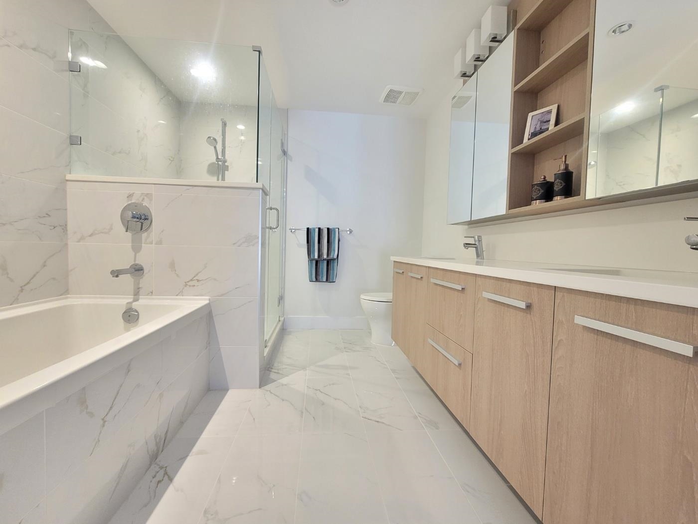 Discover refined living at “The Residences in Lynn Valley”by Bosa. This southwest-facing corner suite offers 2 bedrooms, 2 bathrooms, and a den across more than 1,100 sq ft of thoughtfully crafted space. Main balcony offers unobstructed southern view. Three private balconies provide peaceful views of the landscaped courtyard. This home features geothermal heating and air conditioning, with floor-to-ceiling windows that invite abundant natural light. Enjoy an exceptional array of amenities, including a fully...