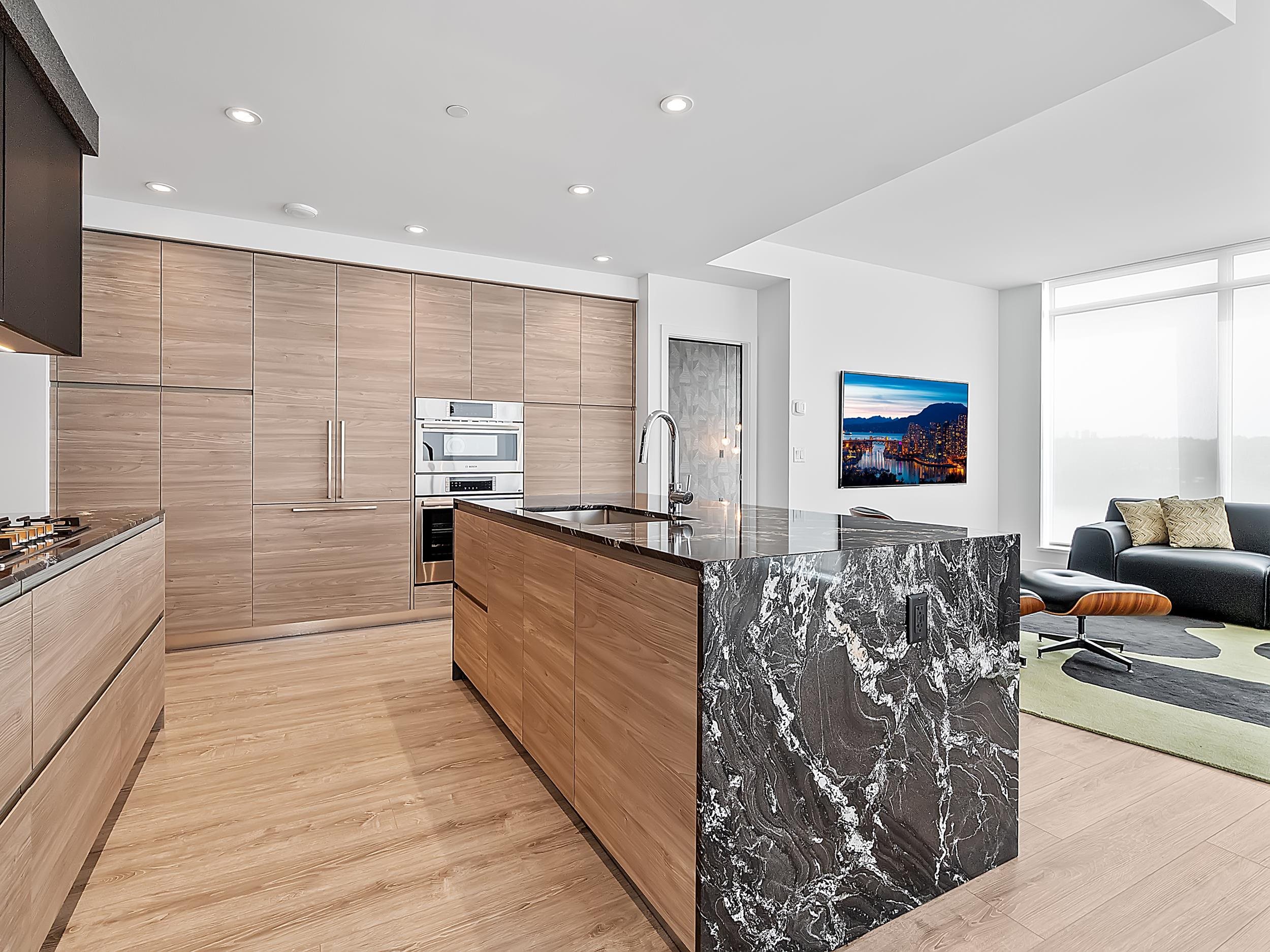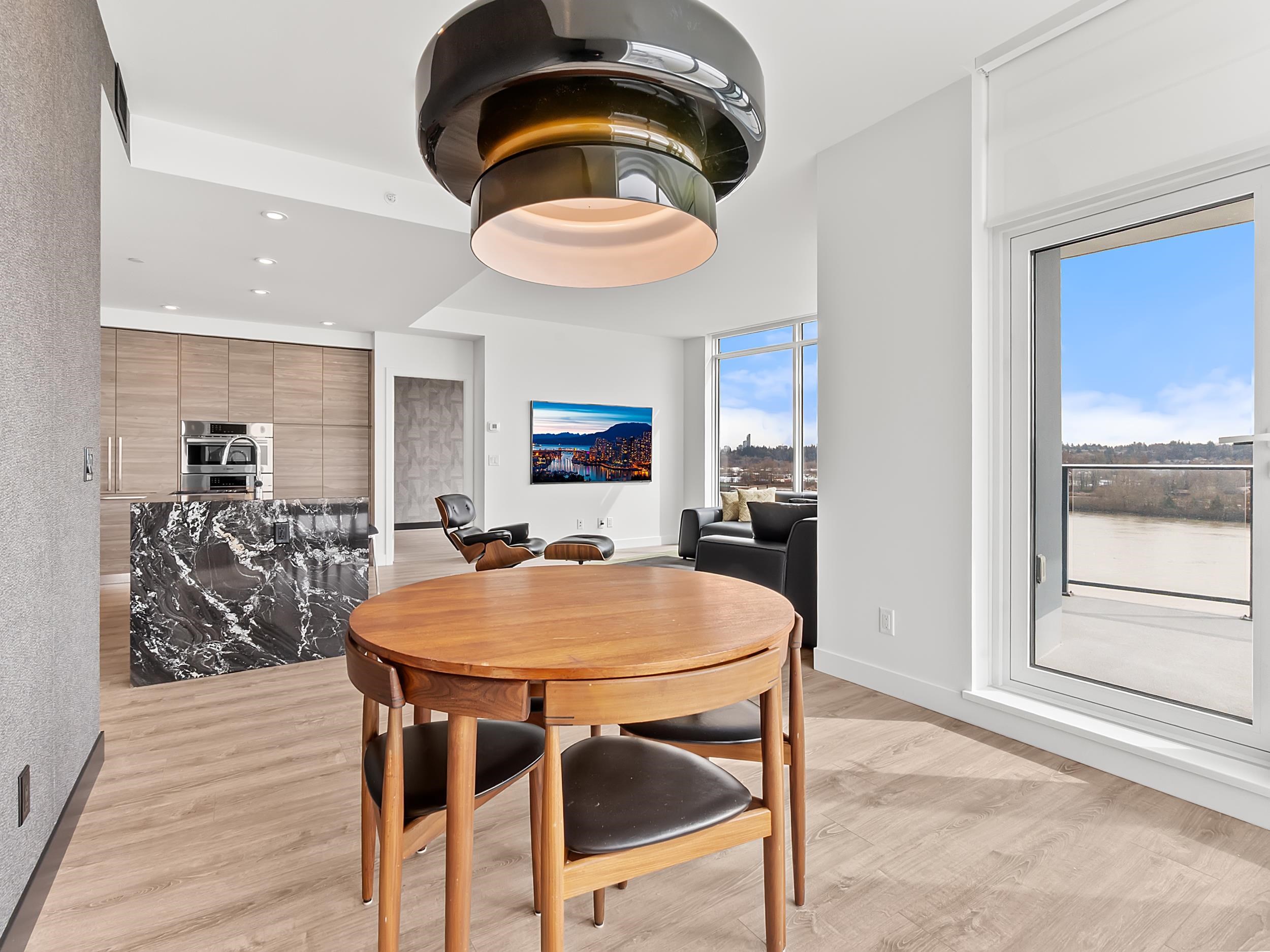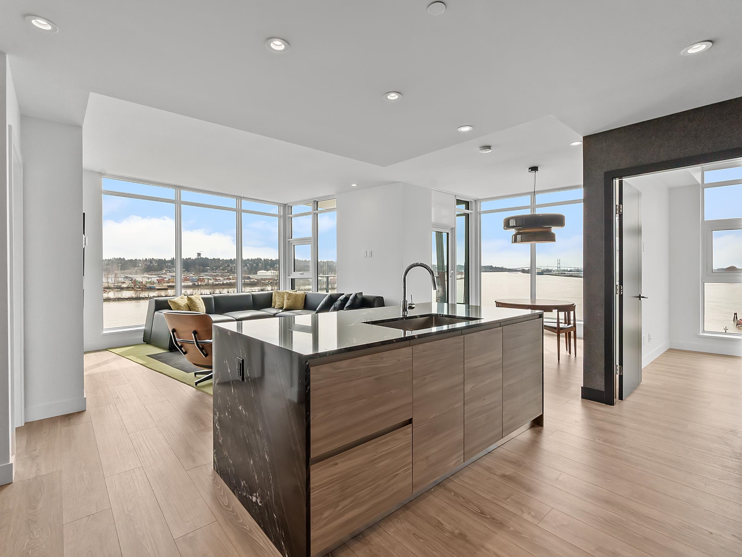 Welcome to Unit 608 at Pier West - an upgraded residence in New Westminster's premier riverfront community by Bosa. This thoughtfully enhanced 2 bed, 2 bath home features an open concept layout with floor to ceiling windows showcasing stunning Fraser River views and filling the space with natural light. The gourmet kitchen offers premium Bosch appliances, gas cooktop, solid slab countertops, waterfall island, and sleek integrated cabinetry. Designer upgrades and refined finishes elevate the home, blending s...