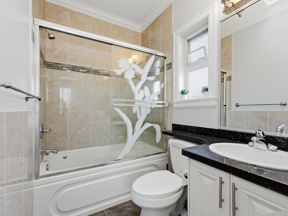 Beautiful South Slope 6 bedroom 4 bath family home with quality finishings. Breathtaking southern views of South Burnaby, Richmond and beyond. This home features concrete tile roof with 4 skylights, 9' ceilings on main, multiple sundecks & balconies, in-floor radiant heating, laminate floorings, gas F/P. Main floor kitchen has granite countertops & stainless steel appliances. Family room has direct access to the rear deck to enjoy the southern views. 3 spacious bedrooms up. Primary bedroom has walk in close...