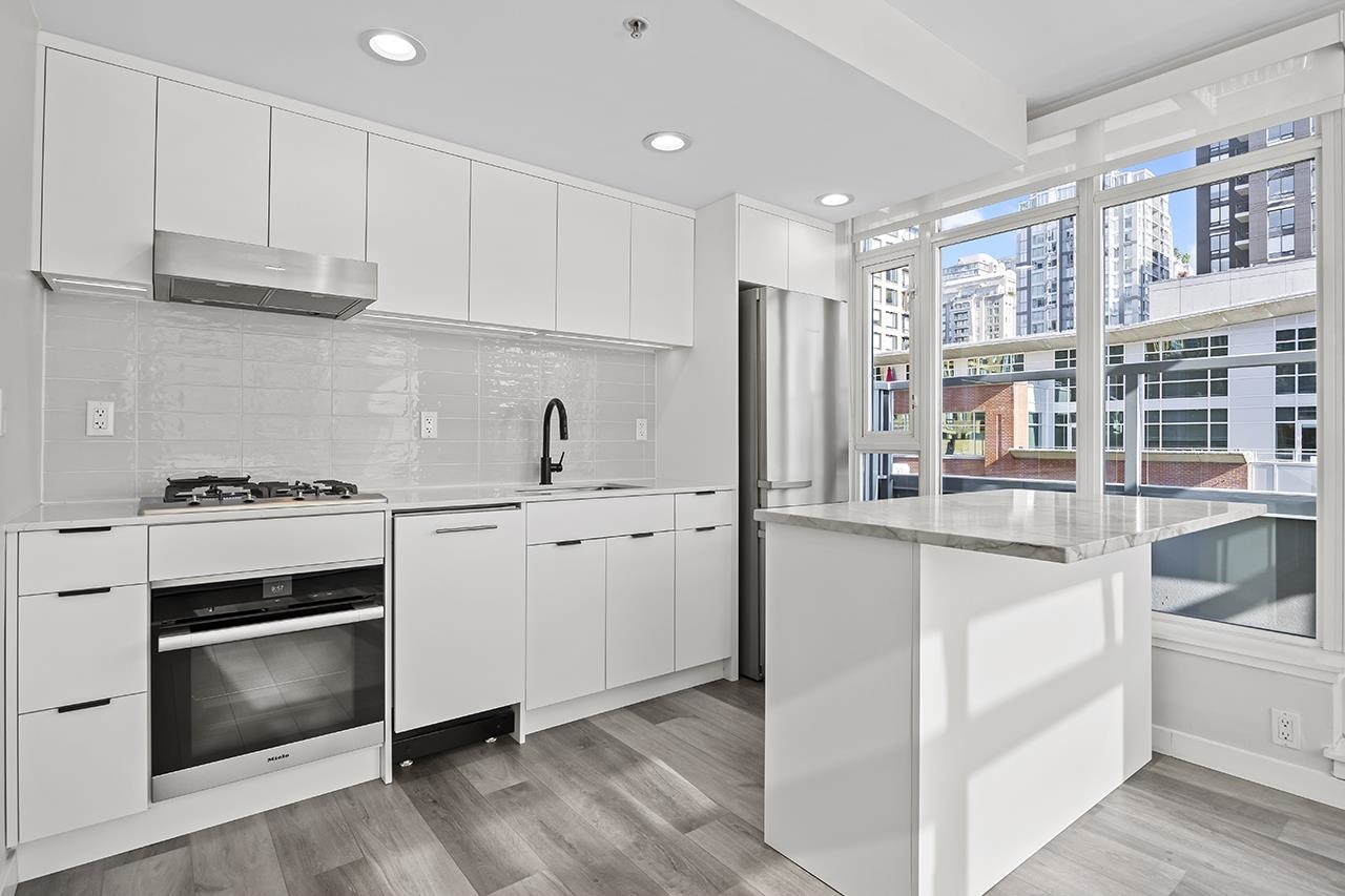 Welcome to H&H in the heart of Yaletown! This bright south-east facing corner 1-bedroom + den home features a wrap-around outdoor balcony with new flooring — the perfect spot to enjoy your morning coffee and take in downtown’s night light views. Inside, the home has been tastefully updated with Miele kitchen appliances, granite countertops, new flooring, fresh paint, an updated bathroom, built-in closets, new laundry, and blinds. A functional open layout with abundant natural light makes this turnkey home i...