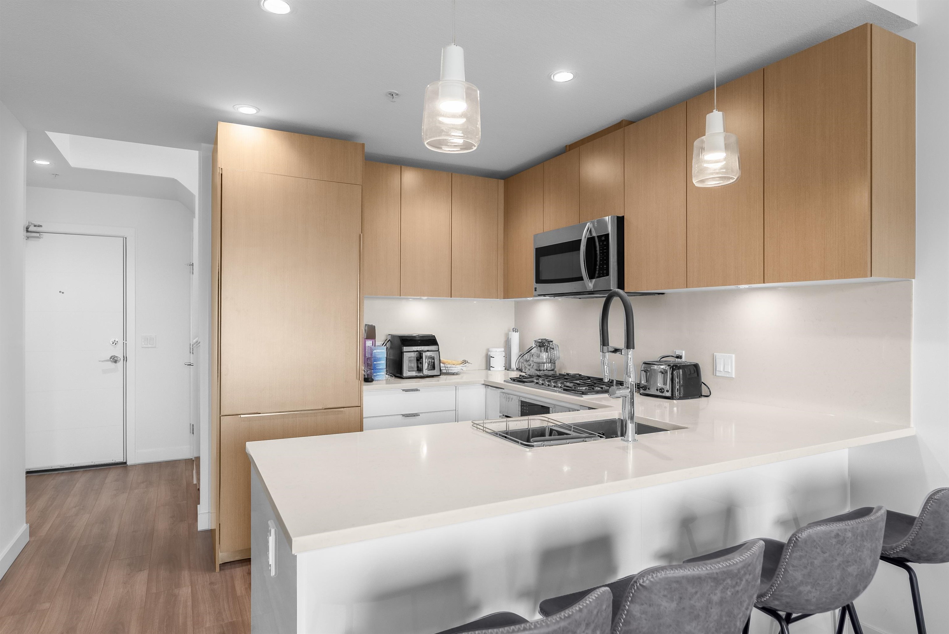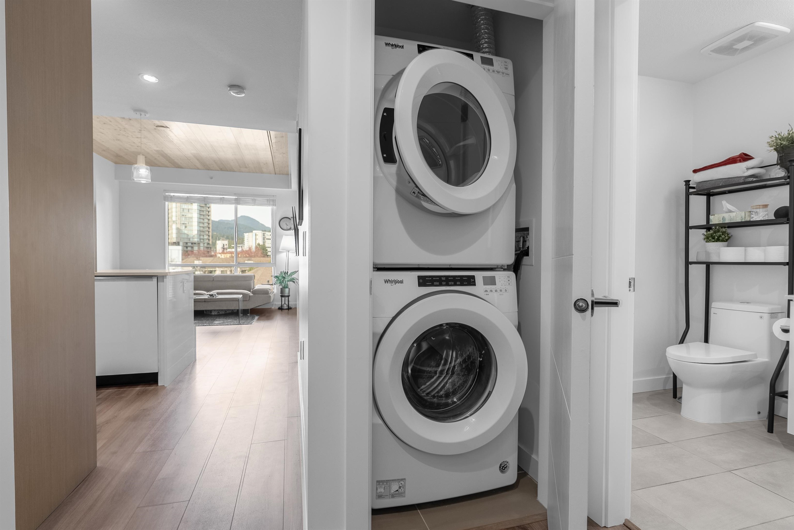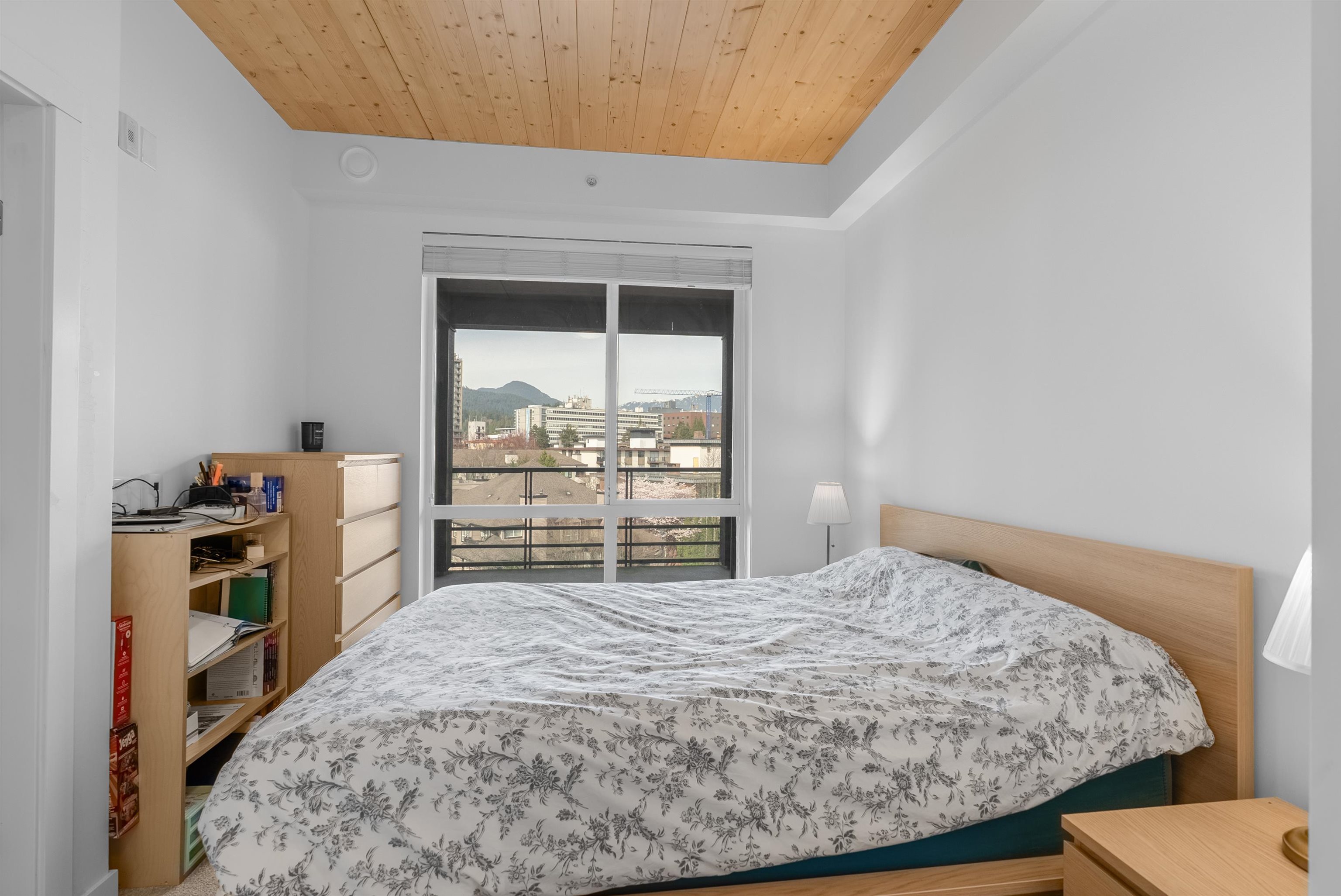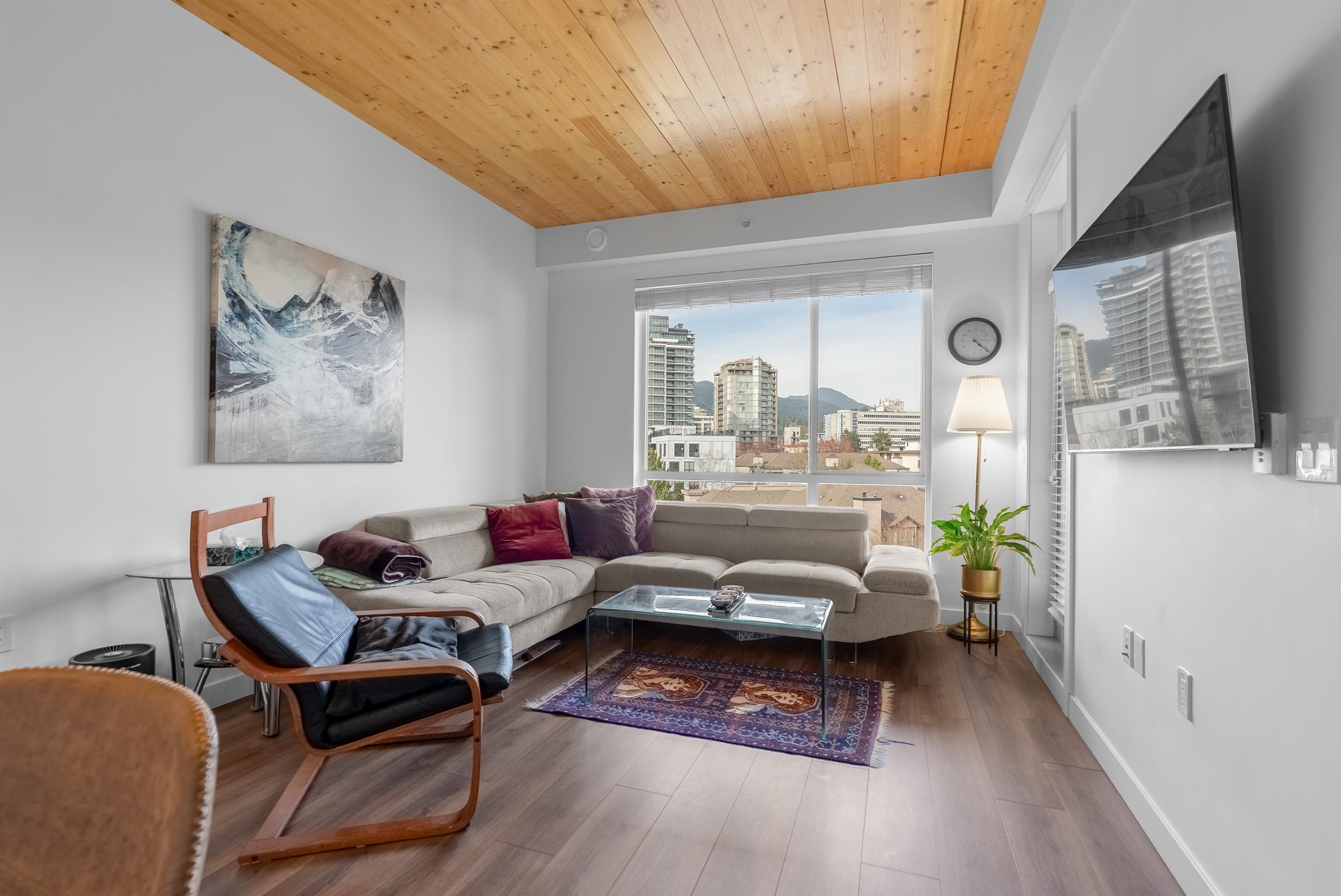Penthouse living with private roof top patio, stunning mountain views! Crest By Adera, located at the heart of the Central Lonsdale neighborhood. This super bright condo is close to all ameniti. This top-floor suite boasts exposed wood panelled ceilings, and a spacious kitchen complete with full-sized appliances, and ample storage. Enjoy indoor/outdoor living with a covered patio off the living room and a generously-sized bedroom. The building amenities include a dog wash station, bike room, gym, and party ...