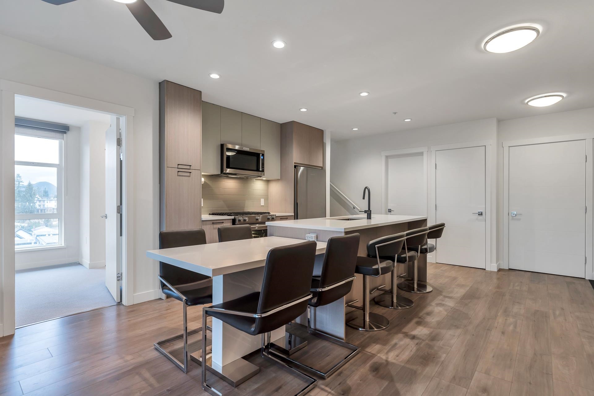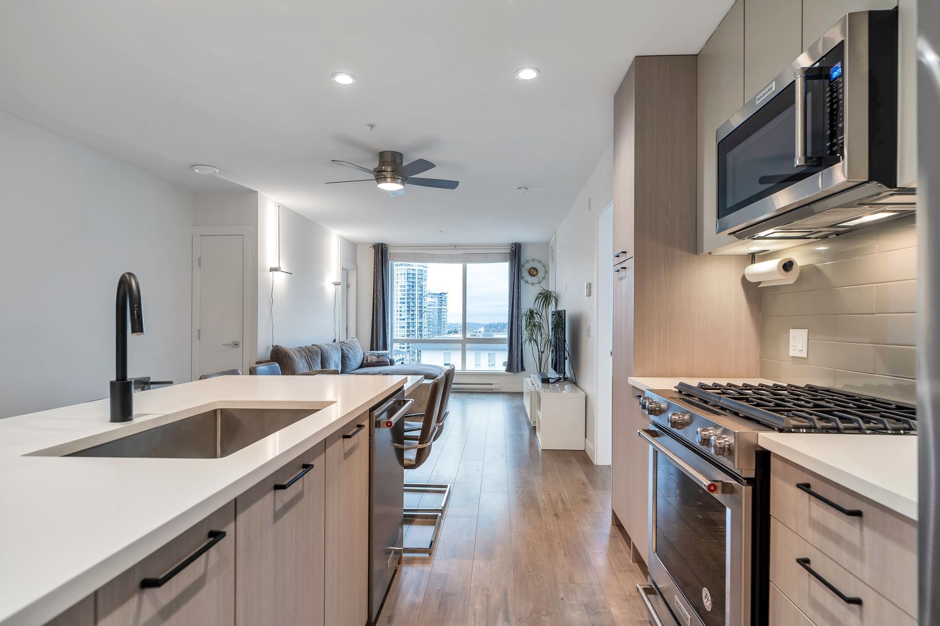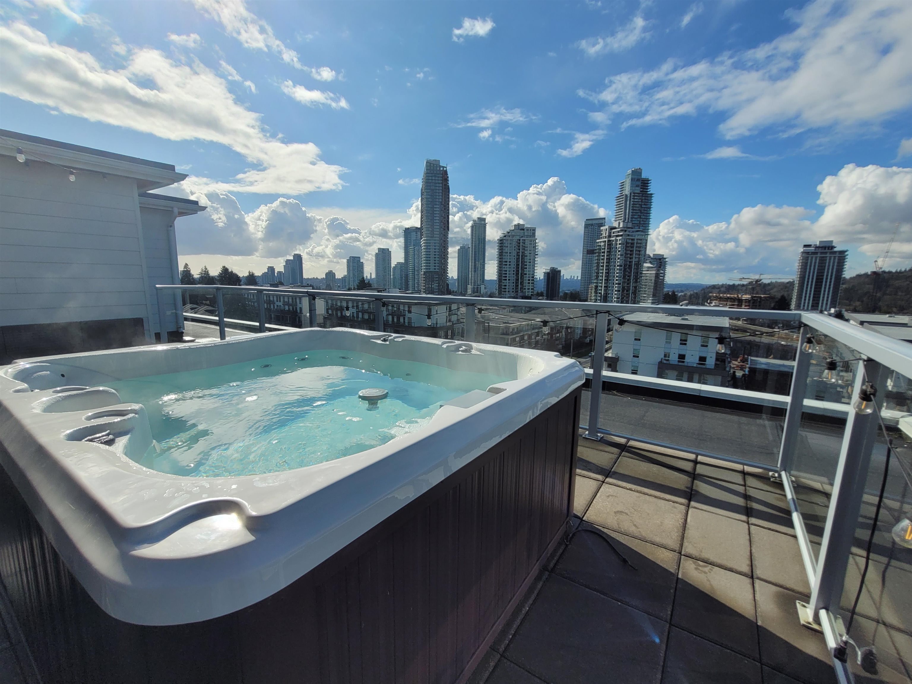 Welcome to YOUR NEW HOME located in the sought after Coquitlam West Neighborhood. The Duet is a 6-storey building developed by Adera in 2020. This spacious 2 bedroom + 1 den has two bathrooms and is located on the top floor which boasts a Private and Massive roof top patio with its own hot tub and spectacular views of the city and mountains! This home offers a modern layout with open concept living. Enjoy your interior space which features Premium stainless steel appliances, gas stove, garburator, and quart...