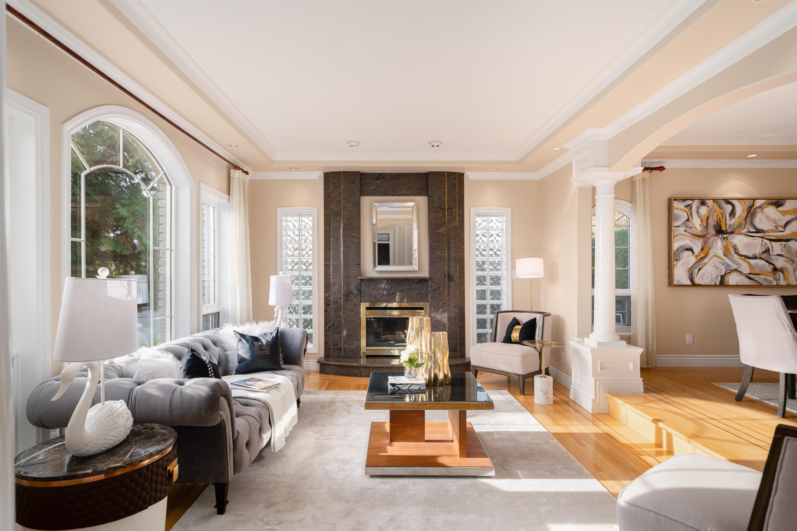 ONE OF THE BEST HOMES IN North BBY by experienced & reputable Italian builder. Finest craftsmanship. Huge 8385 sqft lot. South-facing w/gorgeous view. 18' high foyer with expensive tile floor & tasteful moulding work. Hardwood floor in the formal living, dining and family room. Curved stairway. 4 generous bedrooms upstairs, all with en-suites. Office on main floor. Gourmet kitchen with oversized island. Downstairs has one bedroom with an en-suite plus a large rec/theatre room, with a separate entrance. Trip...