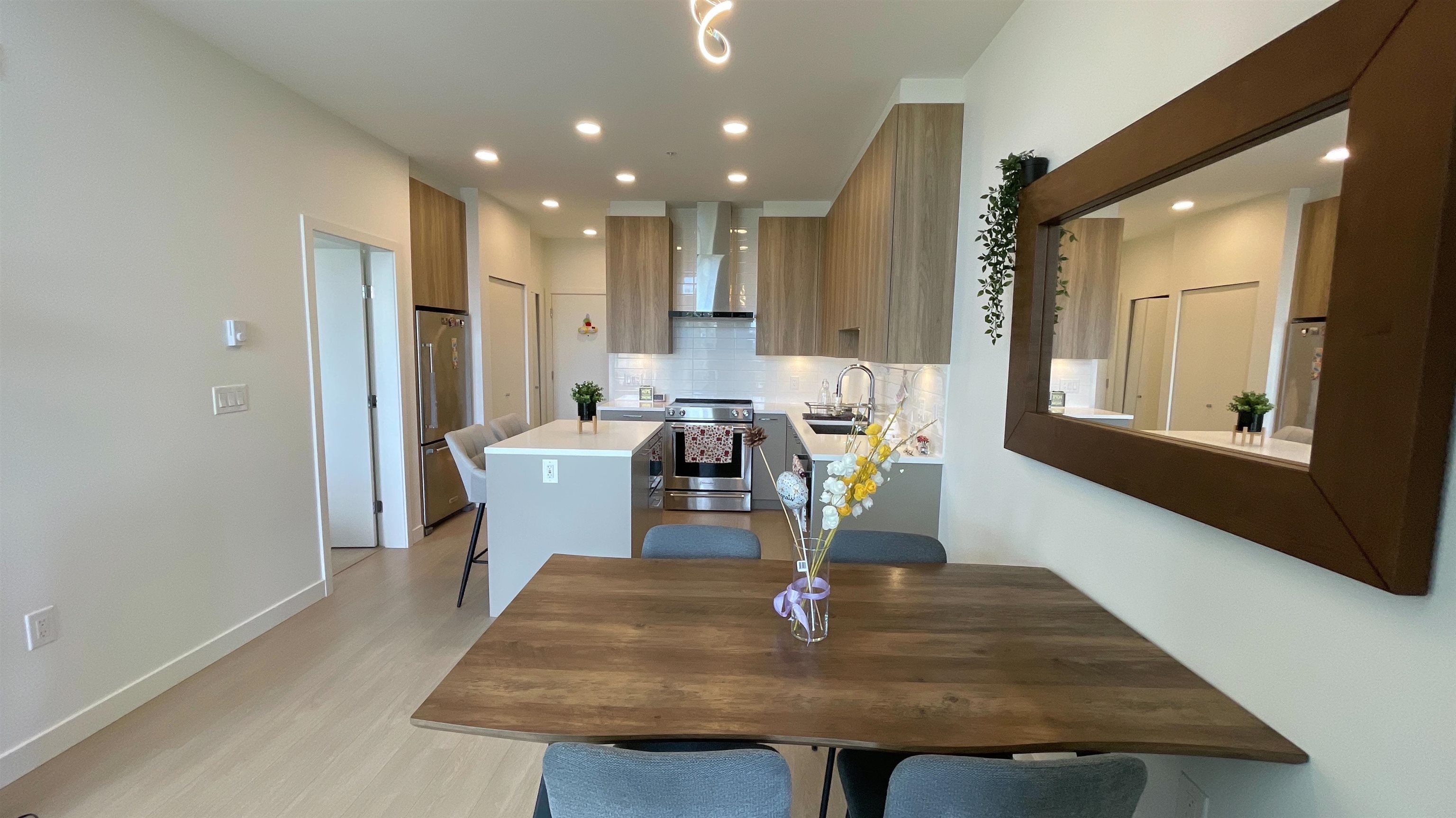 Penthouse living at Cedar Creek by Ledingham McAllister! Welcome to Unit 614—this top-floor 2 bedroom home features soaring ceilings which up to **15 feet** in the bedroom and living room, expansive windows, and an open layout that fills the space with natural light. Enjoy peace and quiet with, no one above you, a full-sized kitchen with quartz countertops and stainless steel appliances, and well-separated bedrooms for added privacy. Includes 1 parking + 1 locker. EV parking stall. Steps to SkyTrain, parks,...