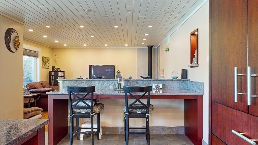 Gardener's dream! This property has year round veggie gardens supplying an array of fresh vegetables & fruit. This custom extensively renovated 3bd/2bath custom home in West Sechelt offers many opportunities for a homebased business or just family. Updates include gourmet kitchen w/commercial grade appliances, 8' center island w/built-in dining, n/gas stove, bamboo cabinetry w/pot drawers, 1 1/4" granite countertops. Bdrms have custom cabinetry along with the office & flex room. Pine ceilings with v...