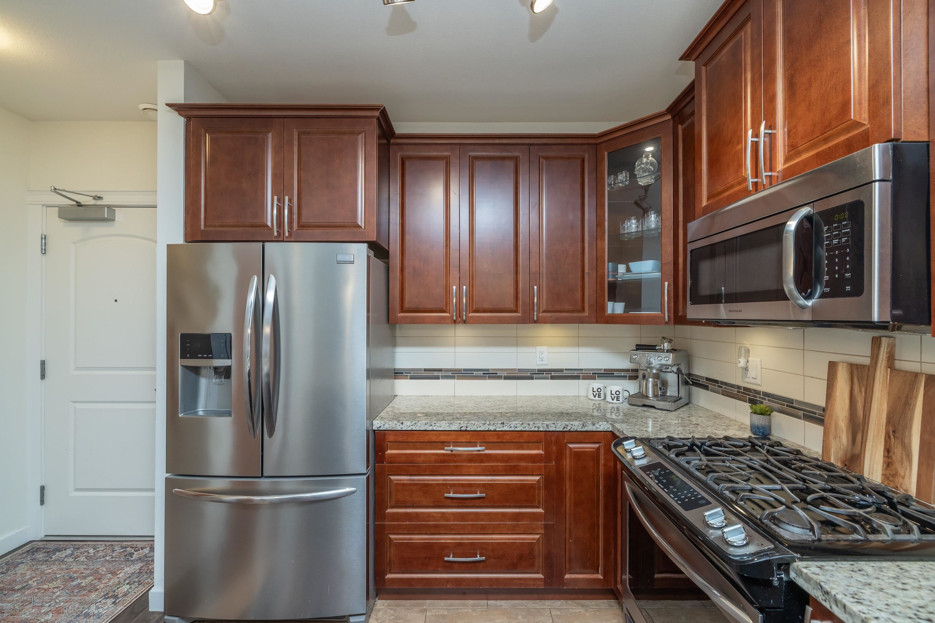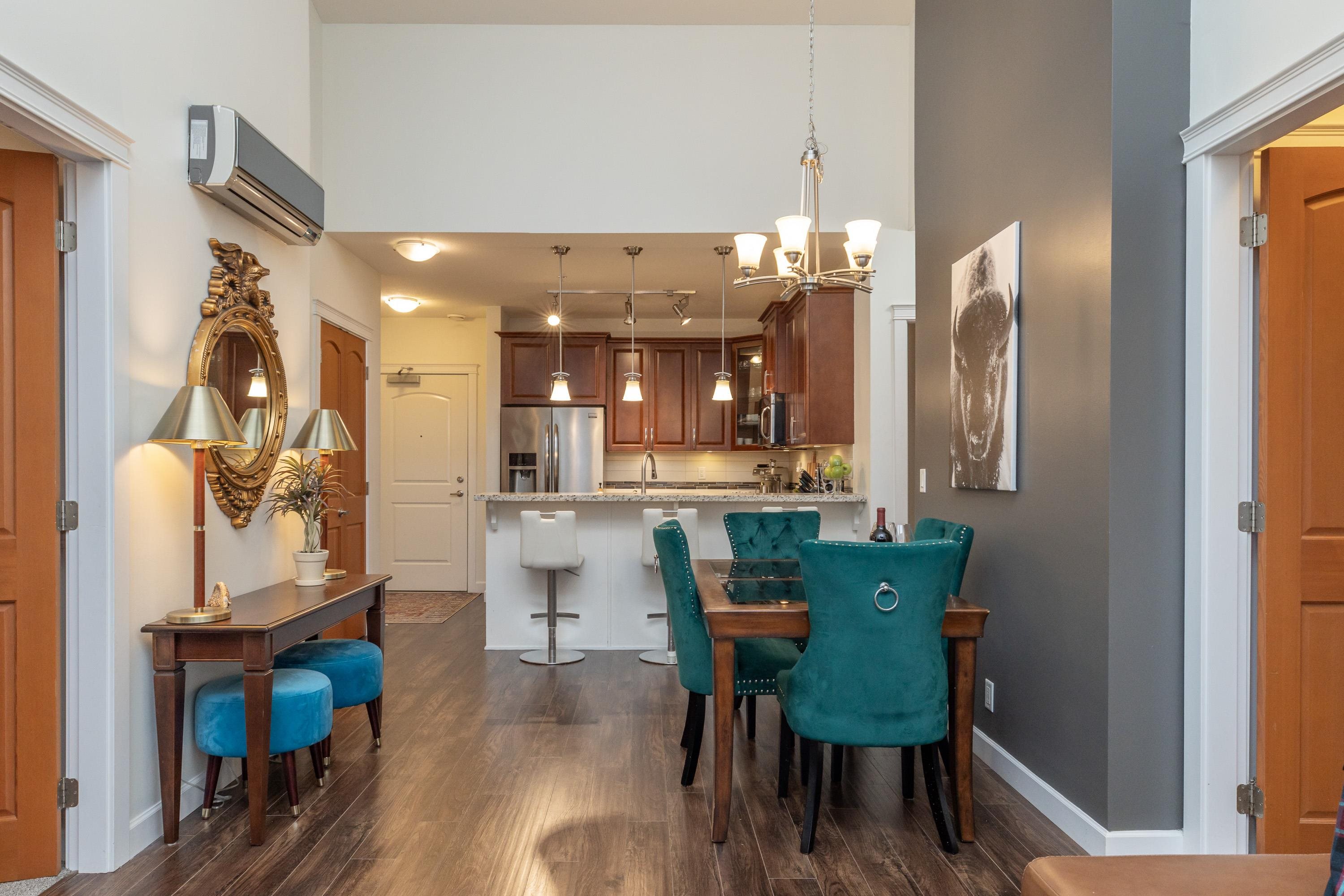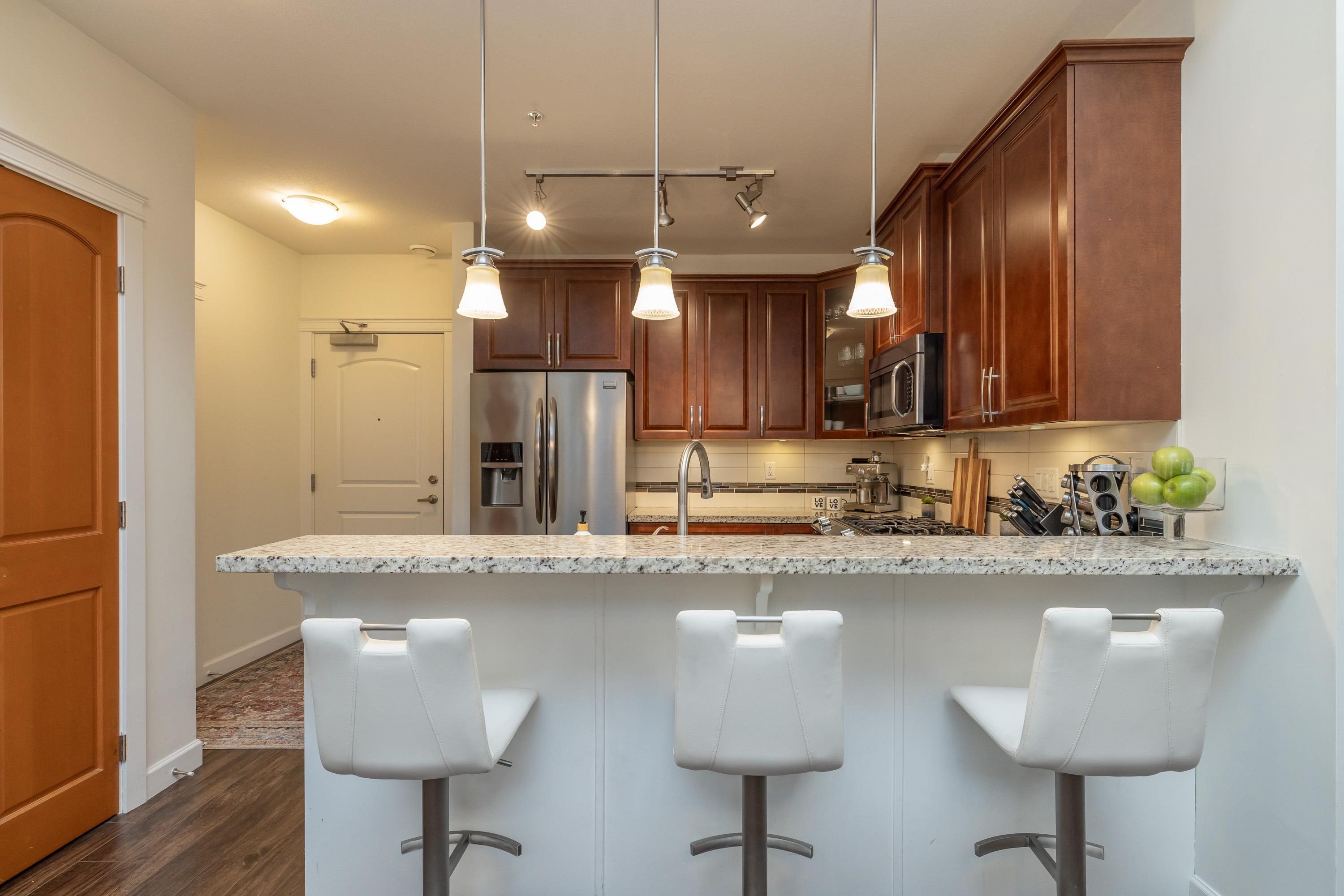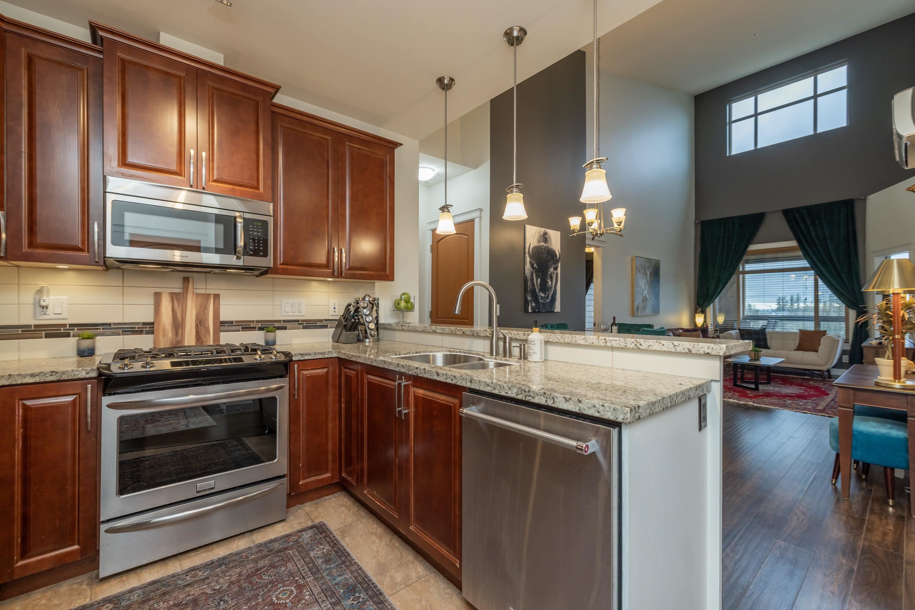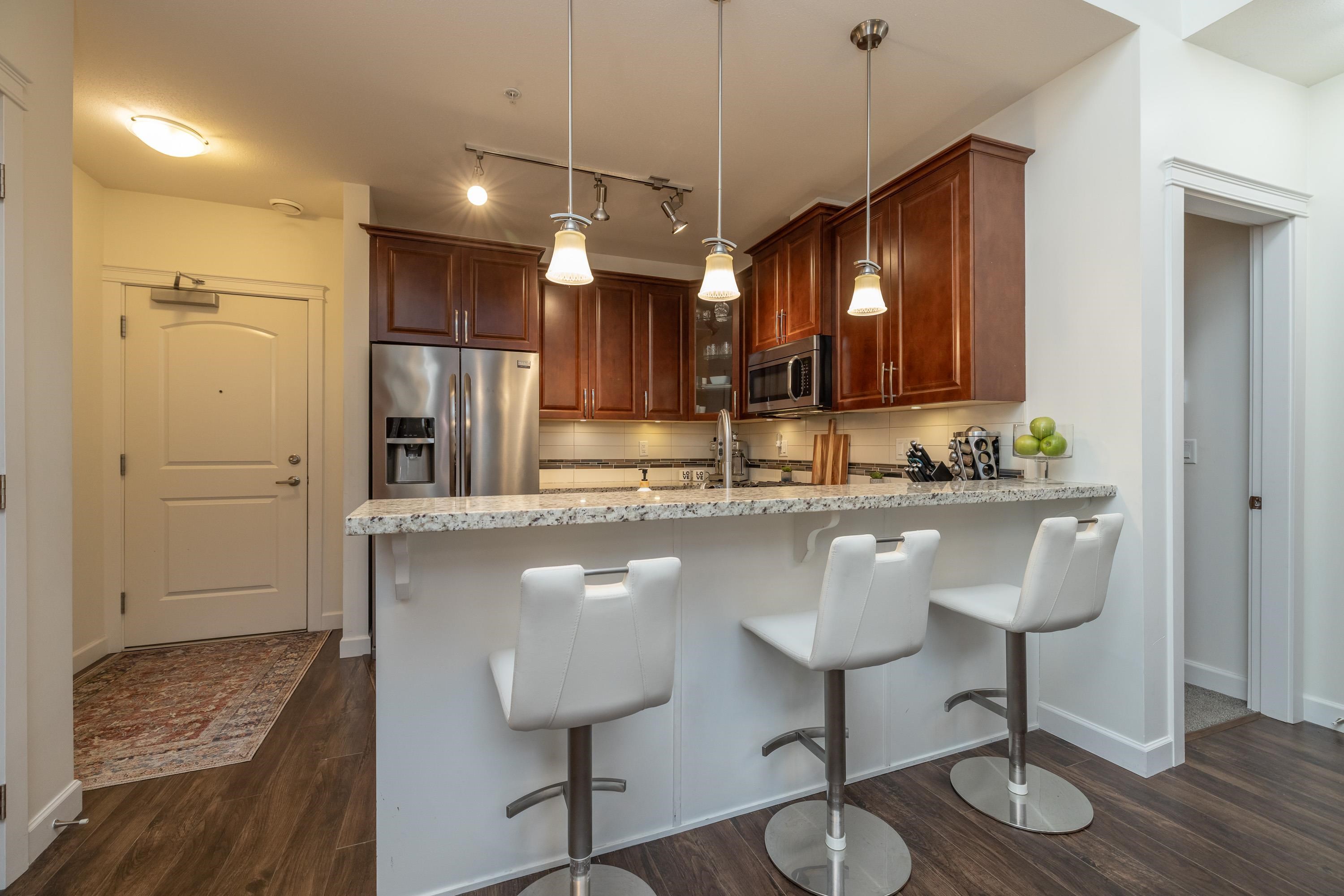 This gorgeous PENTHOUSE is a SHOW-STOPPER! Rare to market! Enjoy expansive views & privacy in this 3 bedroom, 2 bath home as it impresses with soaring 20' ceilings, abundant natural light & elevated finishes throughout. Kitchen features granite countertops, warm wood cabinetry, SS appliances, & gas stove. Warm your tootsies on heated bathroom floors. A/C provides year-round comfort from summer heat. Spacious primary bedroom easily accommodates a king bed plus furniture. Large enclosed solarium w/ retractabl...