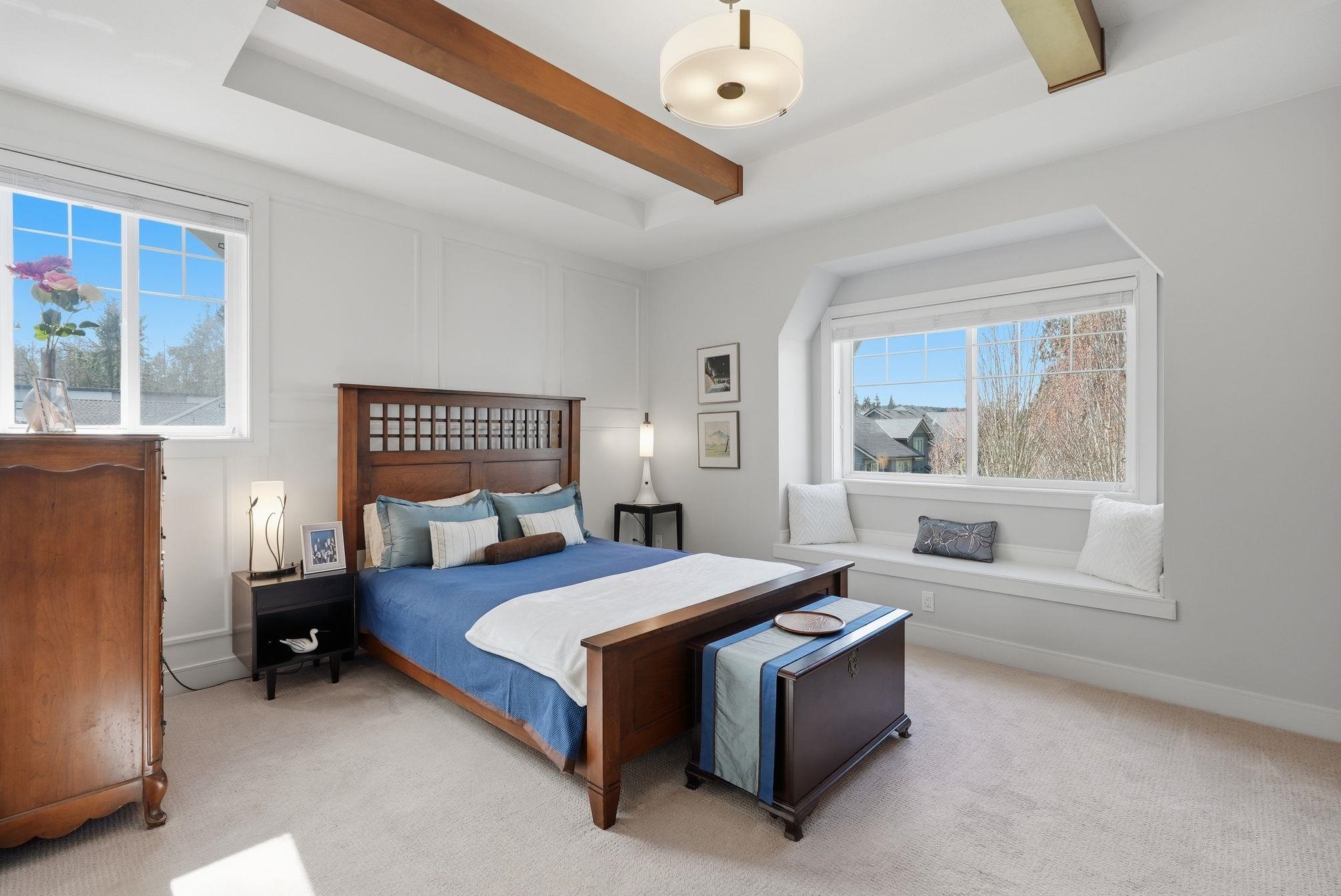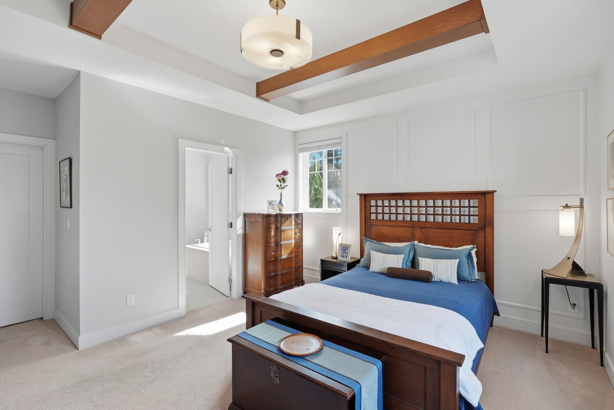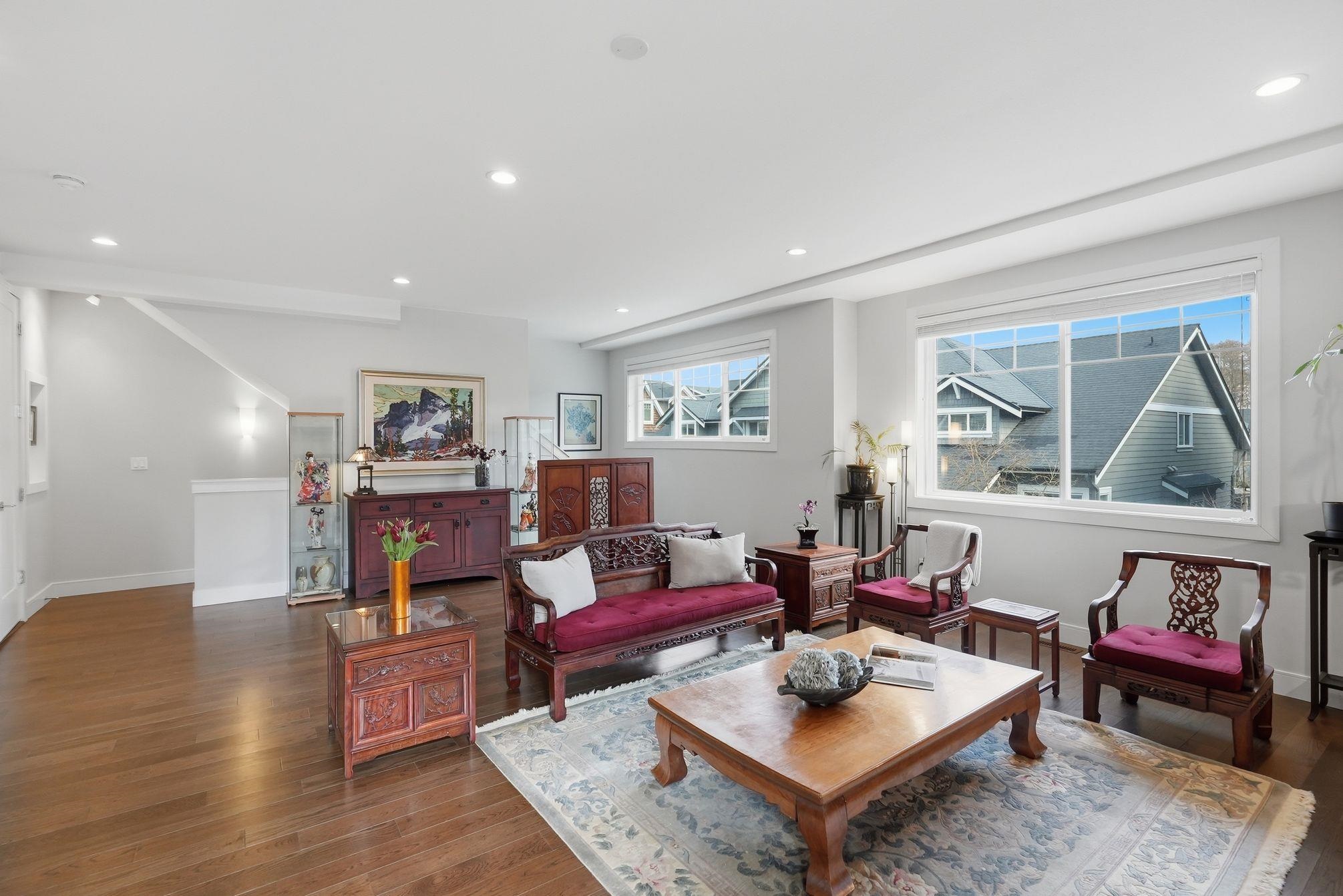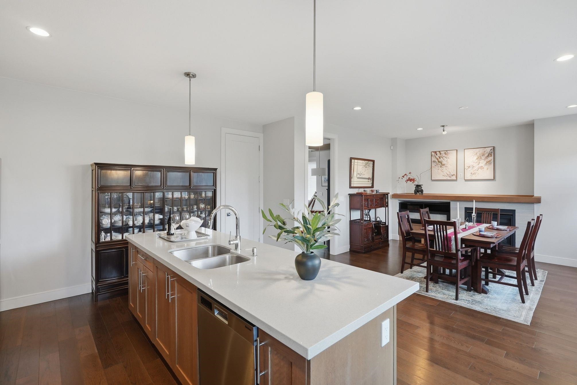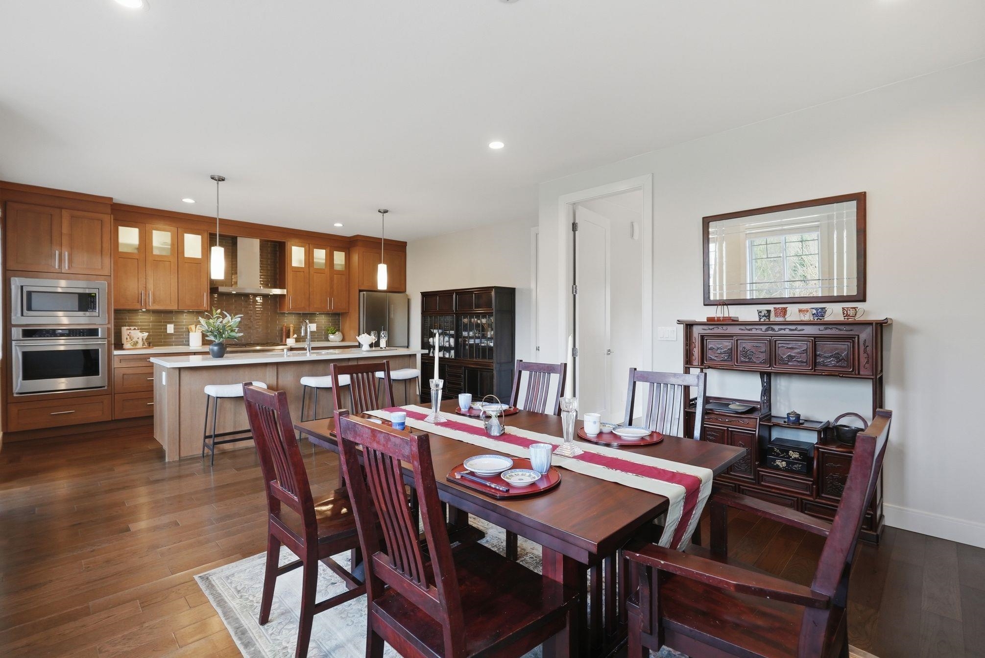 Luxurious 3,000 sq ft 5 bdrm, 3.5 bath corner townhome at Blu Living! Privately situated w/ fully fenced yard backing onto greenspace. Spacious 3-level layout w/ 9’ ceilings, wood plank flrs & quality finishings throughout. Gourmet kitchen feat S/S appls, commercial grade 6 burner gas cooktop, quartz counters, large island & walk-in pantry. Custom shelving, detailed moldings & upscale touches throughout. Upper level offers 4 generous bdrms incl primary retreat w/ relaxation-inspired ensuite & jetted soaker...