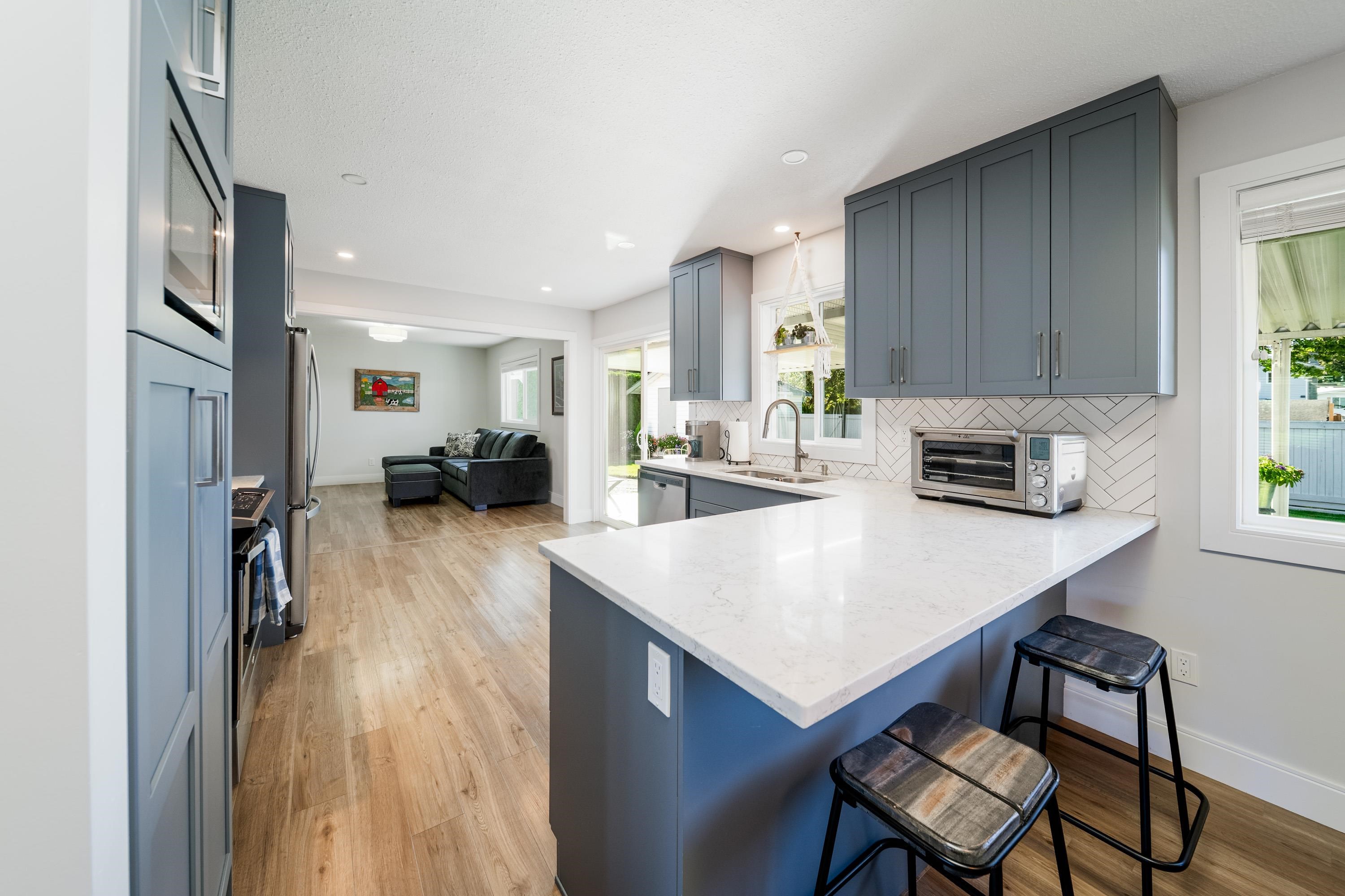 Beautifully kept & updated 4 bedroom home combines modern comfort w/timeless style, backing onto a lush park on an idyllic, quiet street. Step inside to a light-filled, open-concept main floor plan featuring a newer kitchen quartz countertops, s/s appliances, dining area, family room w/media centre, living room w/cozy fireplace & convenient bedroom + 3 pc bath. Upstairs: 3 spacious bedrooms, spa inspired main 4pc bath (access from Primary bed or hall) & storage areas. Upgrades: vinyl windows, newer roof, up...