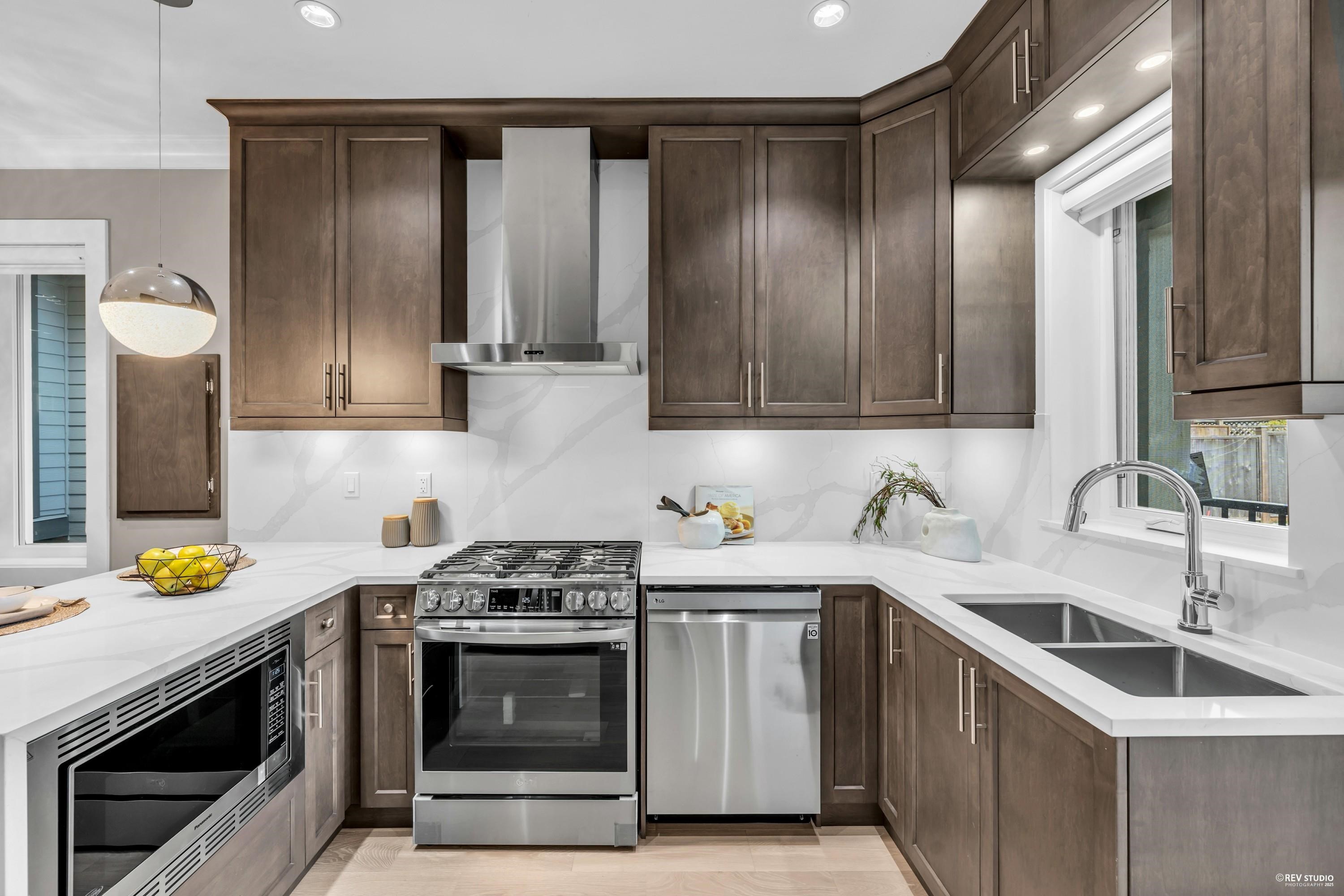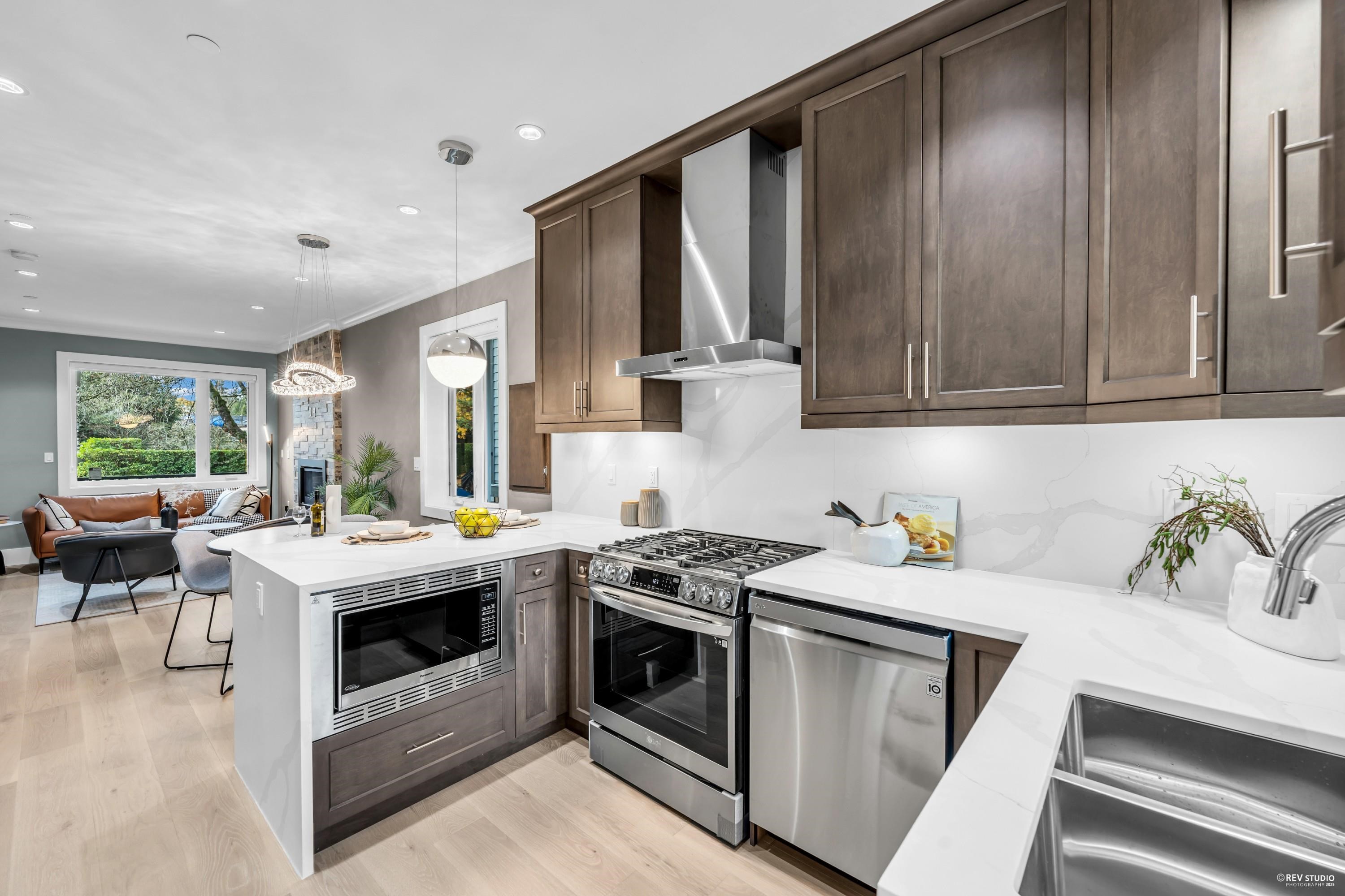 $371K BELOW BC ASSMT!! Stunning half side by side duplex, sitting in the Vancouver's prestigious S Granville neighbourhood. This 5 bed 5 bath modern home offers exceptional design and functionality, engineered hardwood floors, gas-fired radiant in-floor heating. Open-concept kitchen is equipped with S/S appliances, a gas stovetop, and quartz countertops, perfect for both everyday living and entertaining. Craftsmanship residence features HRV, security cameras & built in vacuum. Covered BBQ porch, stone exter...