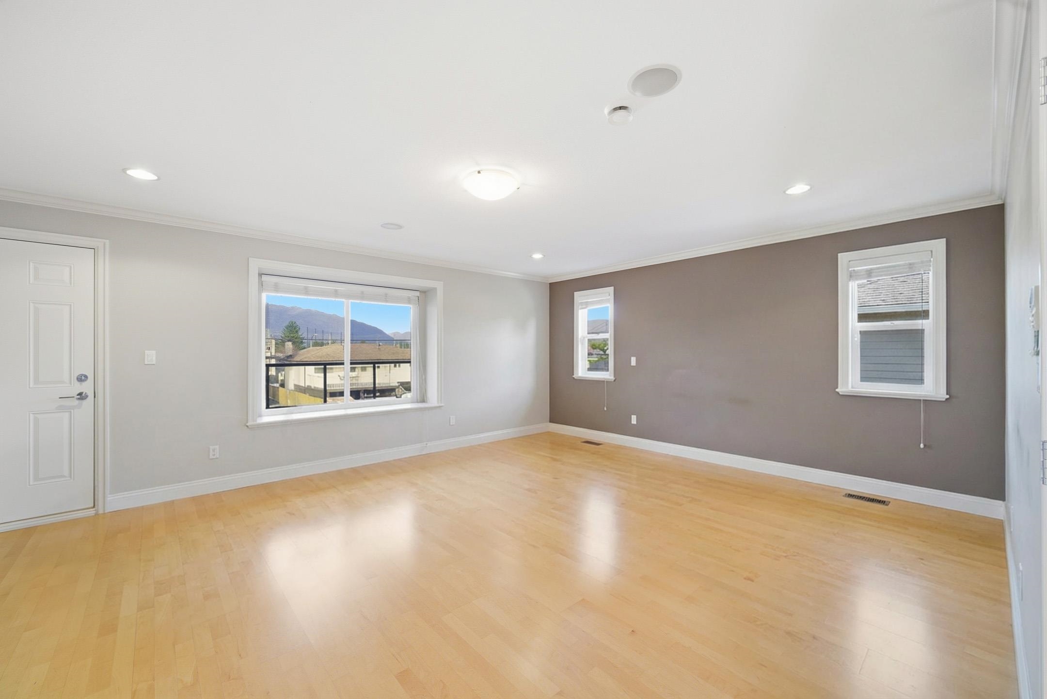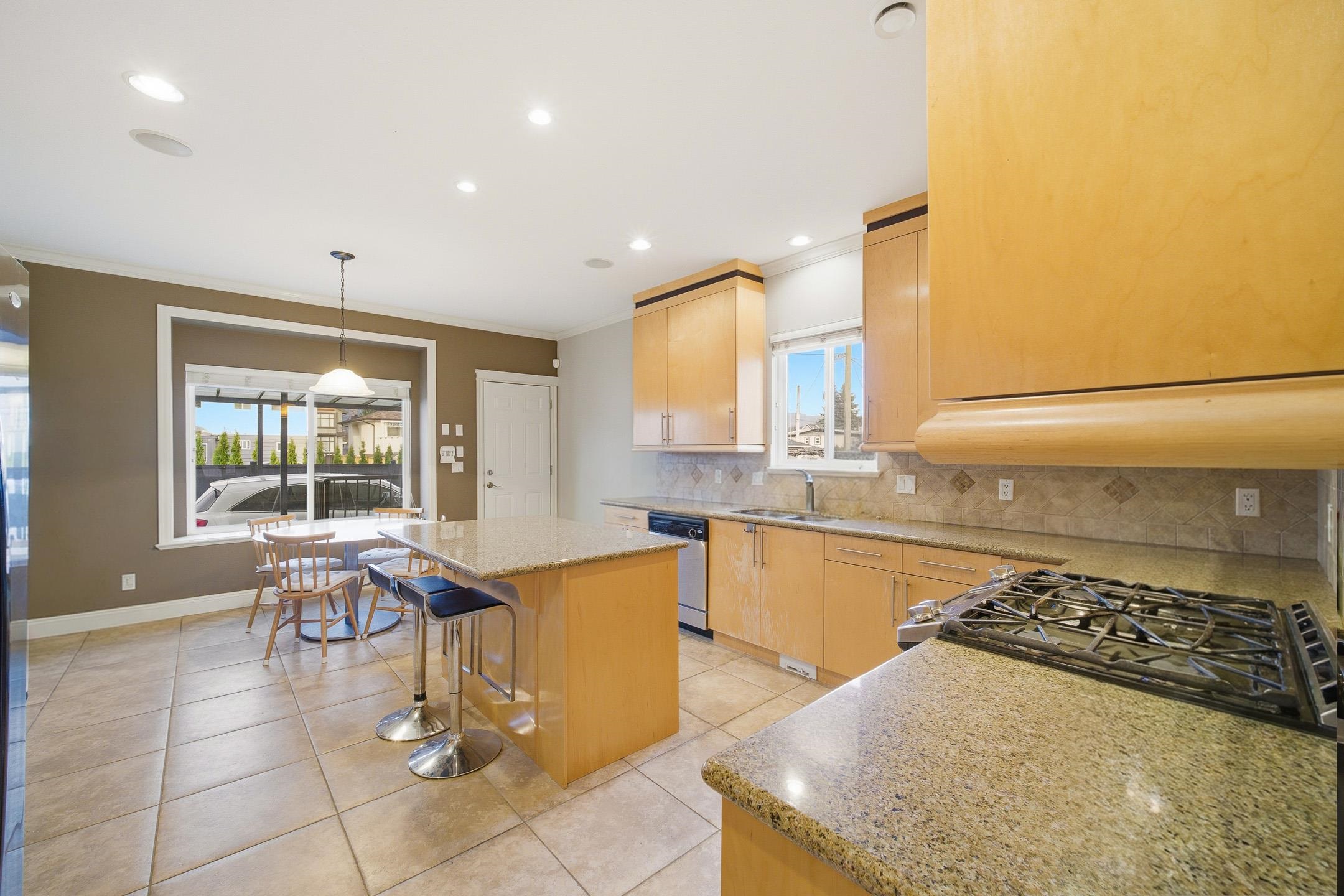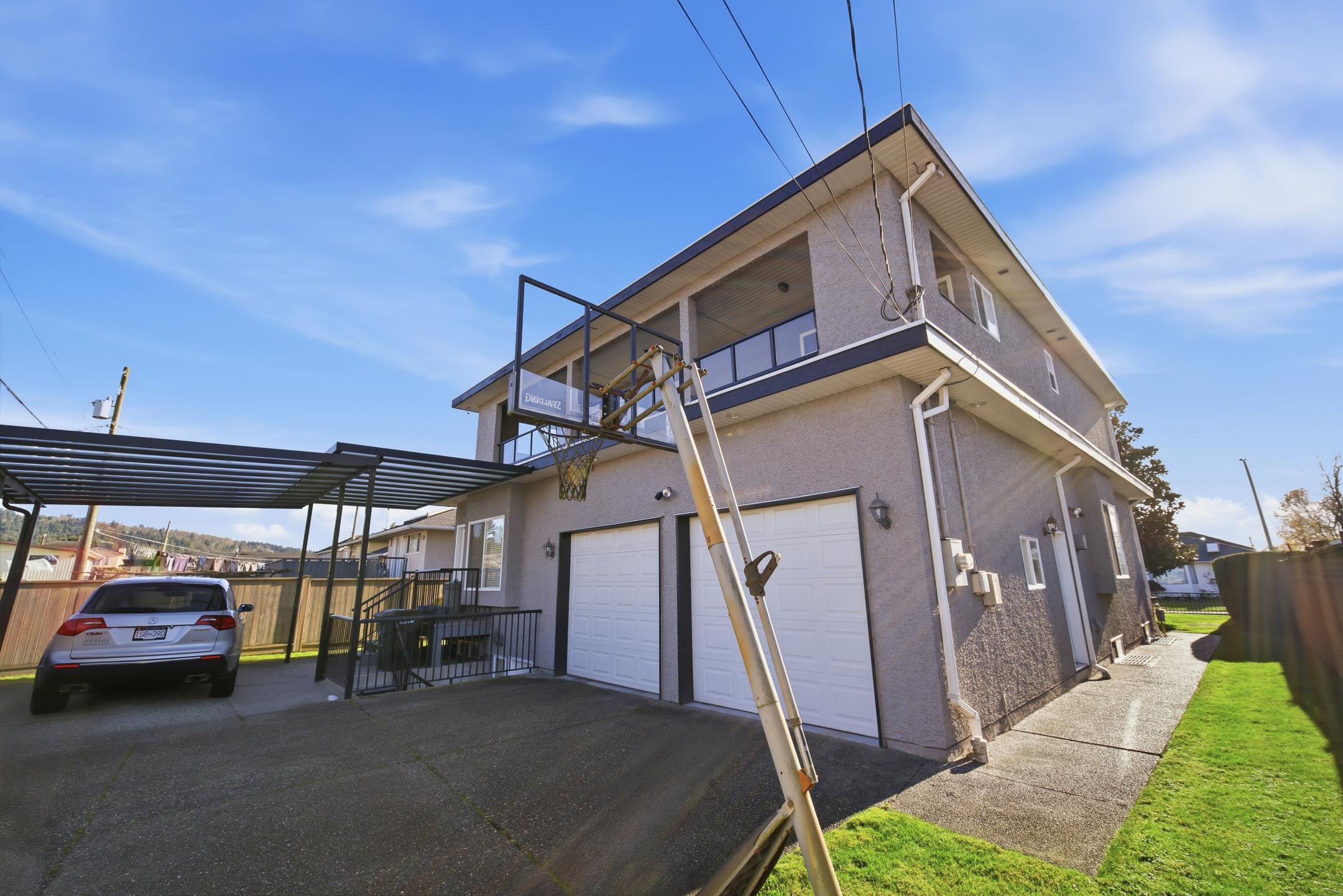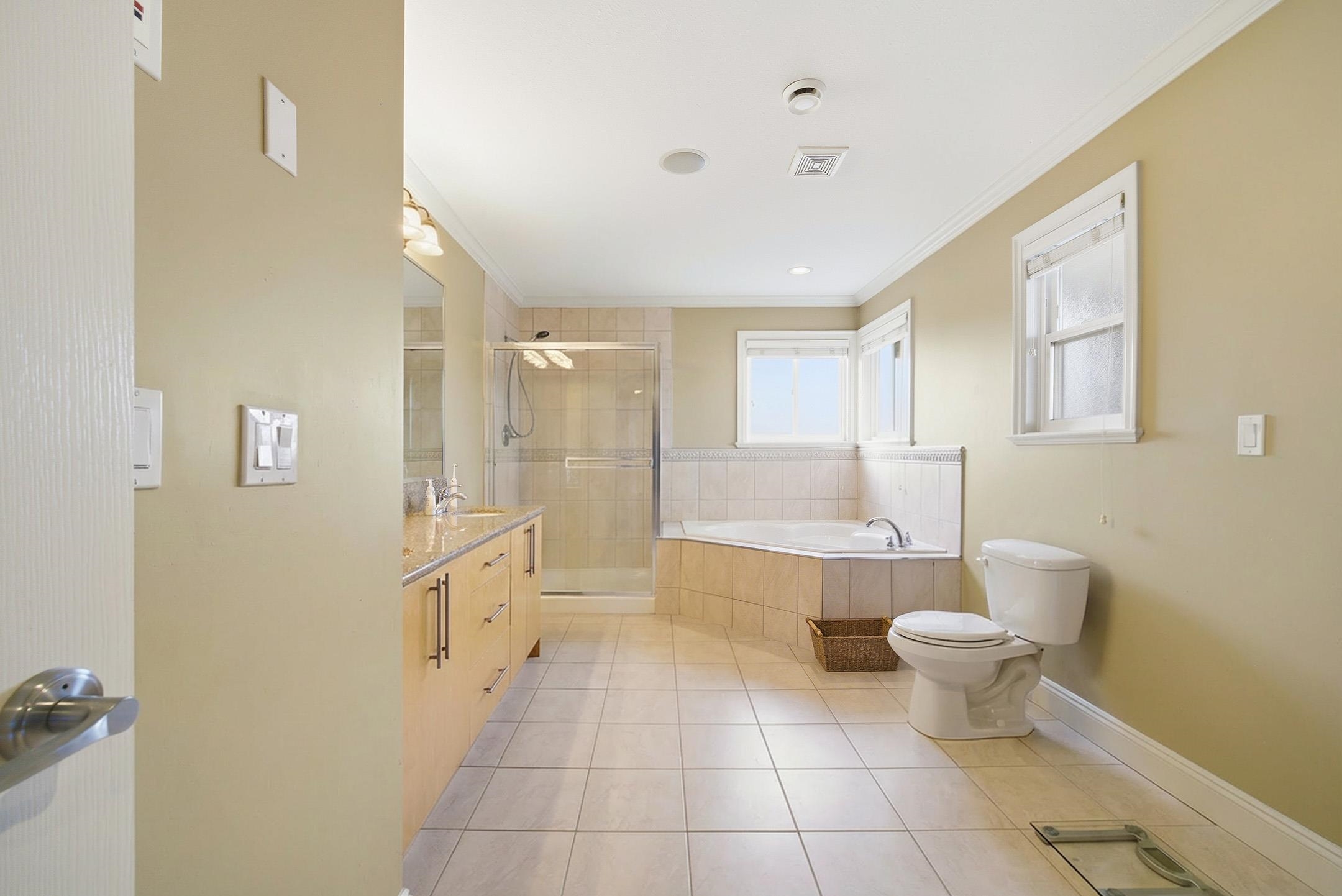 This gorgeous North Burnaby custom-built home is absolutely spectacular with outstanding workmanship. Situated on a 56.43'x111.36', 6285 sf. flat lot with 6 beds & 3 1/2 baths. Features include 3901 sf. w/a 20 ft high entrance, granite and stainless appliances in the kitchen w/two gas F/Ps in living & dining rooms. It has a huge master bedroom w/double sided gas F/P, jacuzzi tub & a 30 ft long deck with breathtaking mountain views. Below is a fully wired media room & a two bedroom m/help. down w/8.5 ft ceil...