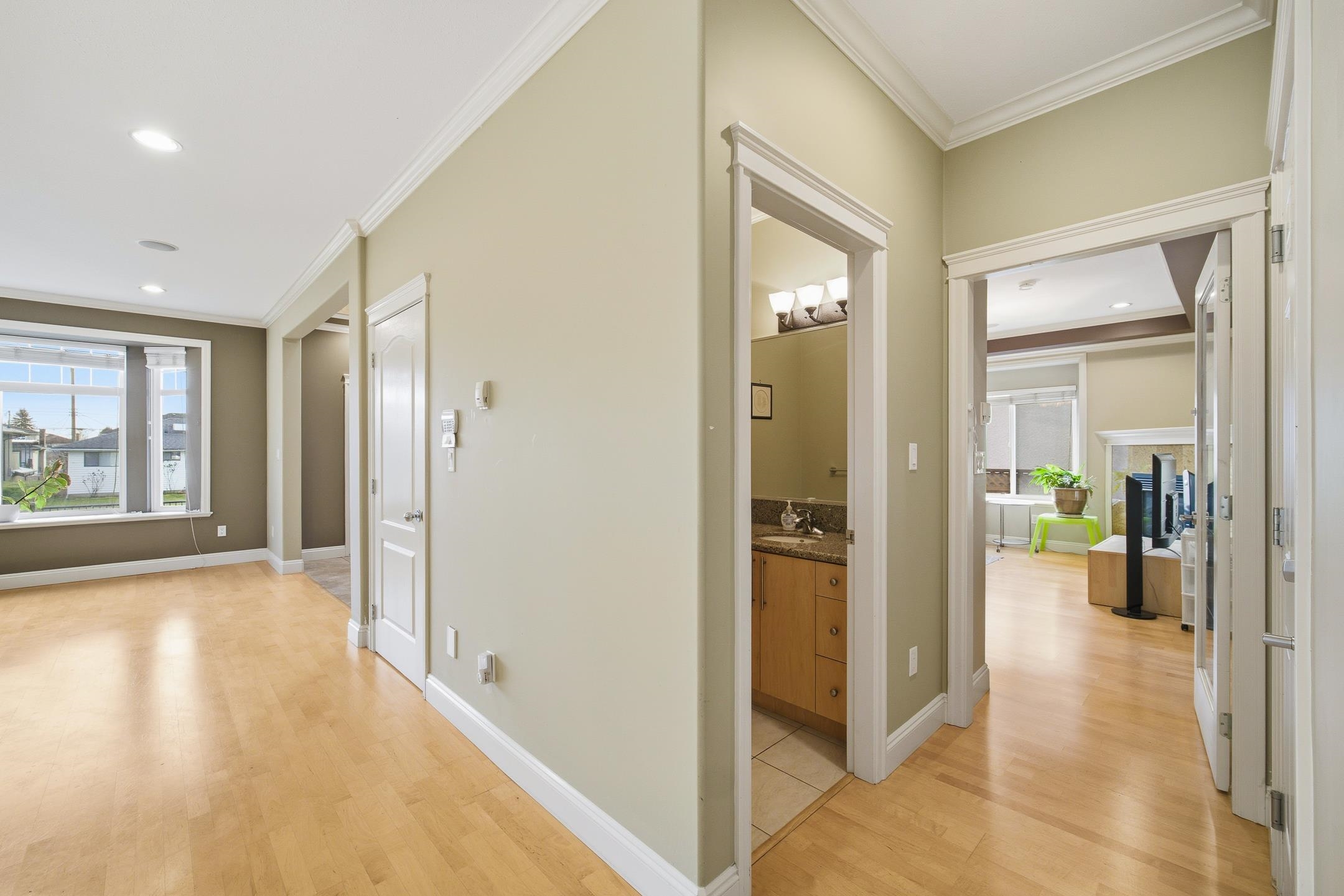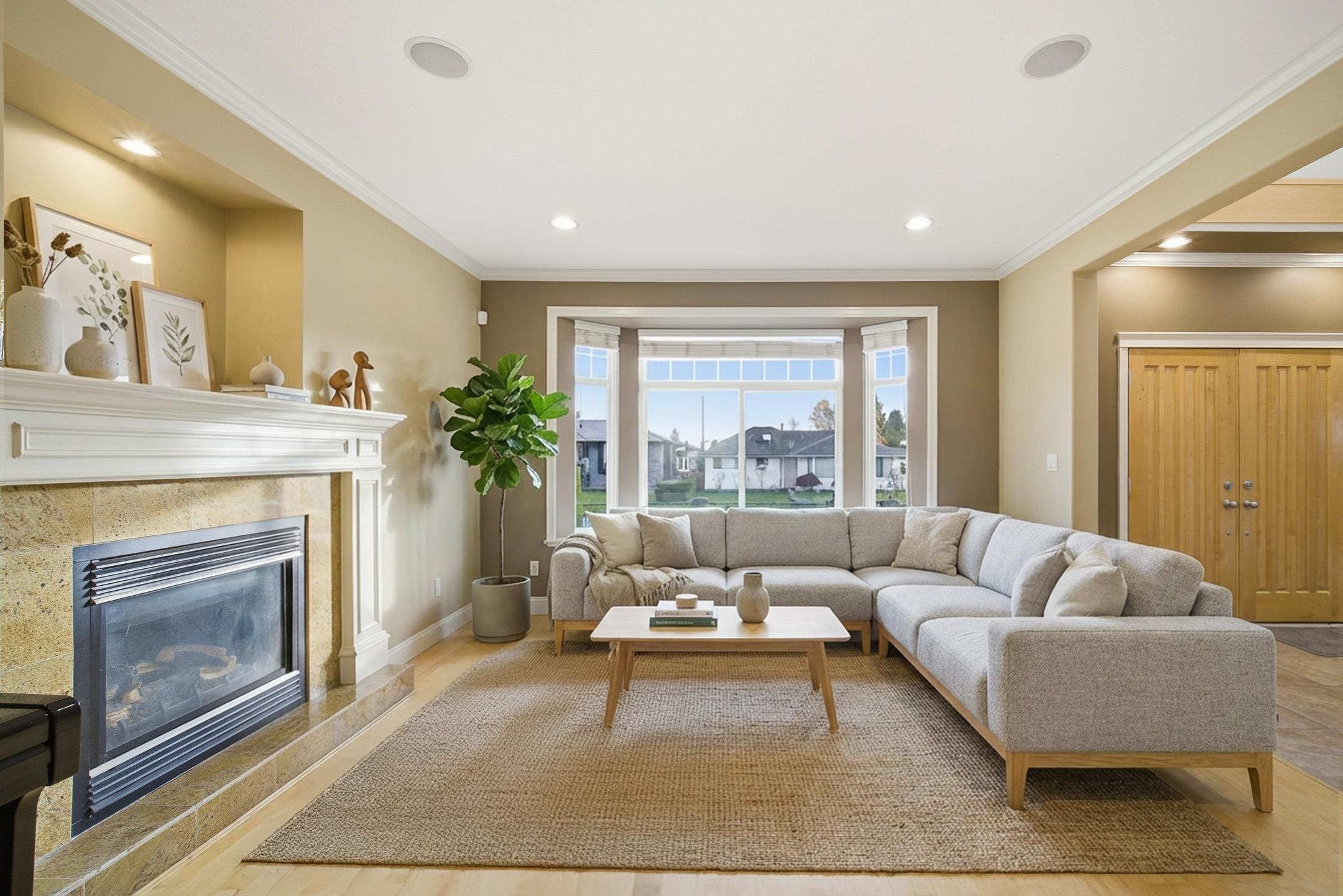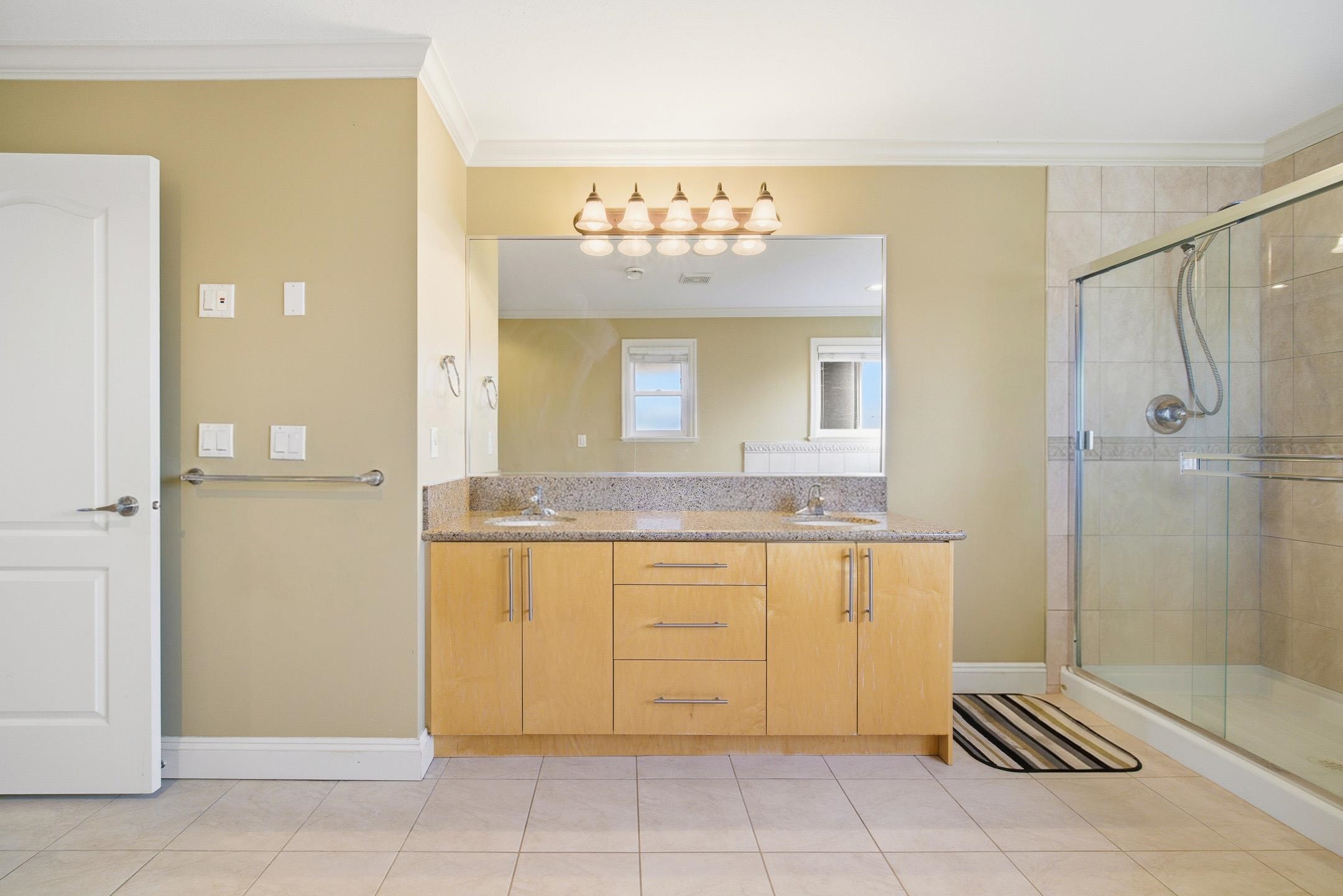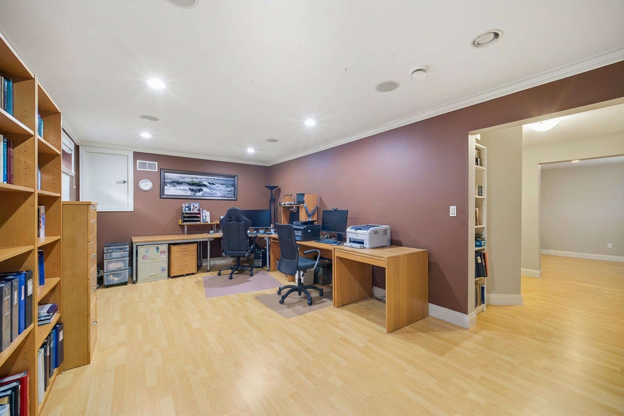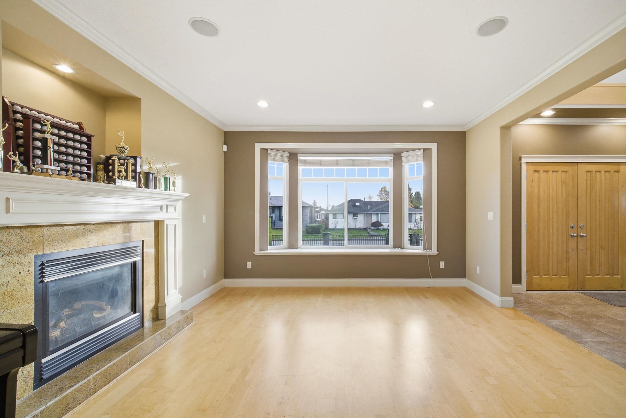 This gorgeous North Burnaby custom-built home is absolutely spectacular with outstanding workmanship. Situated on a 56.43'x111.36', 6285 sf. flat lot with 6 beds & 3 1/2 baths. Features include 3901 sf. w/a 20 ft high entrance, granite and stainless appliances in the kitchen w/two gas F/Ps in living & dining rooms. It has a huge master bedroom w/double sided gas F/P, jacuzzi tub & a 30 ft long deck with breathtaking mountain views. Below is a fully wired media room & a two bedroom m/help. down w/8.5 ft ceil...