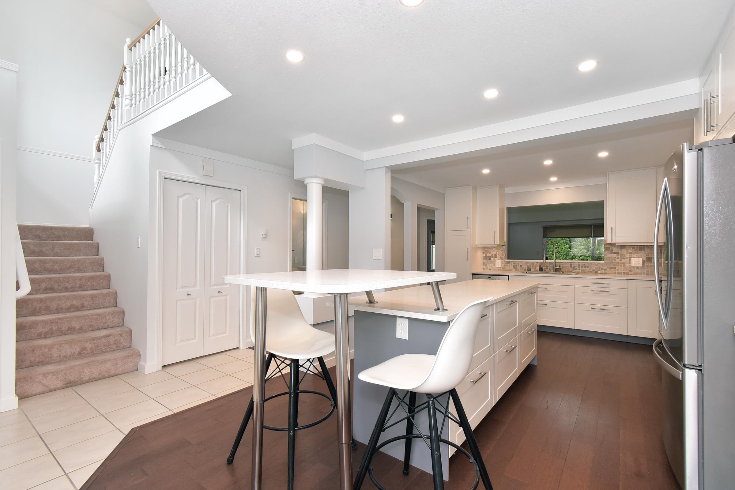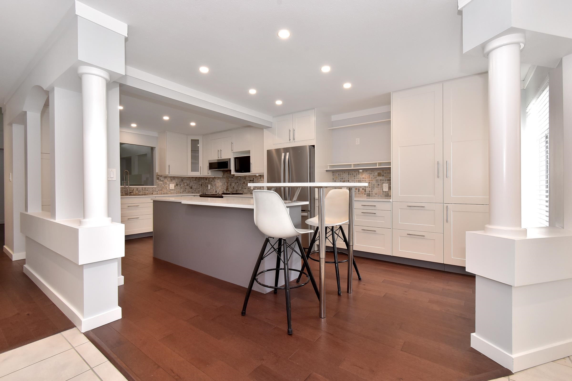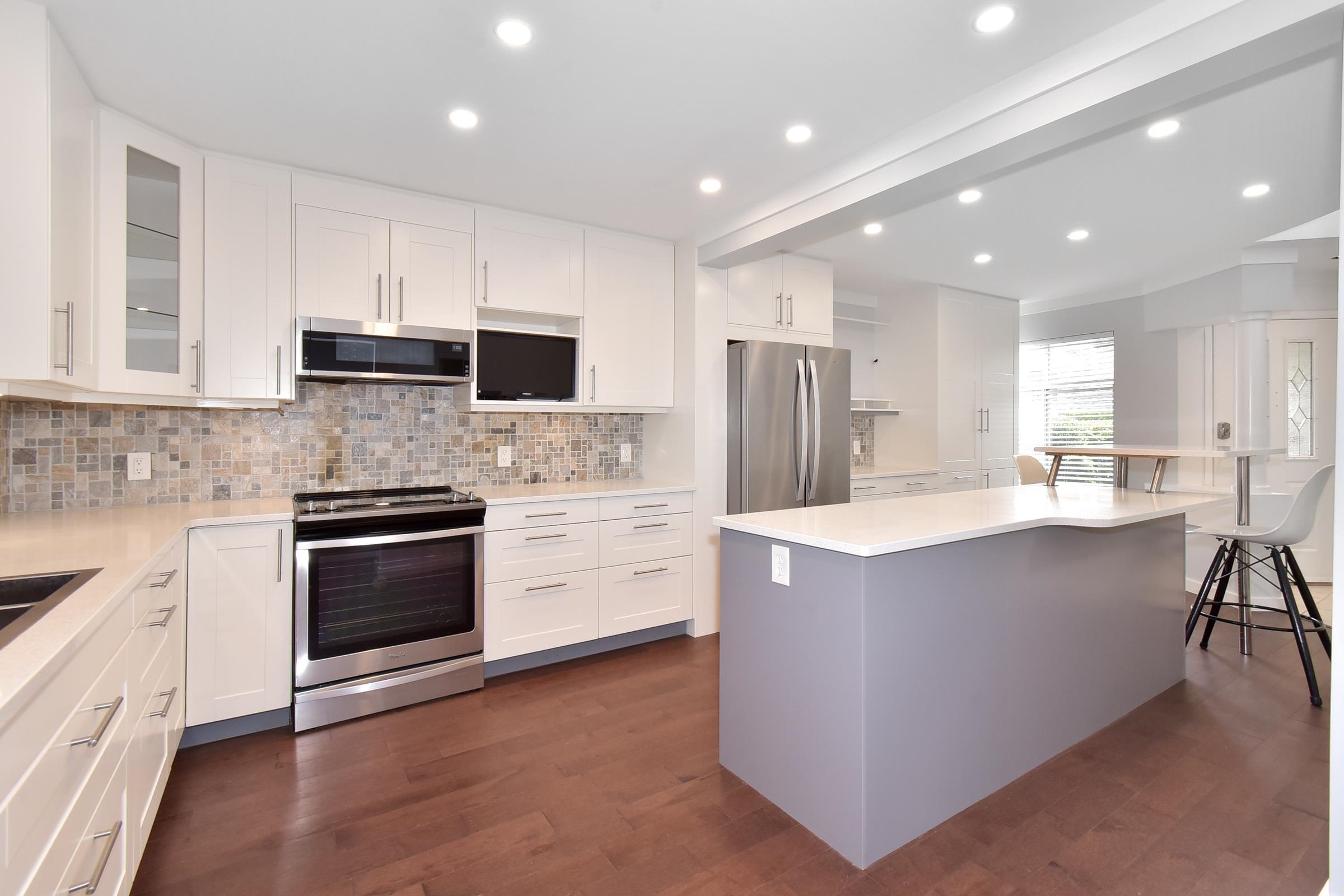 Experience comfort & security in Peninsula Village (55+) gated community featuring a spacious primary bedroom on the main floor! A modern chef inspired kitchen is the heart of the home with stainless steel appliances, oversized bi-level island (removable 2nd tier), sleek white soft close shaker cabinets, quartz countertops & pull-out drawers in all lower cabinets for easy access & organization. Engineered hardwood floors, updated ensuite & powder room, living room gas fireplace & soaring 17’ ceilings; upper...