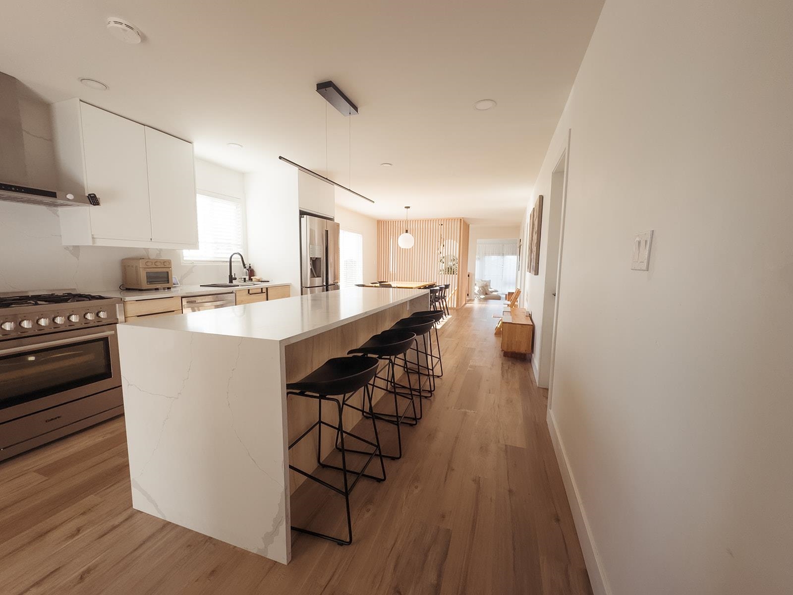 Beautifully renovated 7-bed, 5-bath home just two blocks from vibrant Hastings Street and minutes to Brentwood, Costco and transit. Bright open-concept main floor with stunning waterfall kitchen island, maple accents and modern finishes. Upper level offers mountain views and spacious 3 bed / 2 bath living area. Three separate ground-level mortgage helpers provide strong rental income potential. Located near parks, schools and shopping in a highly convenient North Burnaby location. Ideal for multi-generation...