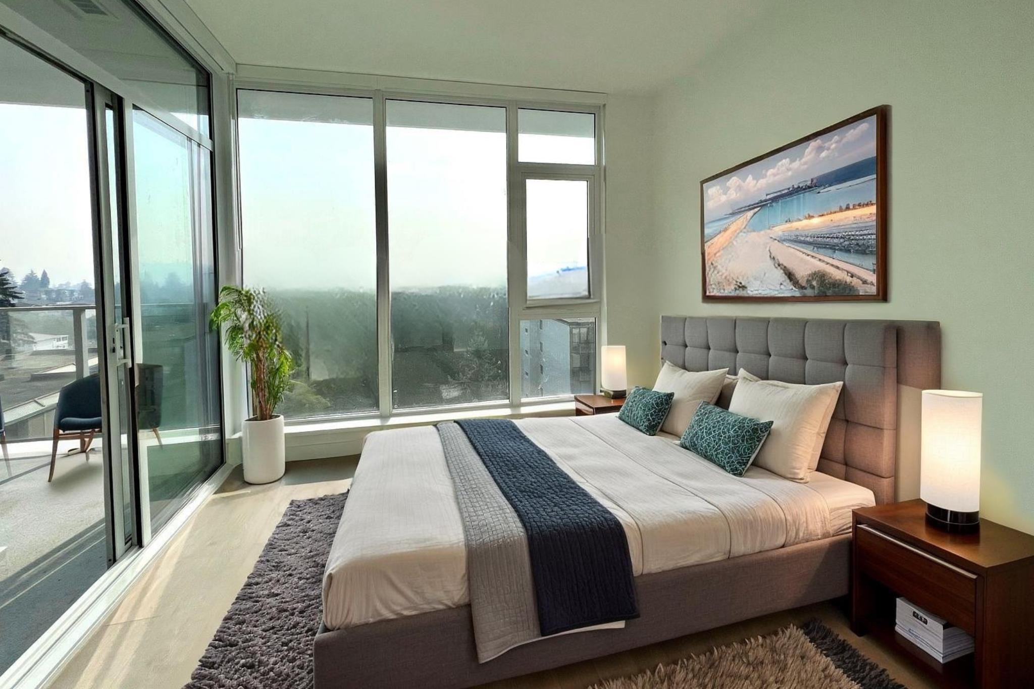 LOW PRICE 2 BED 2 BATH concrete newer condo with A/C near Lougheed mall has very unique features that are unlike any other units in the area: 1) SOUTHEAST CORNER with abundance of sun lights; 2) AlI FULL SIZE stainless steel appliances for true family living; 3)VERY QUIET unit facing AWAY from the SkyTrain and North Road; 4) Unobstructed panoramic city, mountain, and water views YOU HAVE TO COME SEE IT TO BELIEVE IT! 5) HUGE 180sf SQUARED BALCONY for outdoor living/entertaining; 6) World class amenities inc...