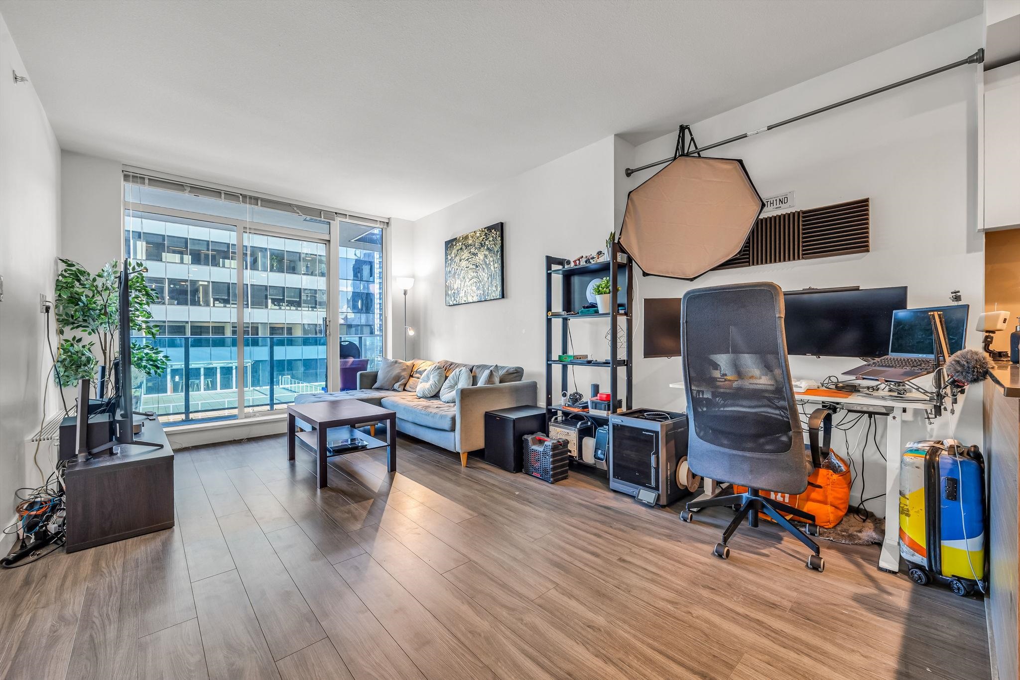 Bright modern 1 bedroom home at King George Hub One by award-winning PCI Developments, located in the heart of Surrey City Centre. This well designed home features an open concept layout with modern U-shaped kitchen, sleek cabinetry & integrated appliances. This smart floor plan maximizes every square foot, making it perfect for first time buyers, investors or professionals looking for convenience & style. Enjoy expansive windows, contemporary finishes & an extra wide balcony perfect for relaxing & entertai...