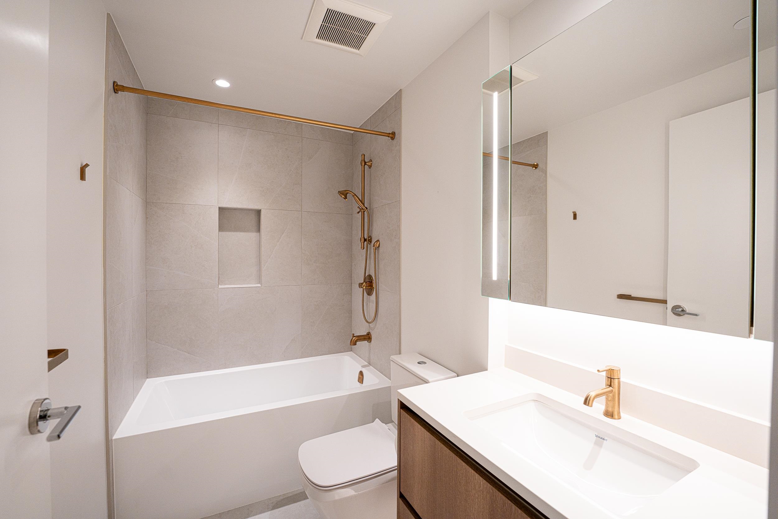 South-facing 2 BED + FLEX home at Smith & Farrow, offering exceptional natural light and a generous 125 sq.ft. patio with gas hookup—perfect for seamless indoor-outdoor living. Features include A/C with smart thermostat, integrated Fisher & Paykel/Bosch appliances, 5-burner gas cooktop, French-door refrigerator, and a custom pantry wall. The primary bedroom includes a built-in wardrobe and spa-inspired ensuite with heated floors, frameless glass shower, and medicine cabinets. The second bathroom offers a so...