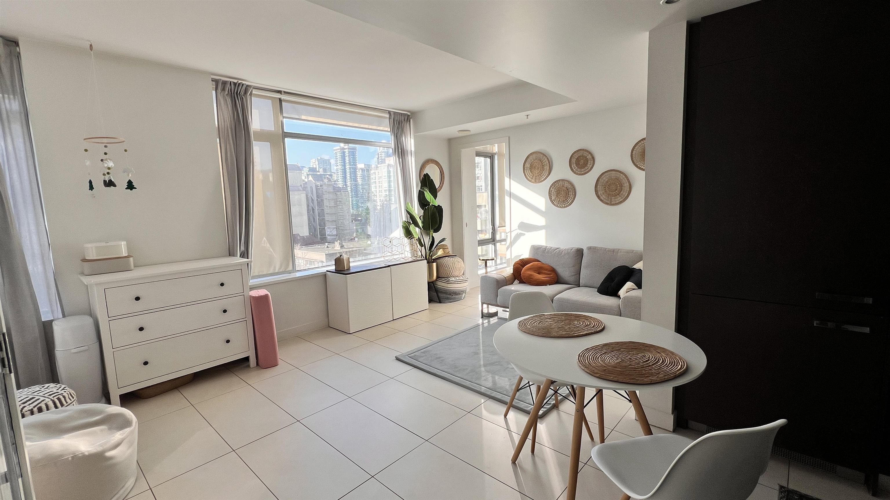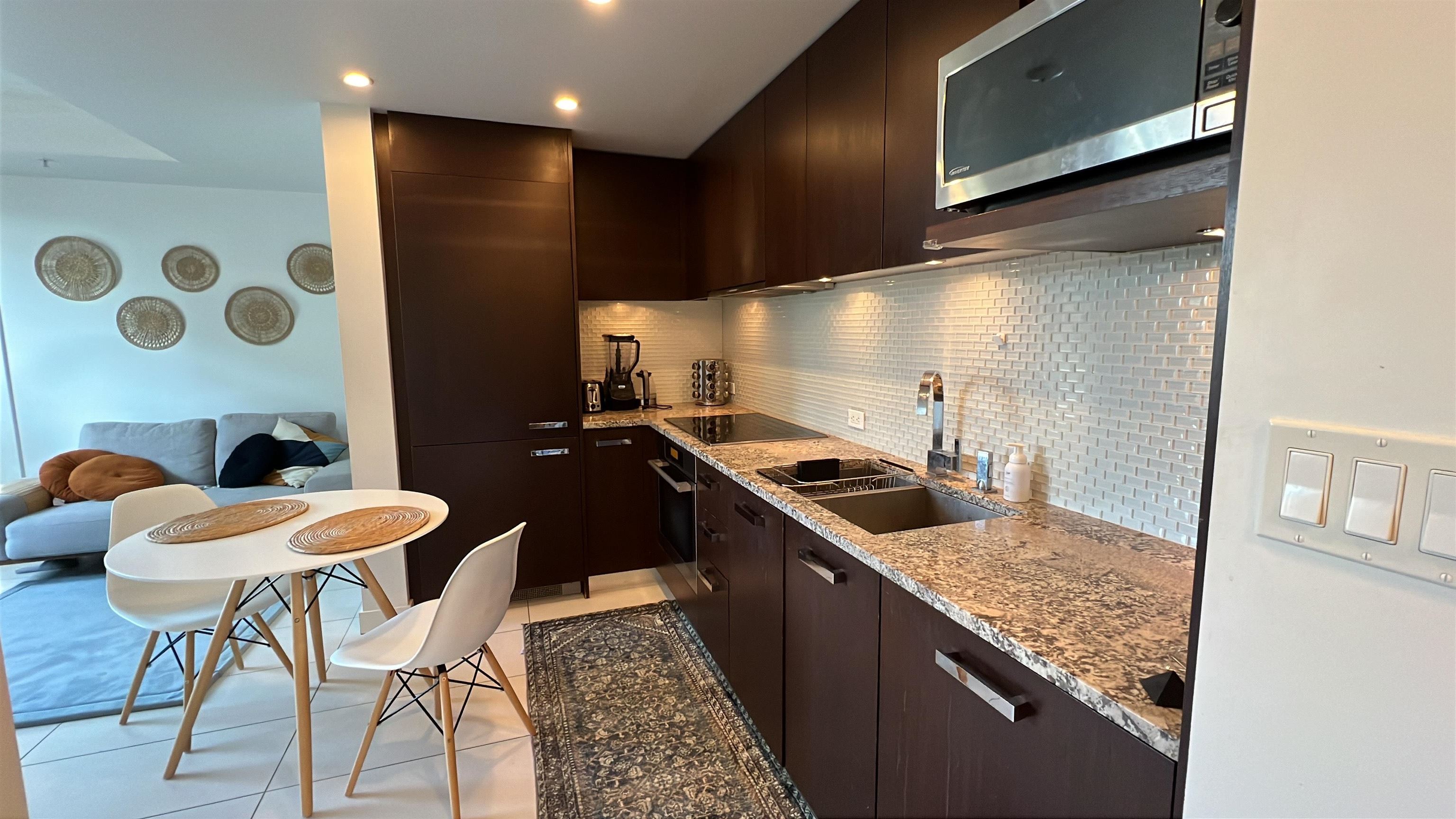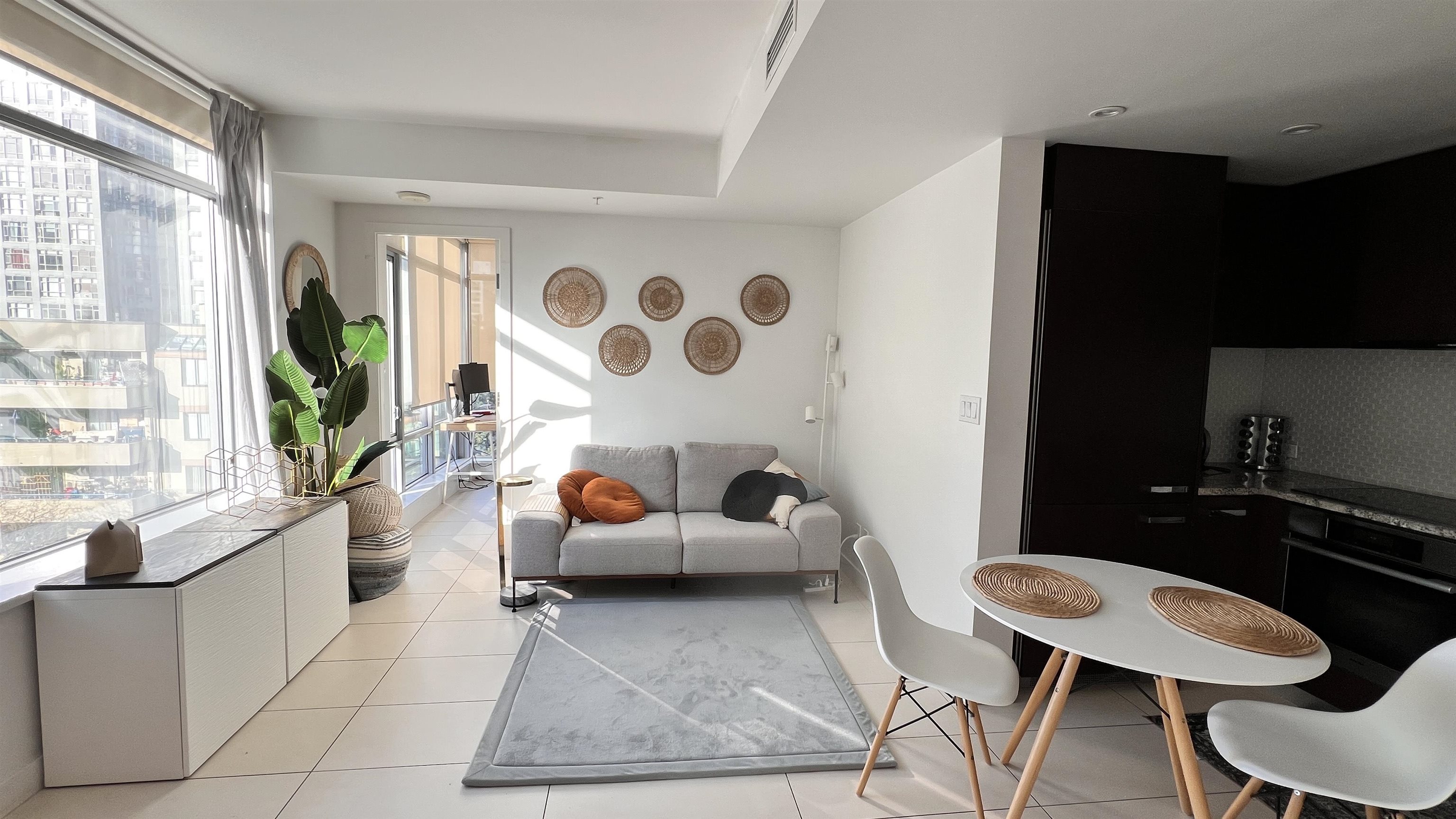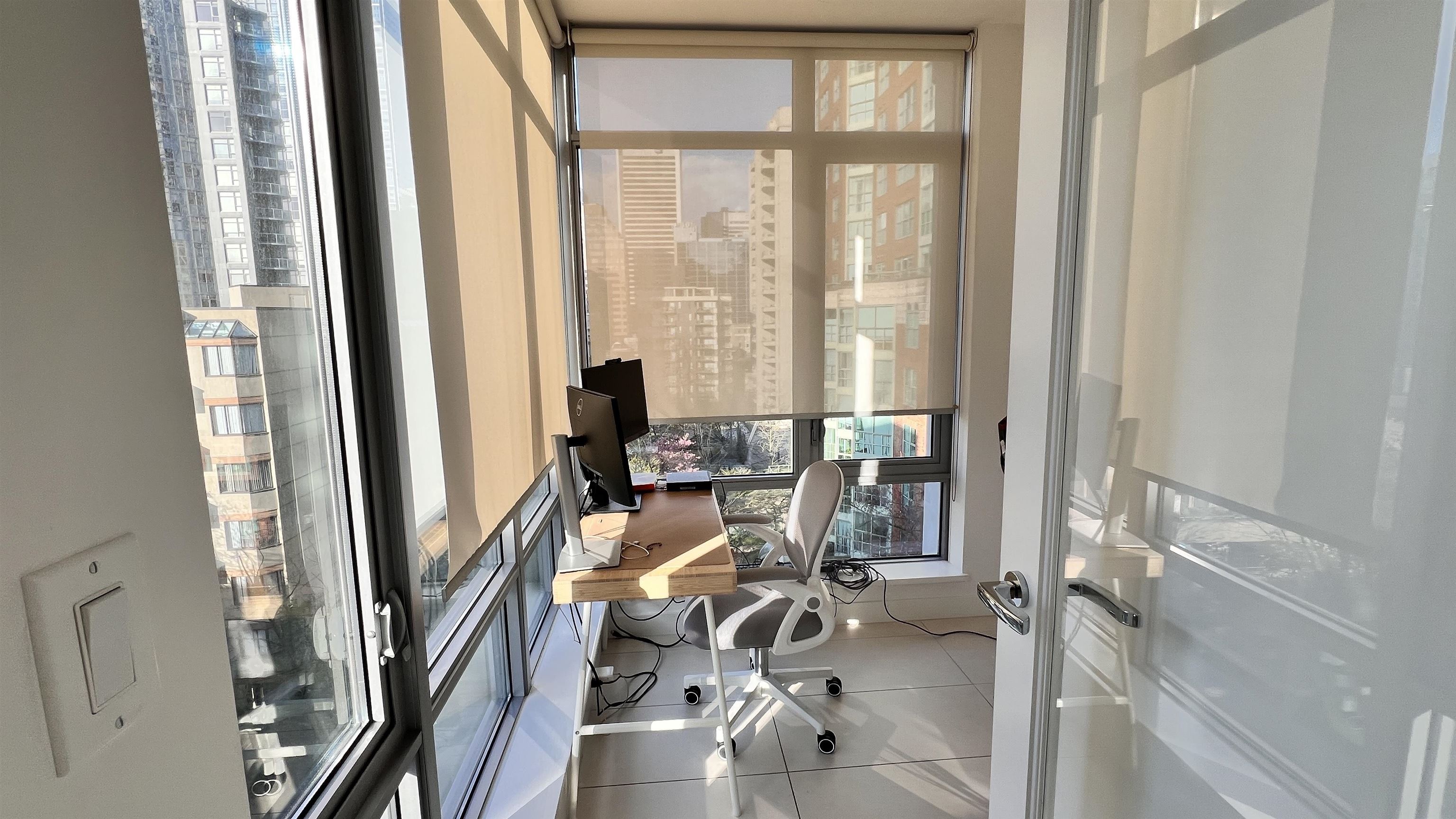 Bright and modern Studio + Den home located in Patina, a desirable concrete high-rise in Vancouver’s West End. This functional 533 sq.ft. layout offers a partially furnished interior with contemporary finishes and in-suite laundry. The den provides flexible space for work or storage. One storage locker is included. No parking with the unit, but parking may be available for rent in the building. Small pets are allowed with owner approval. Enjoy an unbeatable location just steps to Robson Street, cafés, dinin...