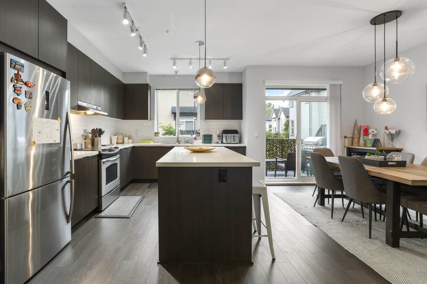 Welcome to Ashbury & Oak by Polygon in the heart of Willoughby! Bright and beautiful townhome with 3 bed + den, 3 bath, and rare side-by-side double garage with individual doors. Open-plan main with 9' ceilings, powder room, spacious living/dining, and entertainer’s kitchen with huge island, quartz counters, and S/S appliances flowing to a sunny BBQ deck. Upstairs: primary with walk-in closet and spa-inspired ensuite with double sinks. Lower den/flex with built-ins opens to a quaint fenced front yard. Resor...