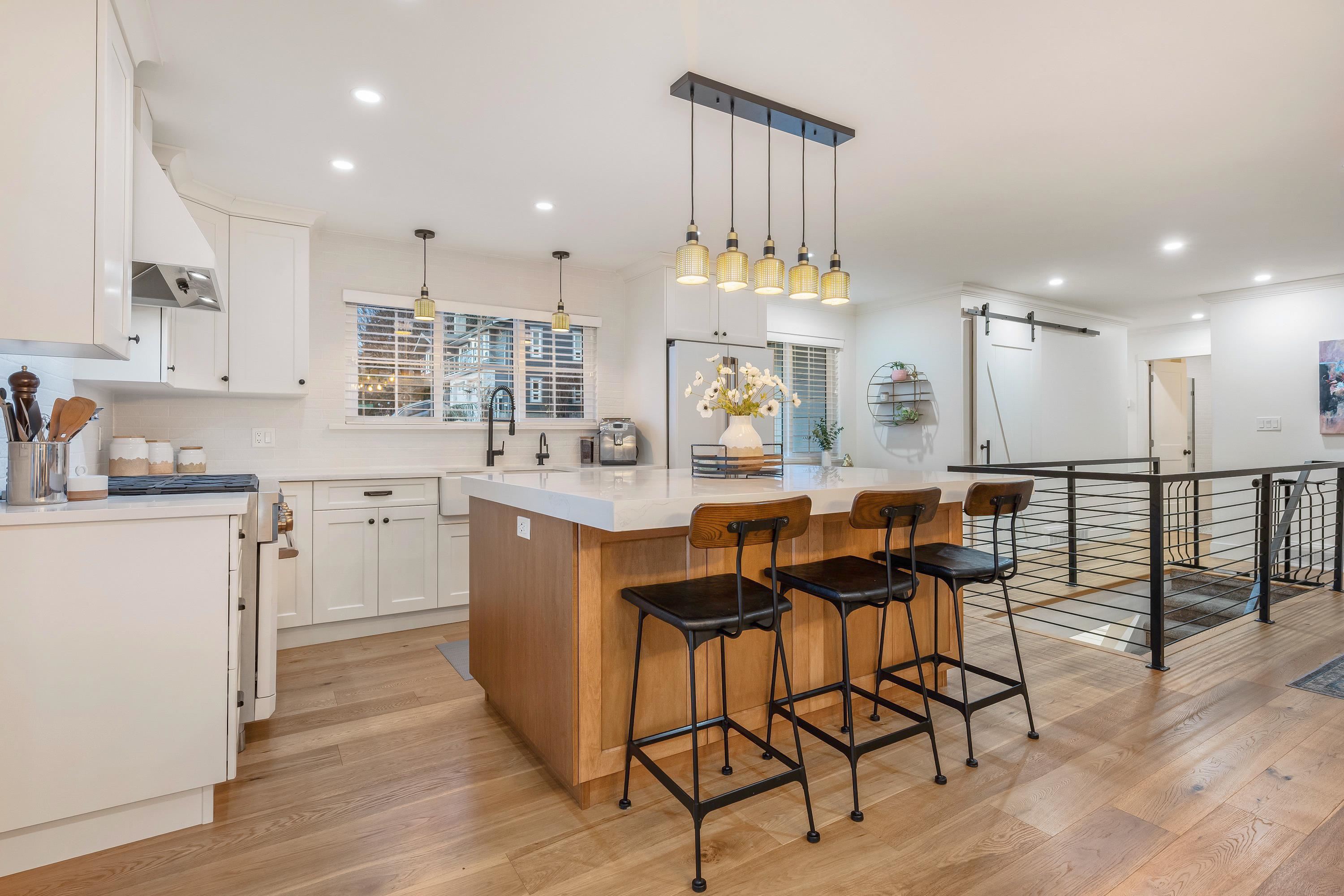 This renovated & meticulously maintained gem backs onto a quiet FORESTED RESERVE, offering privacy + an outdoorsy feel inside out. MODERN FARMHOUSE DESIGN meets thoughtful functionality in this family home. Bright, open layout enhanced by TASTEFUL FINISHES, beautiful accent lighting, stylish MODERN RAILINGS & plenty of space for a growing family. The kitchen is a standout, equipped w/PREMIUM GE CAFE appliances w/brass accents, incl a GAS RANGE, a BARN-DOOR PANTRY + an office nook/study area. Versatile groun...
