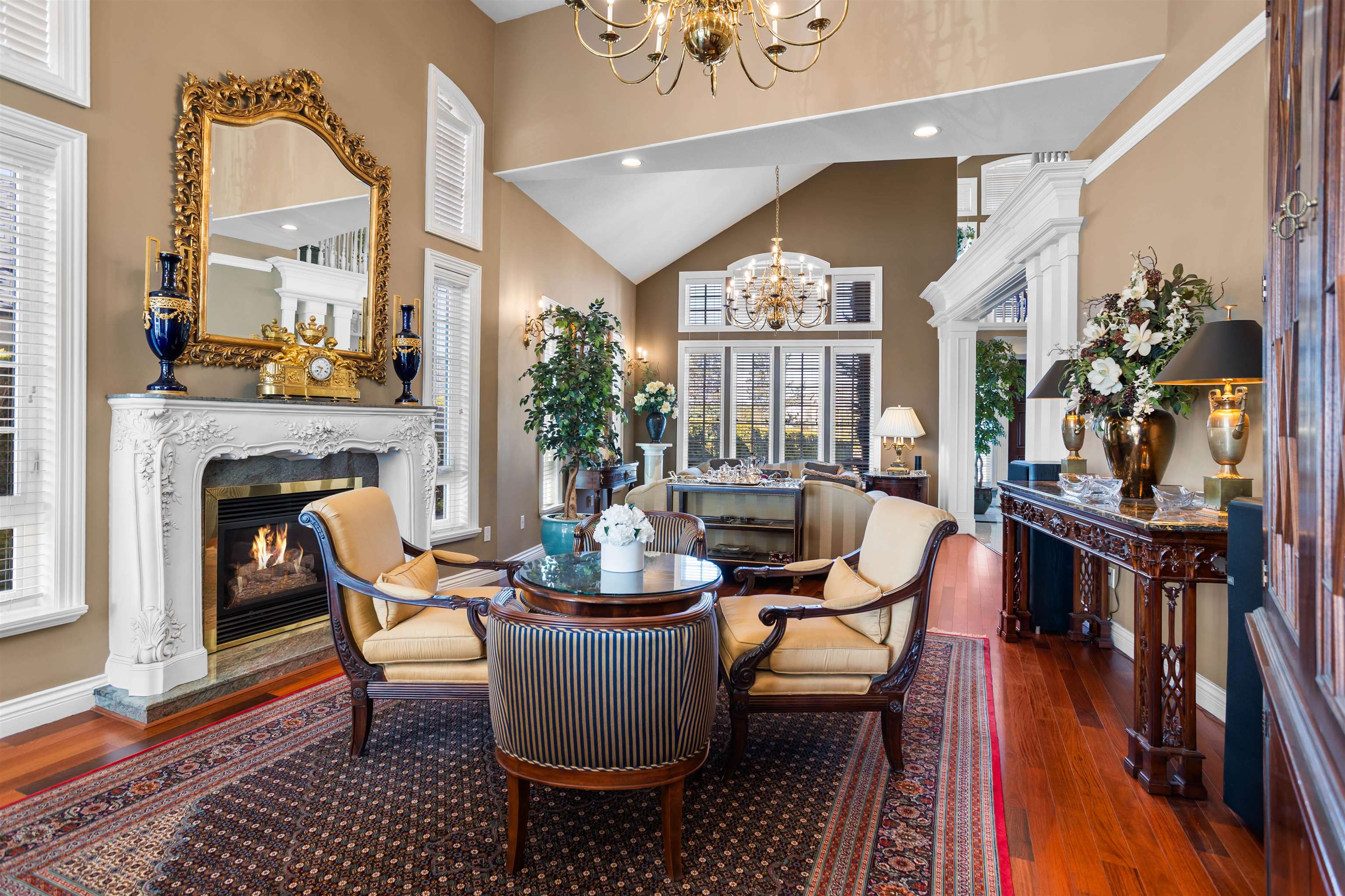 Experience elevated living in this extraordinary custom built home on a 14,542 sqft lot & offering 6400+ sqft on 3 lvls w/ 2700+ sqft on main. Grand foyer/staircase open to spectacular great rm w/ soaring vaulted ceilings. Primary suite is a refined retreat w/ spa inspired ensuite, WIC & tranquil solarium. Gourmet kit showcases custom cabinetry, quartz/granite counters & premium Wolf & Sub Zero appl. Lower lvl feat theatre, billiards & bar to covered patio. 6 updated baths, new windows, eng hrdwd, porcelain...