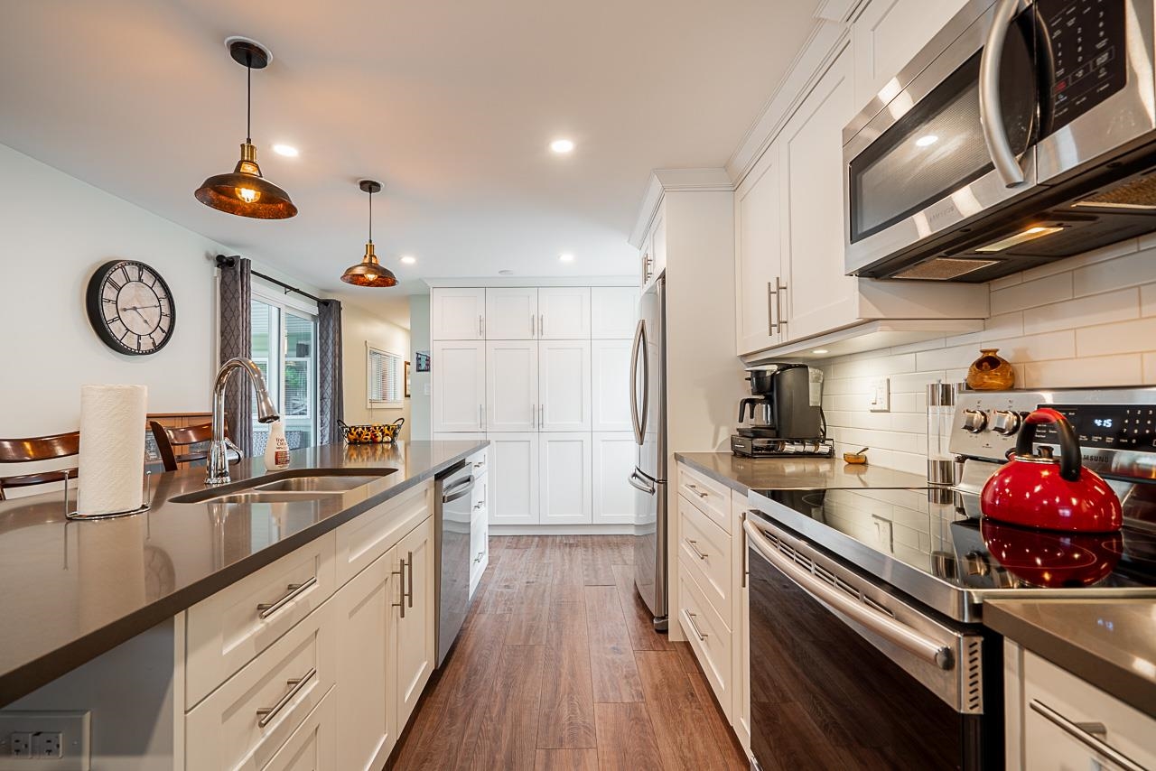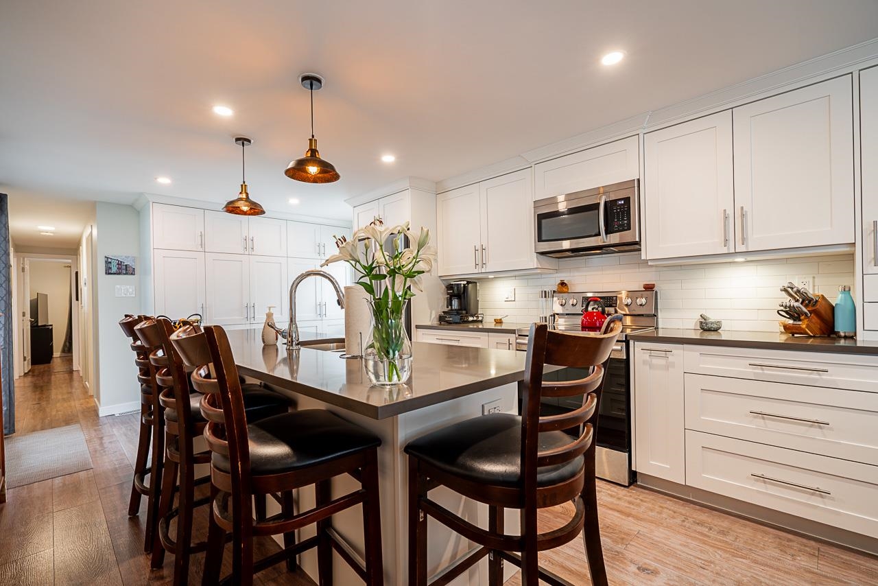BREAKAWAY BAYS. A wonderful manufactured home park located in the heart of South Surrey. This is turnkey ready to move in. Completely renovated with a new roof in 2019, new plumbing, electrical, insulation, drywall, new bathroom w/fixtures, new kitchen cabinetry with a massive island, quartz countertops, flooring, stainless steel appliances, new siding, extended deck, new navien hot water on demand system, stacker washer/dryer, this home has it all!. Tons of storage here with a new shed and home being on cr...