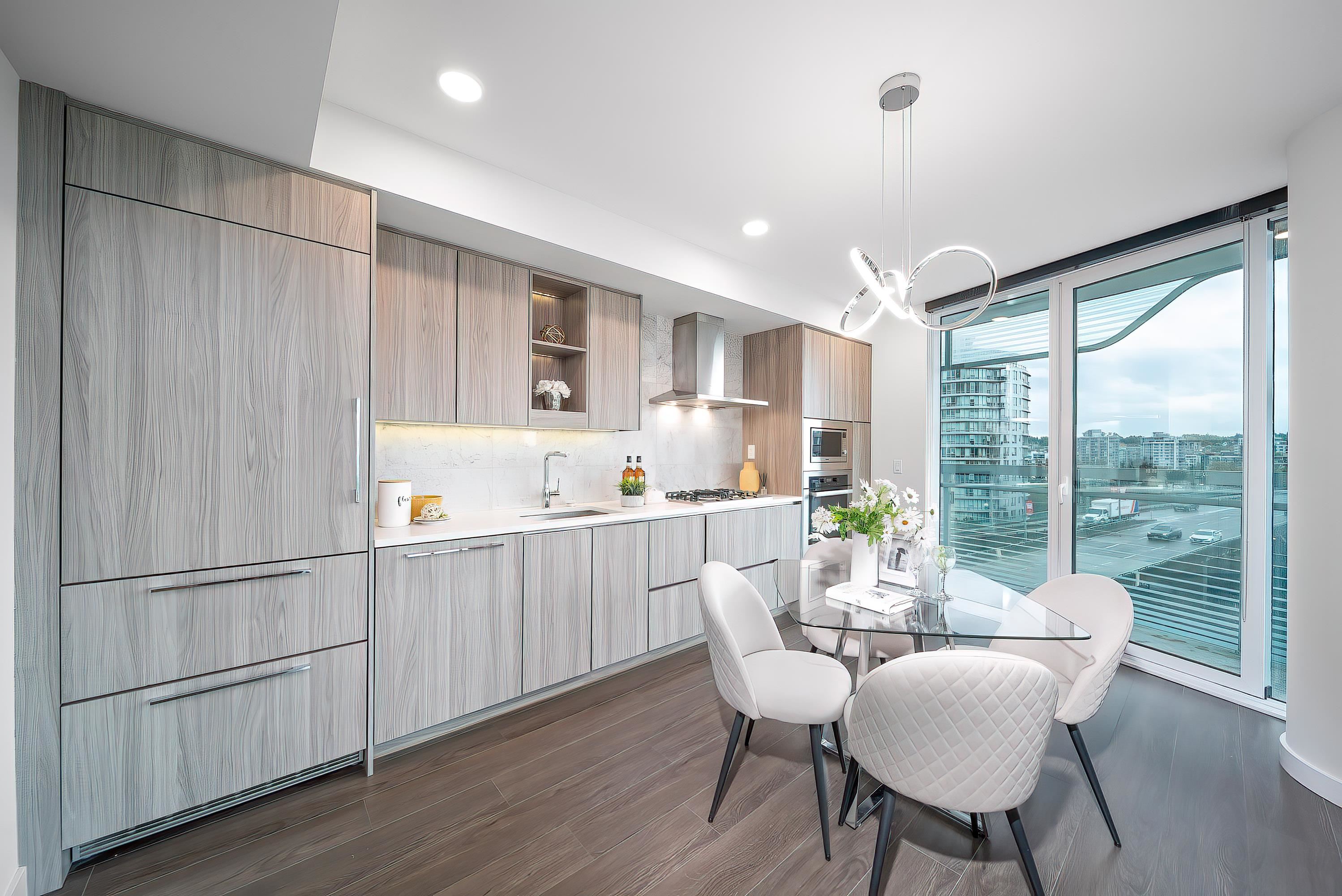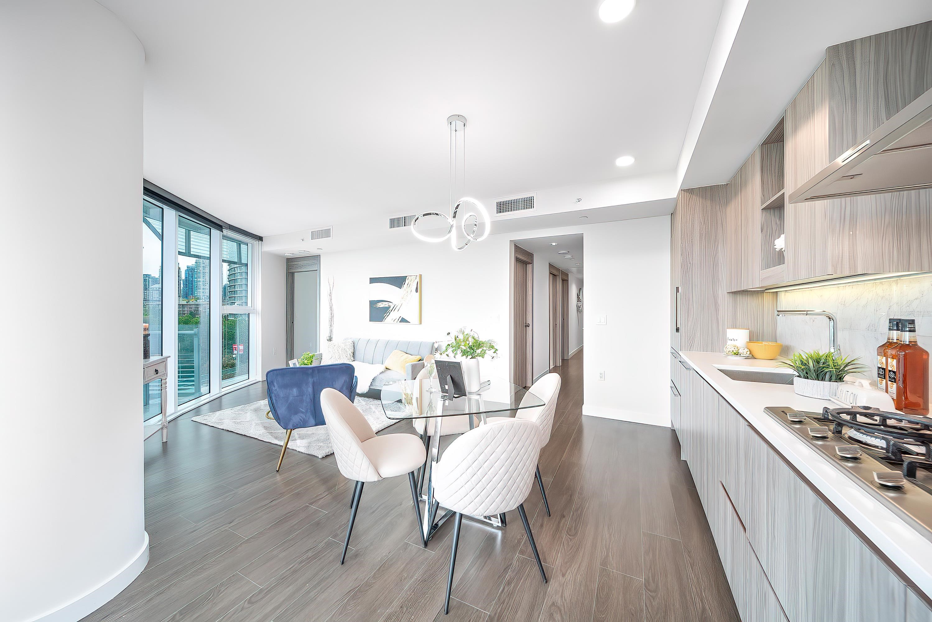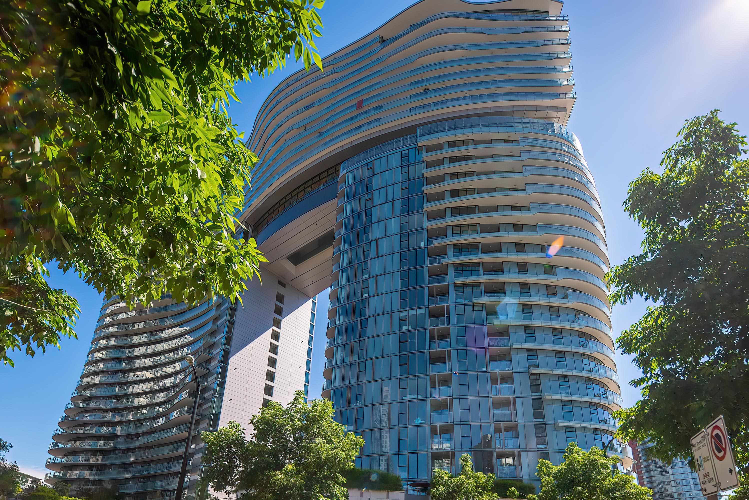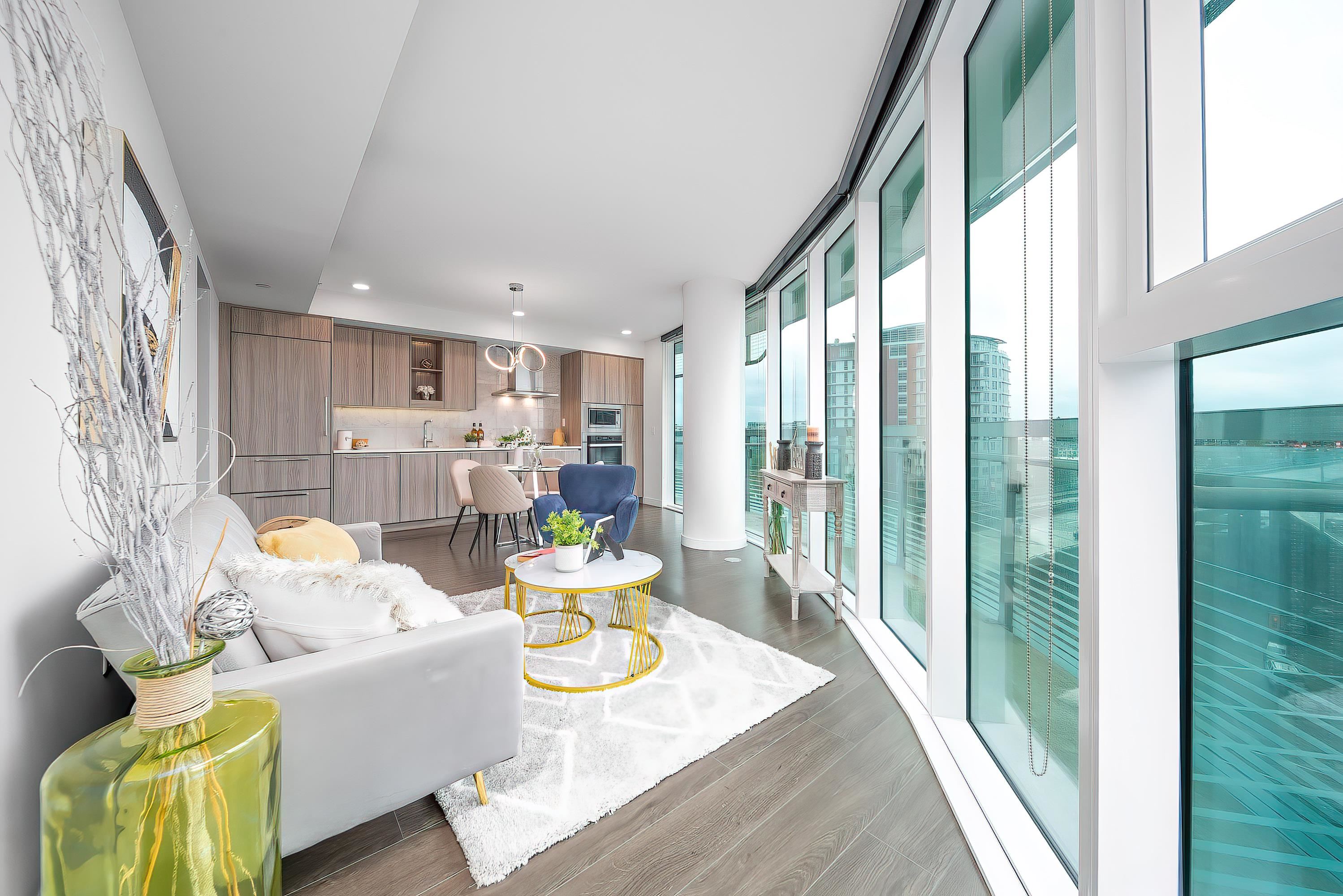 Architecturally refined 2-bed&flex/den, 2-bath corner home The Arc by Concord Pacific, offers sweeping views of False Creek and skyline. Thoughtfully laid out floor-to-ceiling windows, and well-separated bedrooms for privacy, the residence combines smart design with modern elegance. Marble tiles throughout bathrooms. Premium kitchen is equipped with Miele appliances, while the primary suite features a spa-like ensuite and a spacious closet. Access to the exclusive Sky Club with its world-renowned 20th-floo...