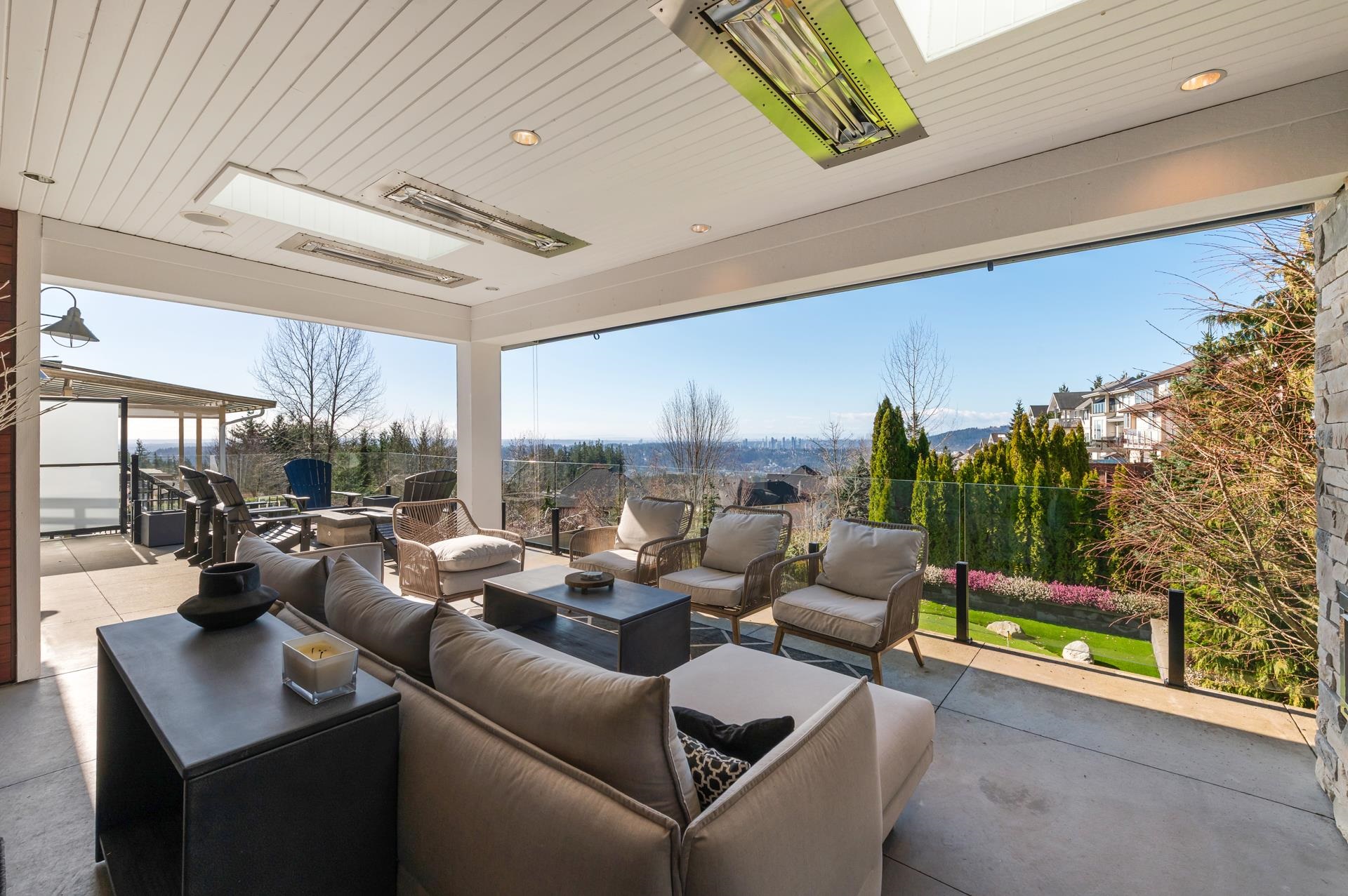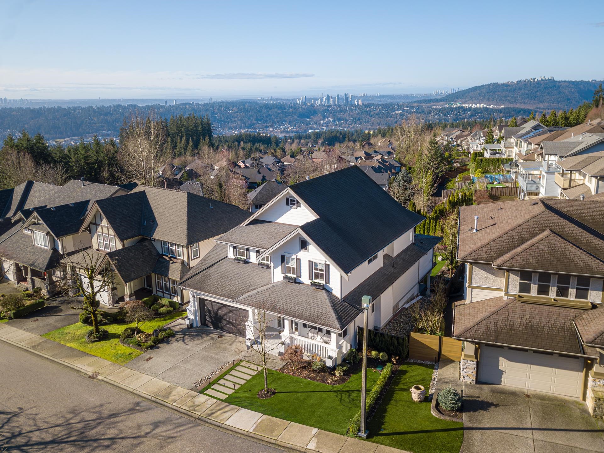 PANORAMIC VIEWS AT THE TOP OF PORT MOODY! This reimagined 4-bed masterpiece feels like it belongs in Dwell Magazine. The design is next-level, featuring a unique concrete deck that creates a one-of-a-kind outdoor entertaining space, with slick heating for cool summer nights! Totally tech-forward with Control4 automation for your blinds, media, and fireplaces. Every square inch has been thoughfully re-imagined during the renovation. Practice your short game on the private pitch-and-putt green while soaking i...