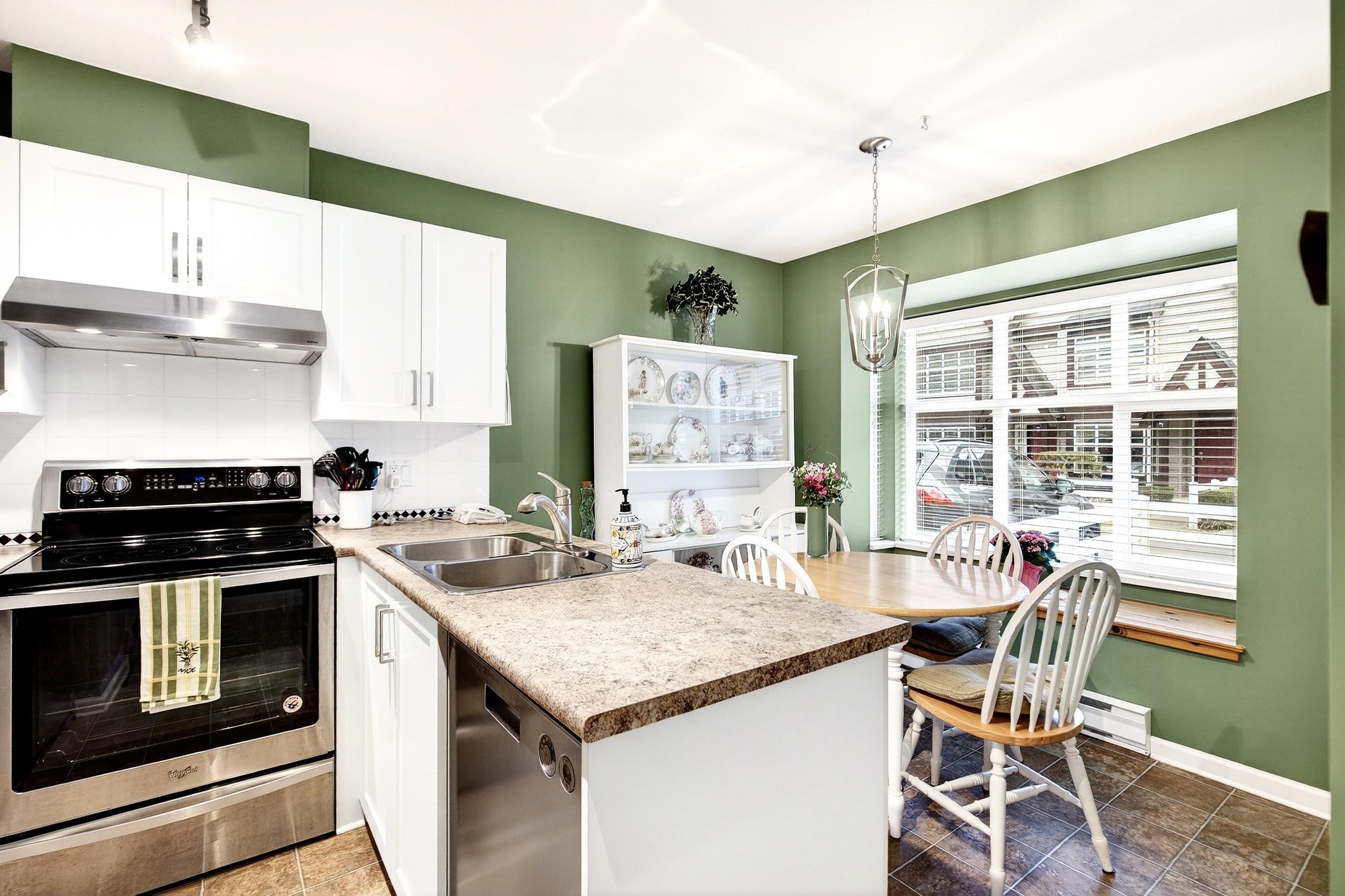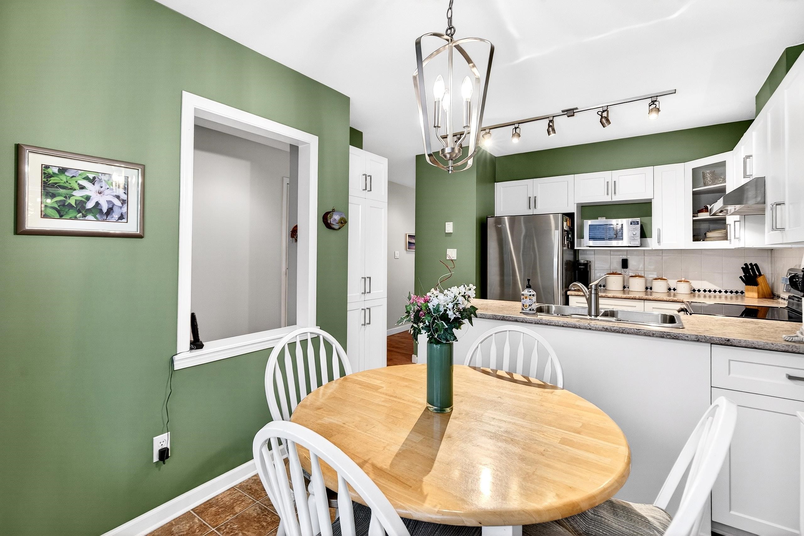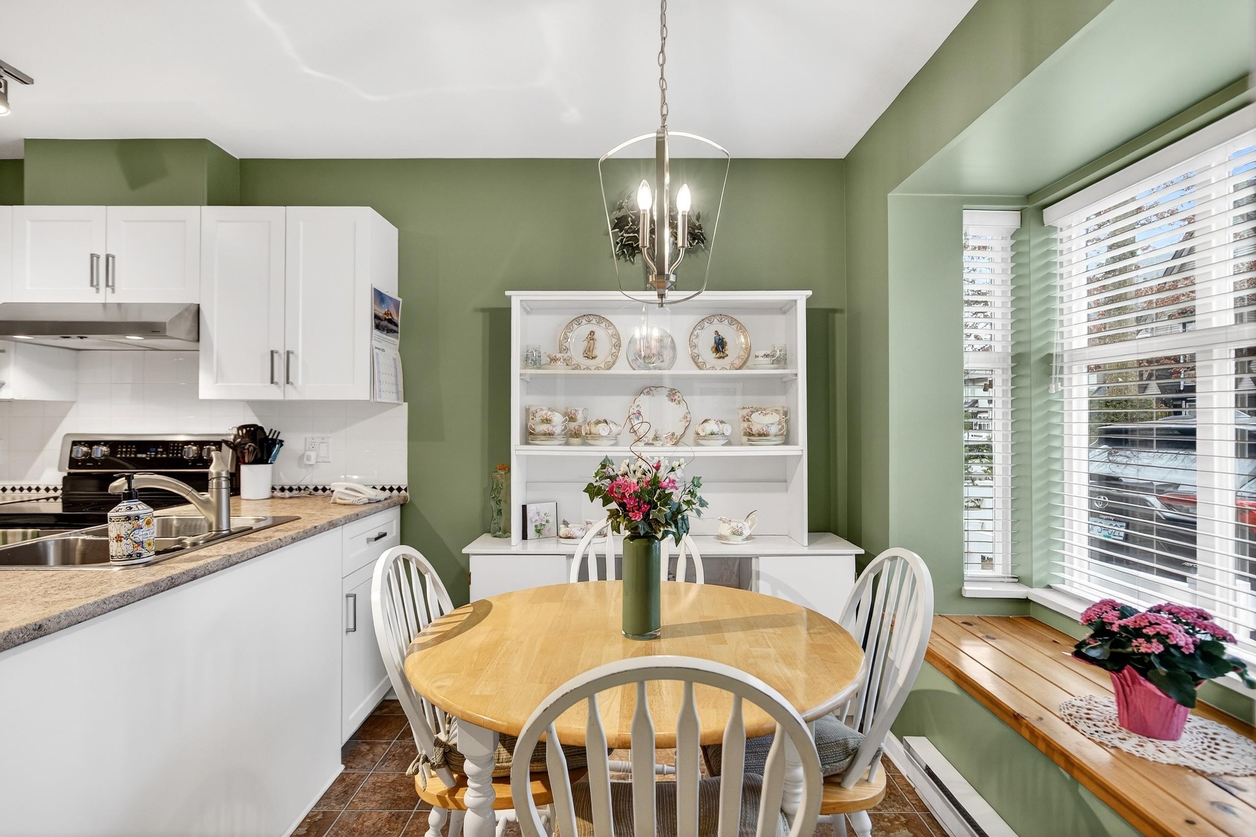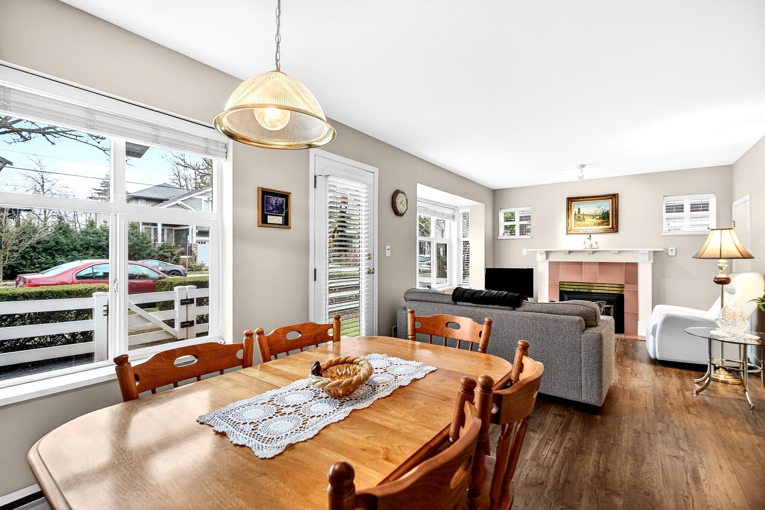 Welcome to the Galiano! Tree lined streets & white picket fences in a family friendly neighbourhood! This IMMACULATE 1,300 sq ft 3 bed/2 bath 2 level updated END UNIT townhouse feels like a HOME & has been lovingly maintained by this ORIGINAL OWNER since new! Level entry main floor offers a feat living area w/ gas fireplace & loads of natural light, formal dining & eat-in nook, updated kitchen with shaker style cabinets/newer countertops & stainless appliances + level exit to the eastern exposed fenced rear...