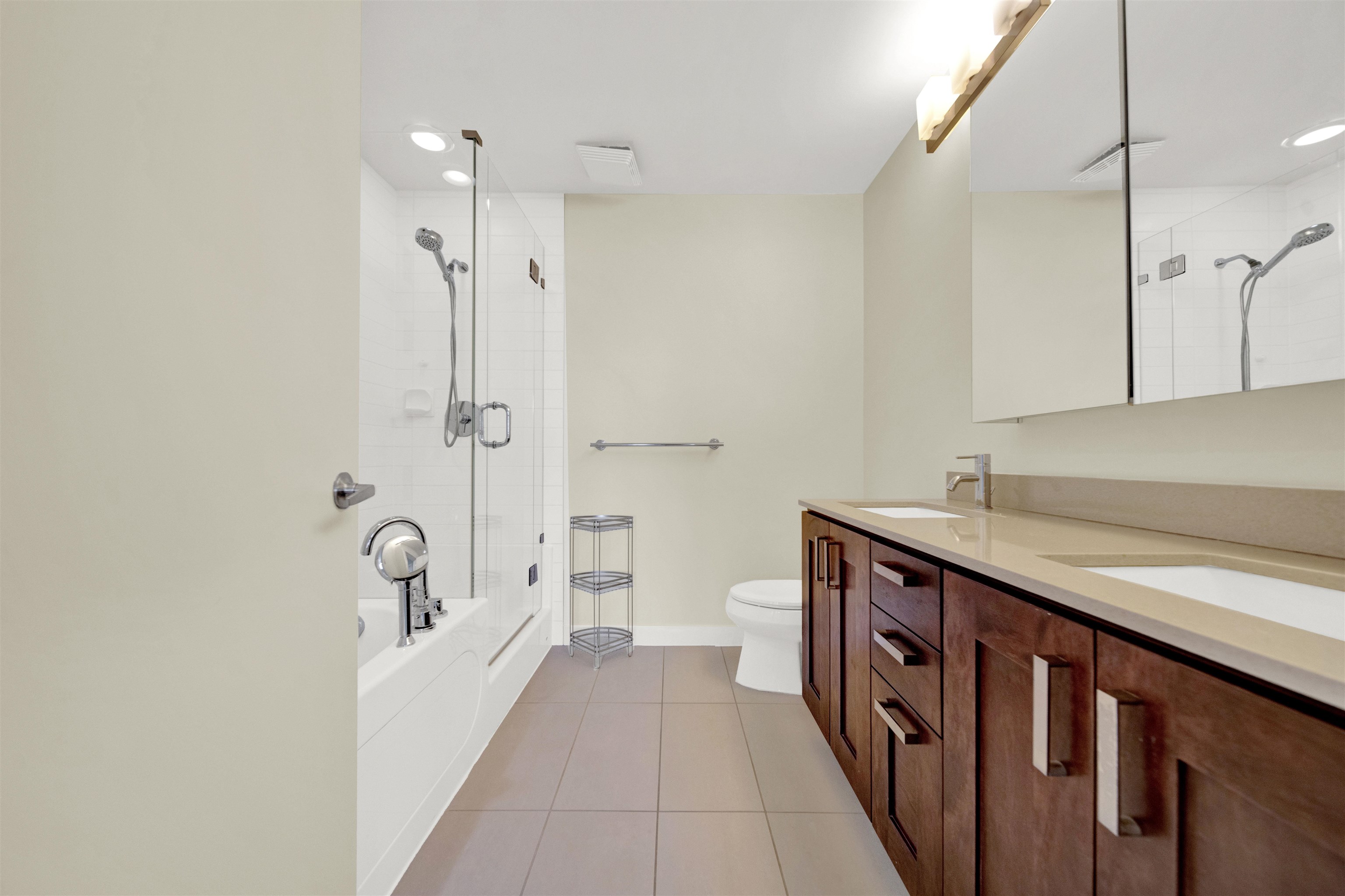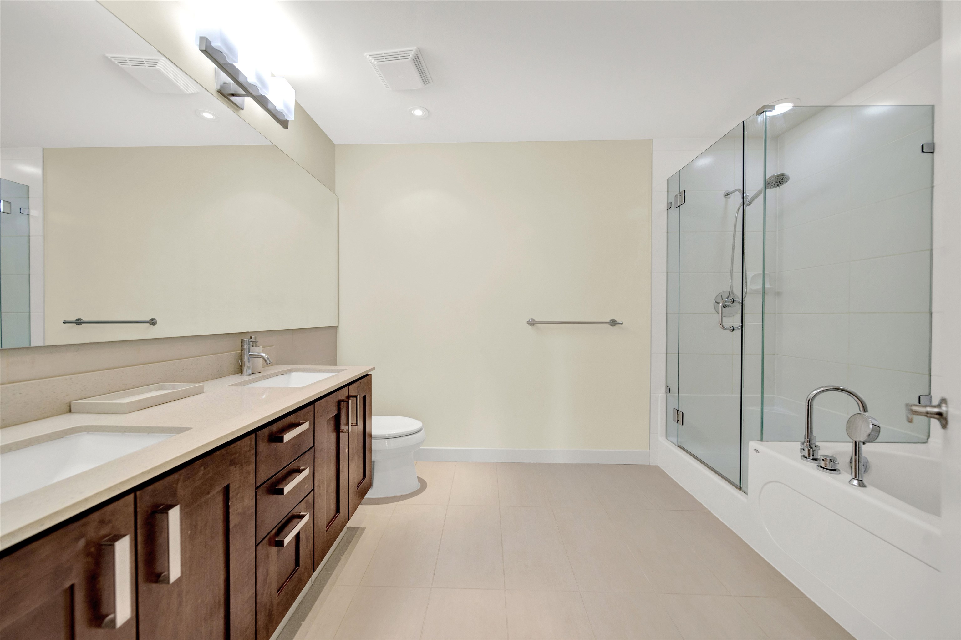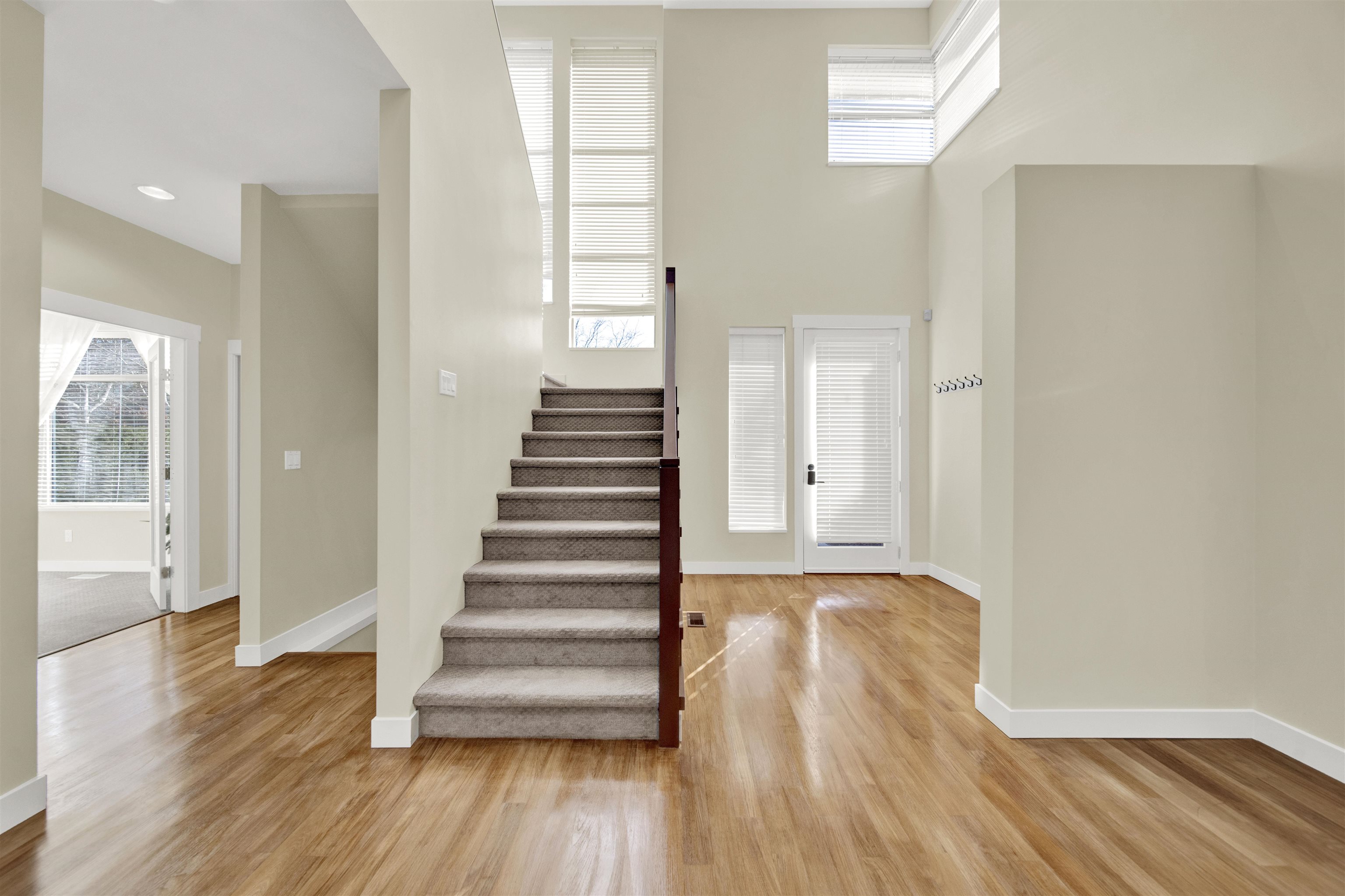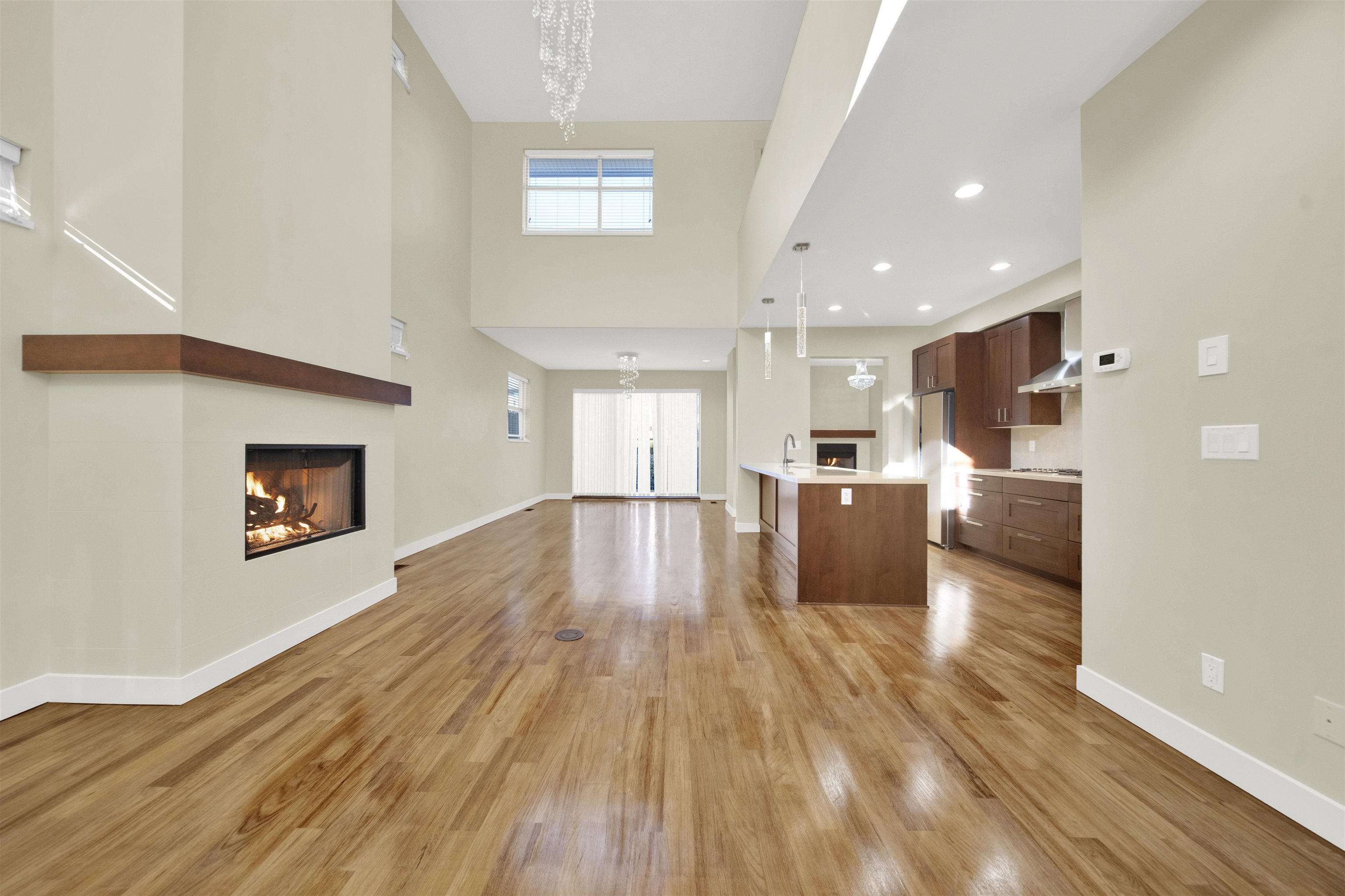 VINTERRA, this exceptional residence feels like a detached home within a townhome setting. A luxurious primary bedroom on the main level features a spa-inspired ensuite. Striking architecture and soaring 19-foot ceilings create an elegant open-concept living area. The high-end kitchen flows seamlessly into a generously sized dining room. The upper level features two large bedrooms plus a balcony-style open workspace. The lower level offers a spacious fourth bedroom, a versatile karaoke/media room with wall-...