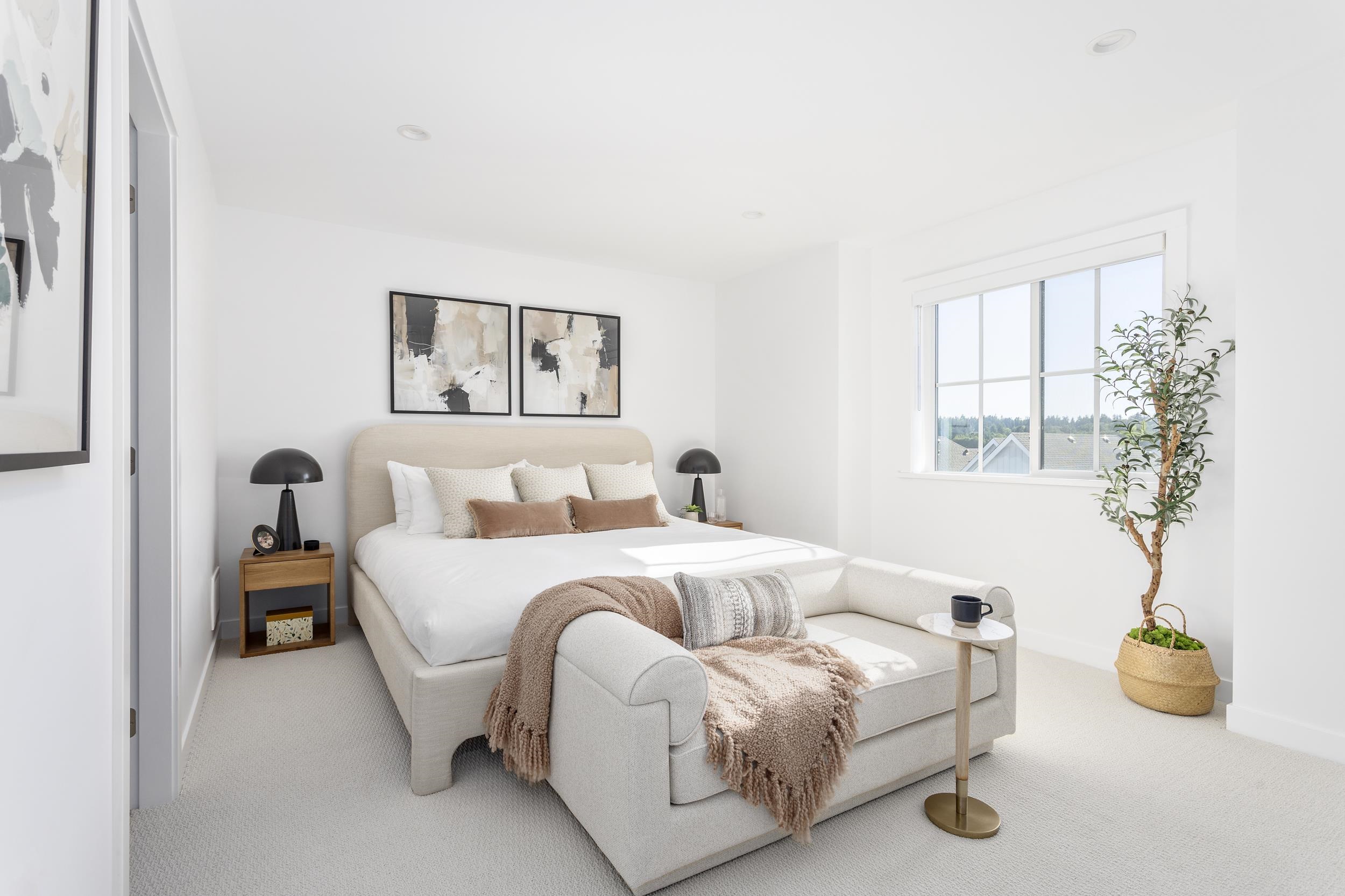 Centennial Green ~ This 3 bedroom + den contemporary craftsman style townhomes with a colourful front door is a short walk to the beach. At home, you have a large kitchen island ideal for snacking & homework while you prep food for the day. Stainless steel KitchenAid Appliances & a farmhouse-style sink will help you make beautiful meals. Two spacious bedrooms on the upper floor & your own primary suite on its own floor is a sanctuary with a large picture window, spacious walk-in closet & black-out blinds. T...
