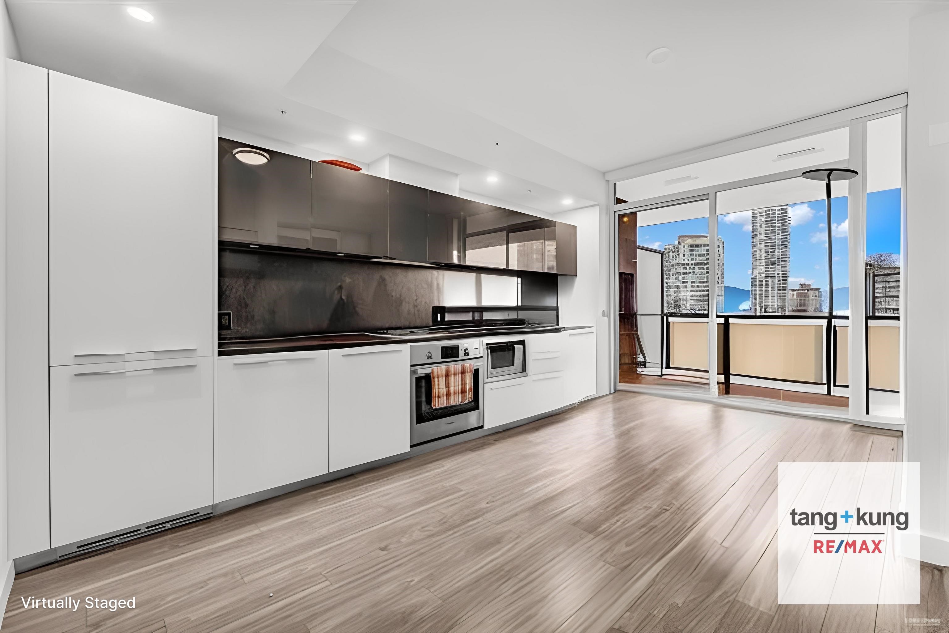 Welcome to Gold House North in Metrotown — a luxury concrete high-rise steps to Metrotown SkyTrain, Metropolis Mall, restaurants, cafés, and Central Park. This bright 1-bedroom home on the 8th floor features a functional layout, high ceilings, air conditioning, floor-to-ceiling windows with mountain views, a modern kitchen with Bosch appliances and gas cooktop, in-suite laundry, and a covered balcony. One parking stall included. Minimum 1-year lease. No smoking or subletting. Pets with approval. Tenant pays...