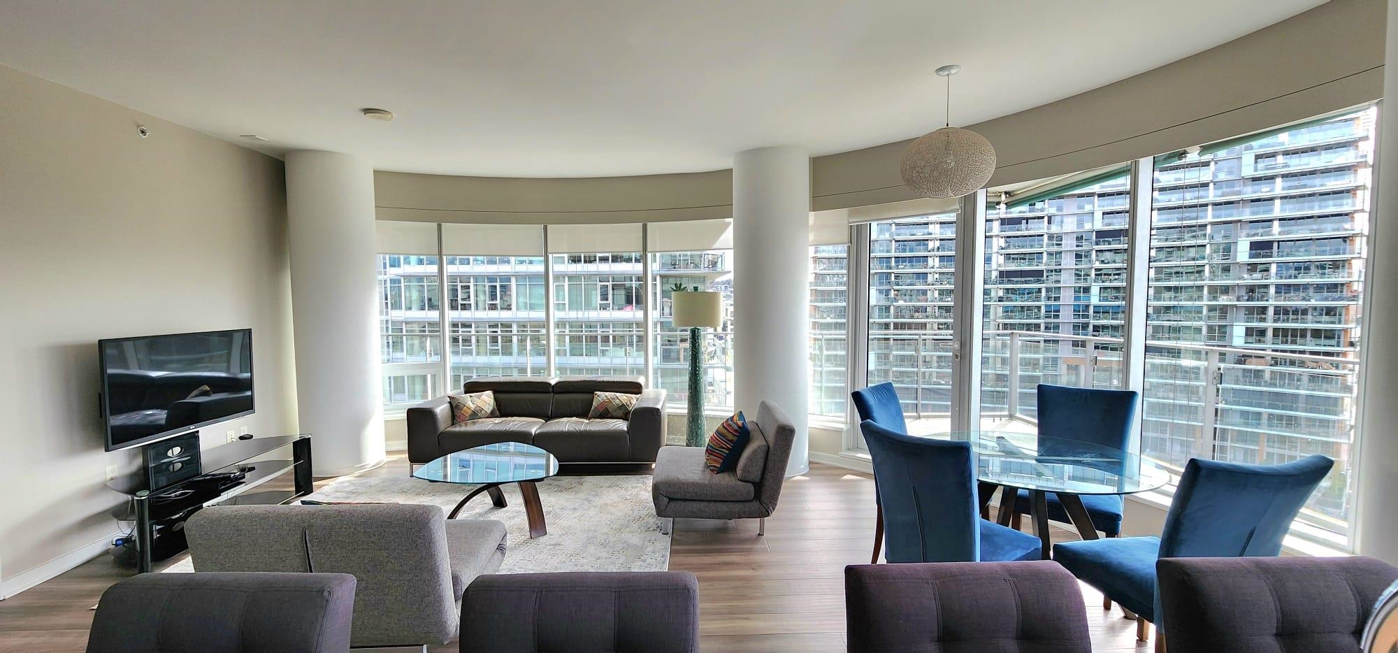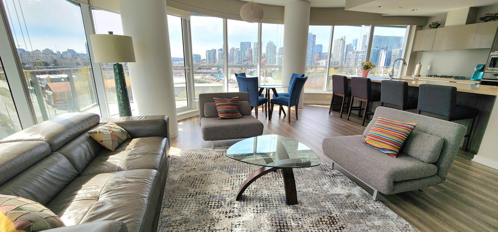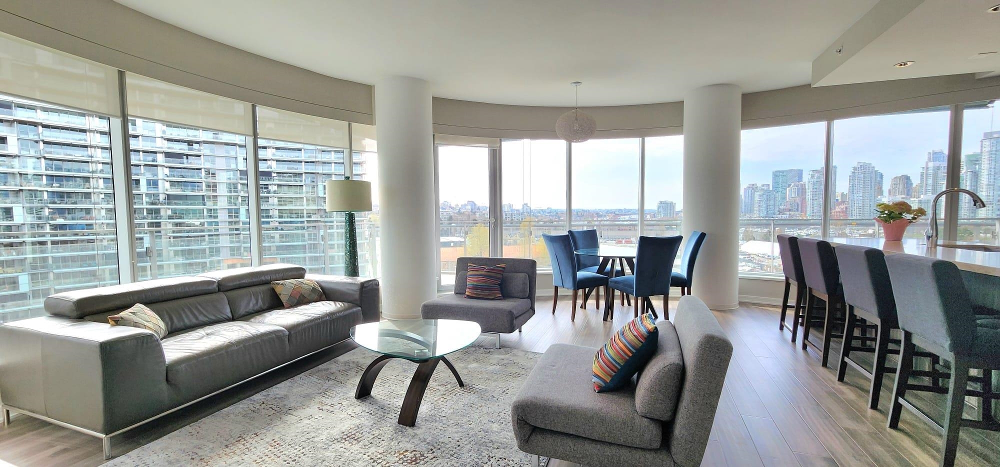 Available for World Cup Soccer Accommodations, Feb.7th at www.kipsmithhomes.com Gorgeous 1250 Sq Ft, 2 Bdrm/2 bath+den Corner Suite, with Wrap-Around Views and great sunsets at 1st and Columbia. Experience the pinnacle of Olympic Village luxury. This sprawling 8th-floor executive residence at 1st and Columbia offers over 1,250 sqft of sophisticated living space. With a stunning wrap-around balcony showcasing the Downtown skyline and North Shore Mountains, this 2BR + Den home is perfectly positioned for th...