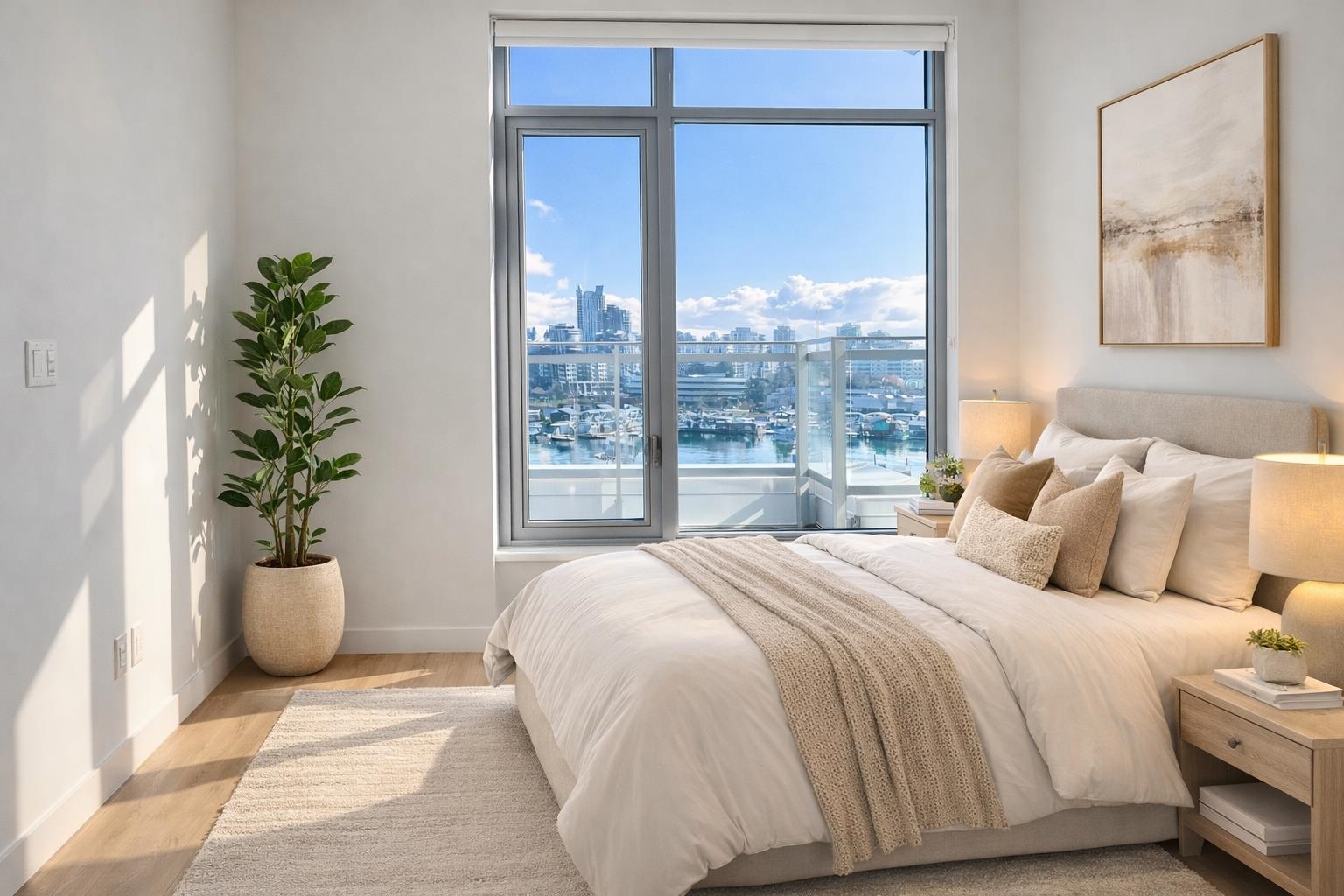 Welcome to this brand new modern waterfront 2-bedroom condo offering an exceptional indoor-outdoor lifestyle. Developed by Concert and built by BOSA, this 8th-floor home features unobstructed sunrise, water, and city views. Expansive windows bring in abundant natural light, complementing the warm earthy-toned interior. Enjoy a spacious terrace with the marina as your backdrop. Amenities include gym and rooftop lounge. Near restaurants, shopping, parks, and SeaBus. Spirit Trail at your doorstep.