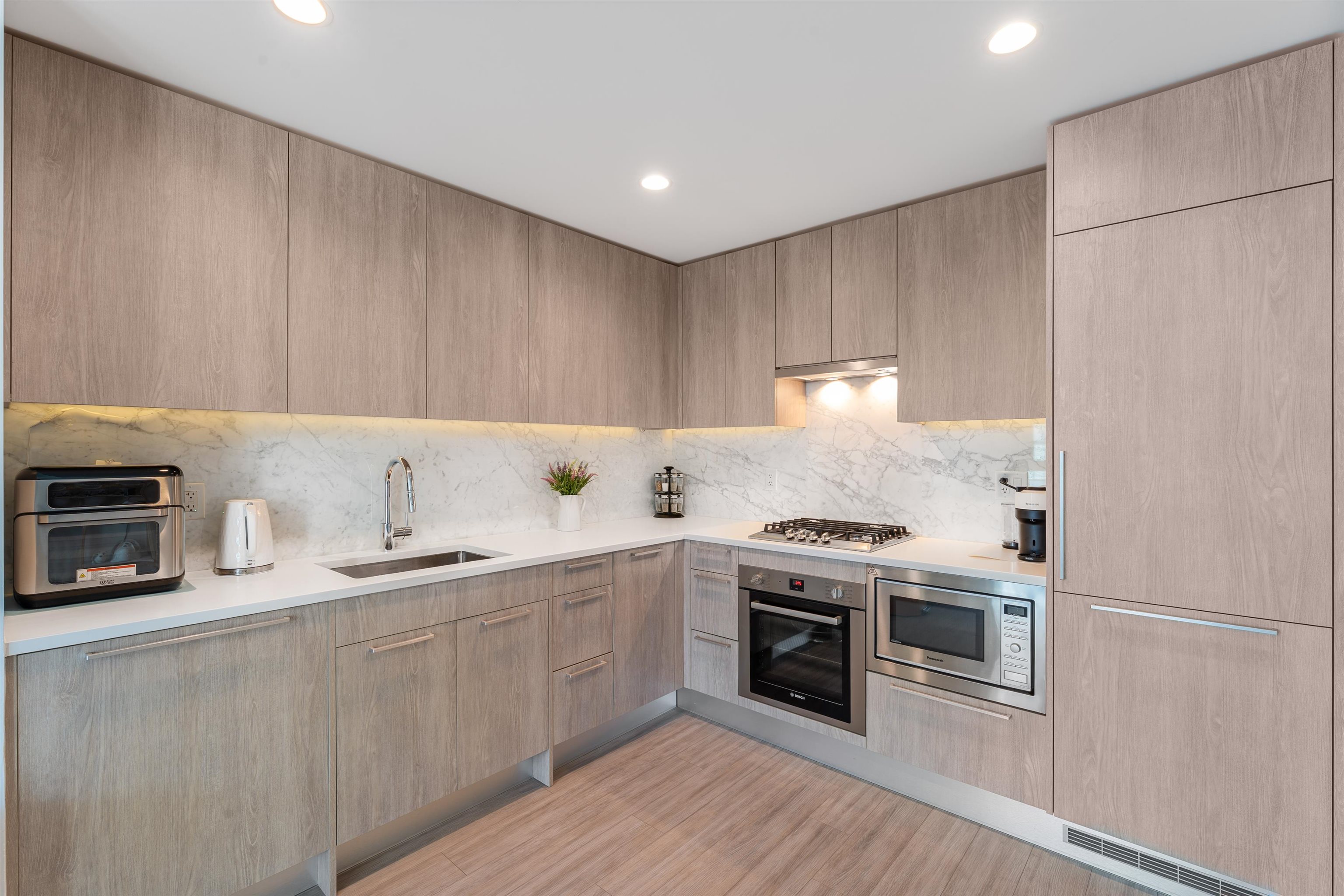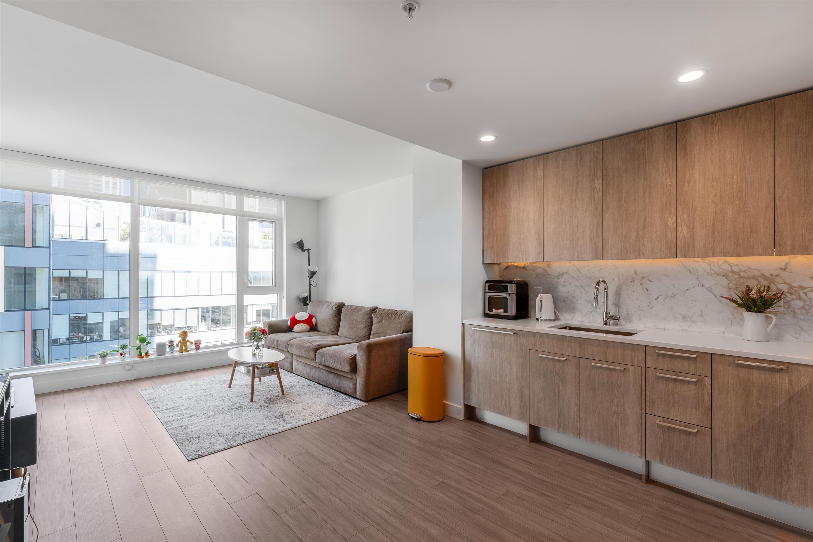 Welcome to this modern 1 bedroom + den home in the heart of Metrotown! This bright north-facing unit features floor-to-ceiling windows and laminate floors throughout. The sleek kitchen is equipped with quartz countertops, stainless steel appliances, and integrated cabinetry. Stay comfortable year-round with central heating and cooling (A/C). Comes with 1 parking and 1 storage. Enjoy excellent amenities including an exercise room and indoor pool. Steps to Metrotown Mall, SkyTrain, Central Park, library, scho...