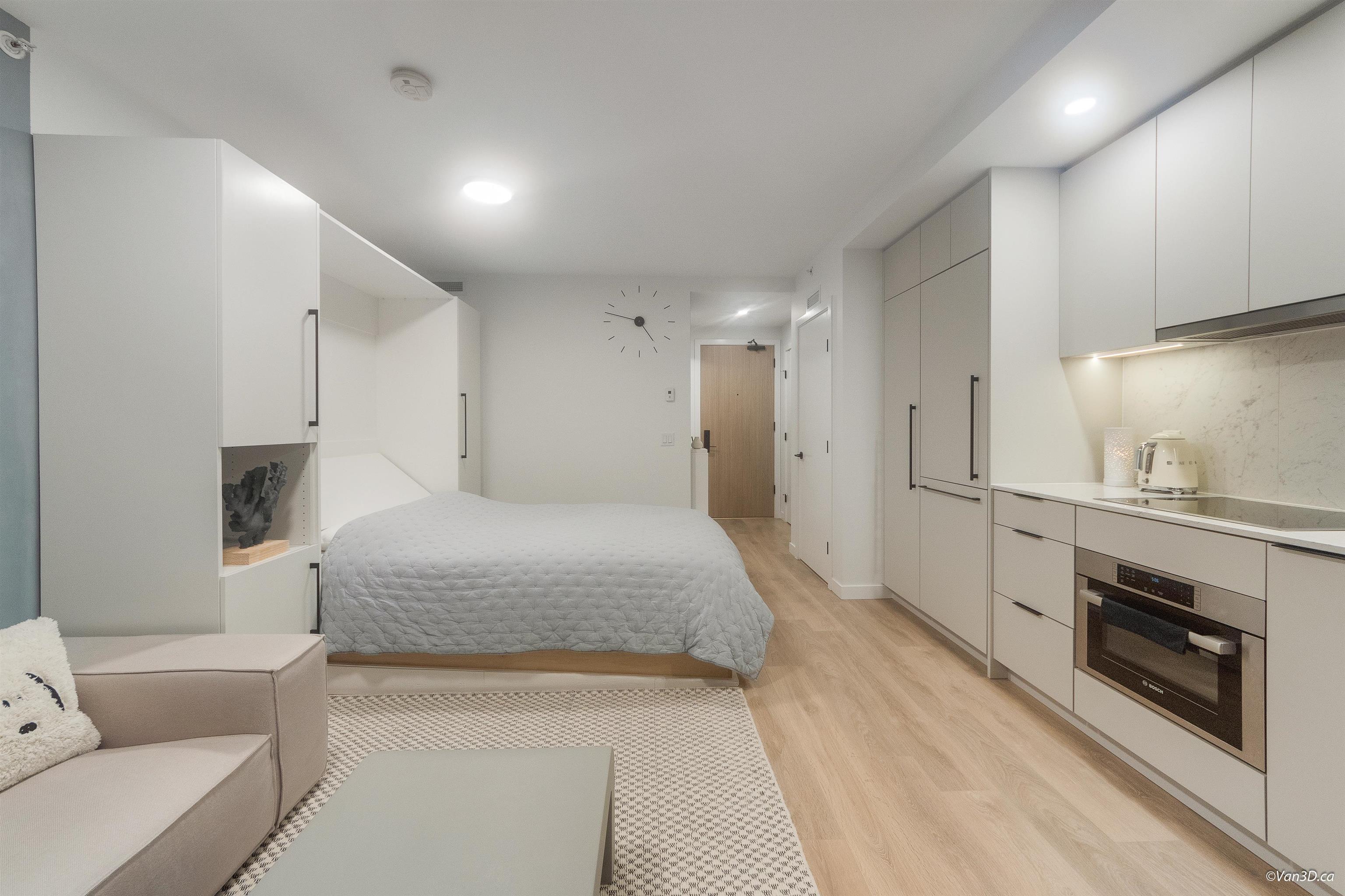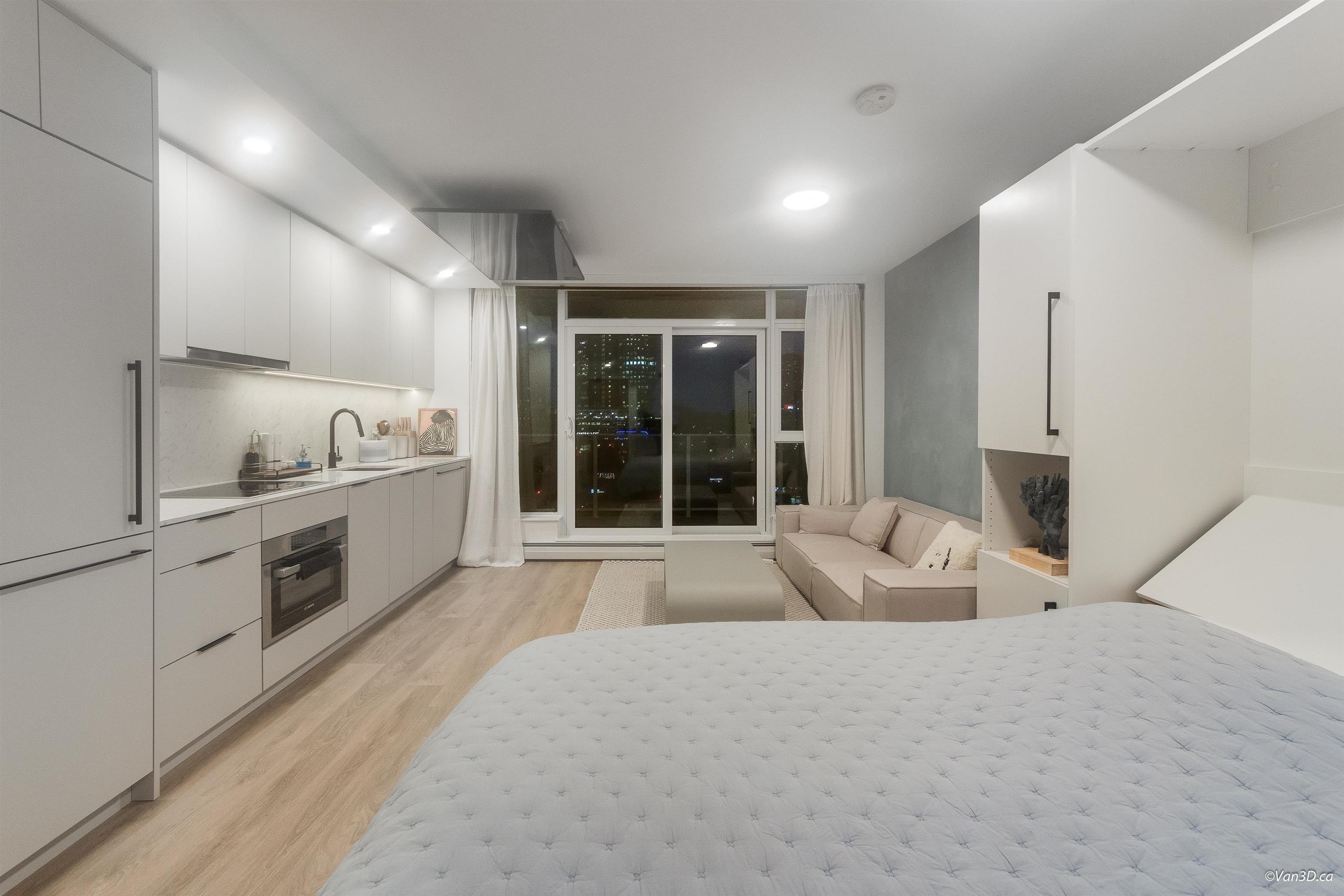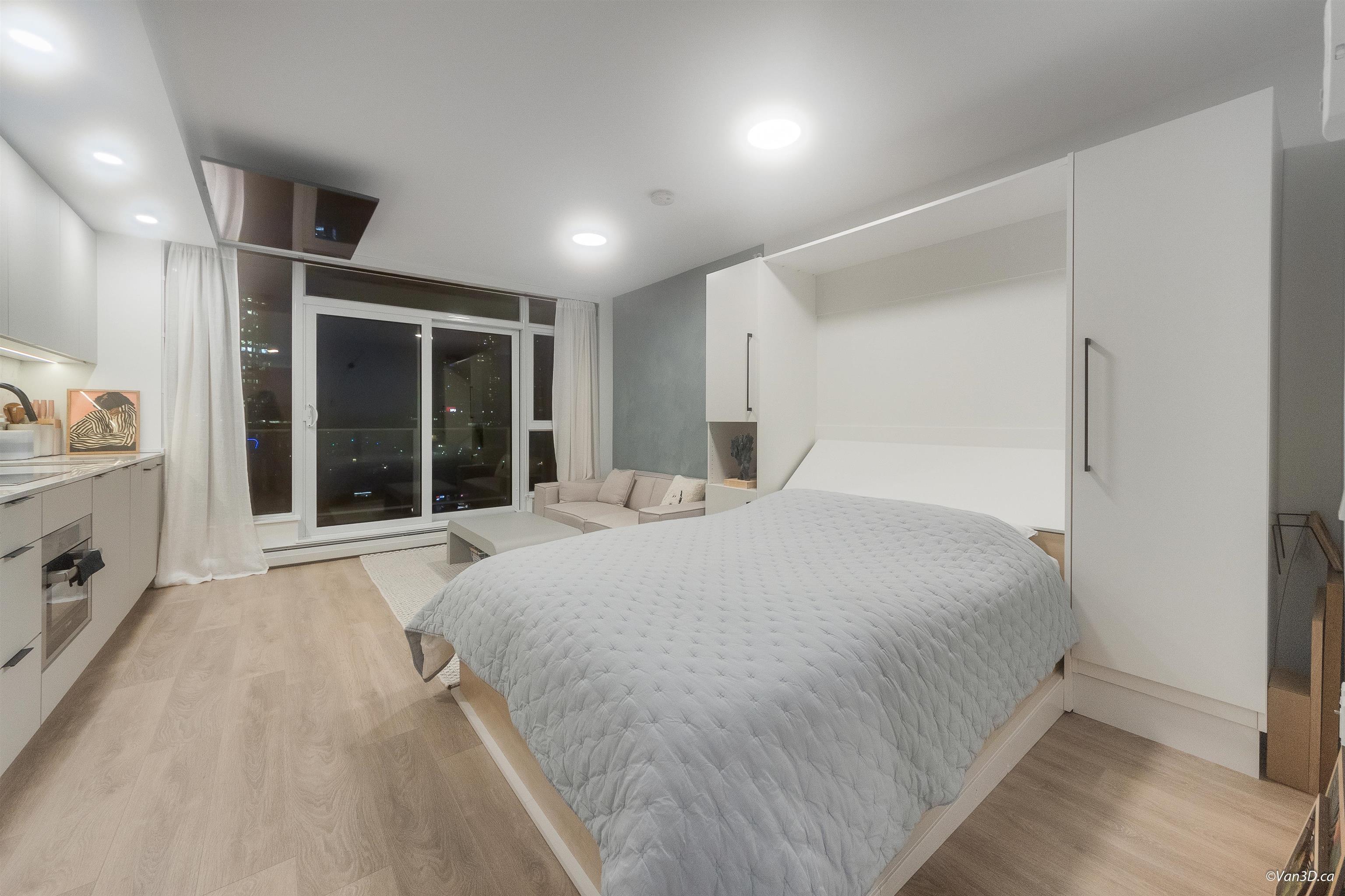 IN THE HEART OF SURREY CITY CENTRE! Where comfort meets unbeatable convenience. Enjoy stunning sunset and city skyline views right from your window. Ideally located just steps from Walmart, T&T, Shoppers Drug Mart, Surrey Central Mall, SkyTrain Station, and a wide selection of dining and everyday amenities. With SFU, KPU, and the future UBC Surrey campus nearby. This is an excellent choice for both living and investment. A Queen sized Murphy bed, maximizing your living space. Efficient and functional Kitche...