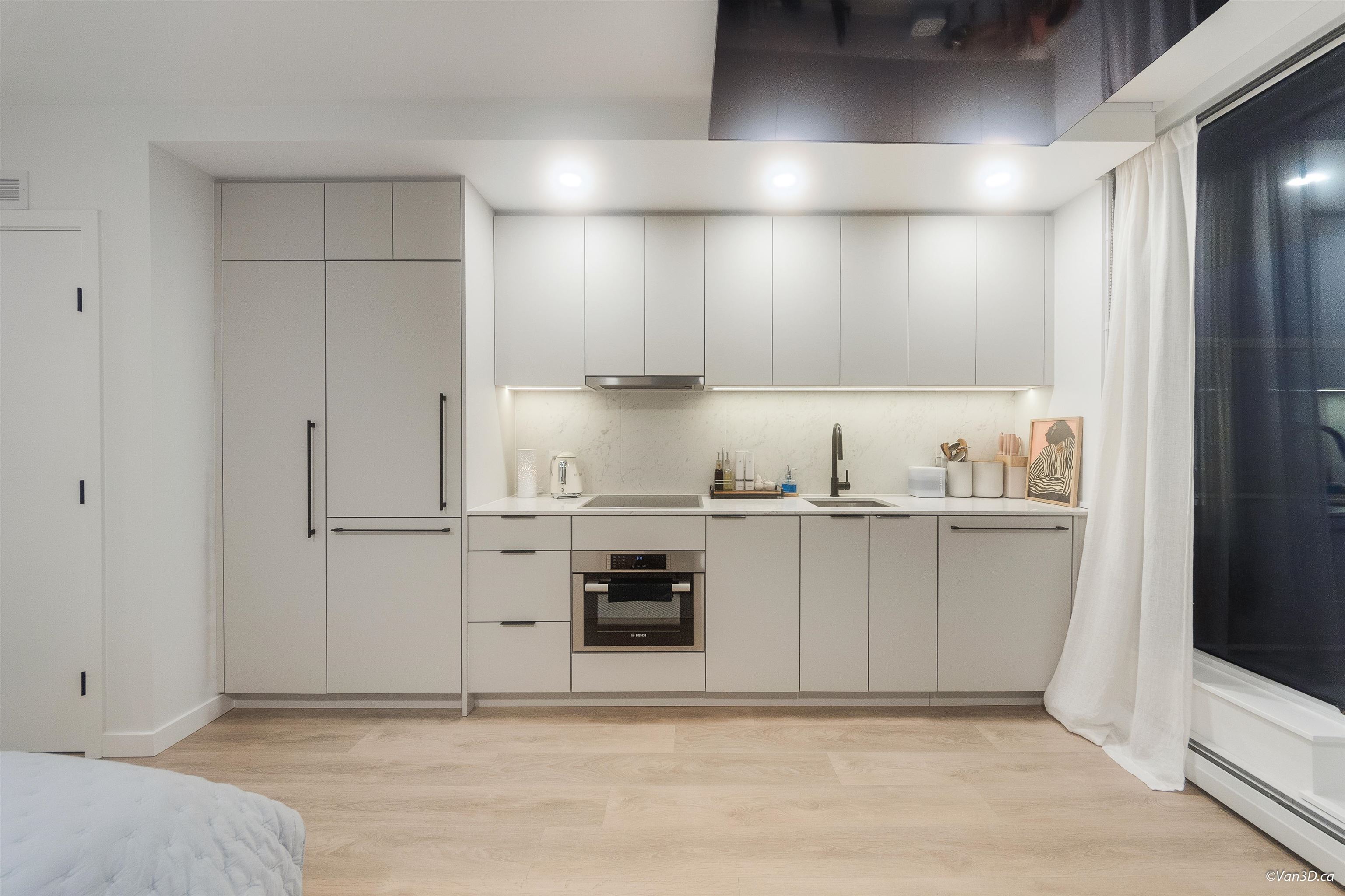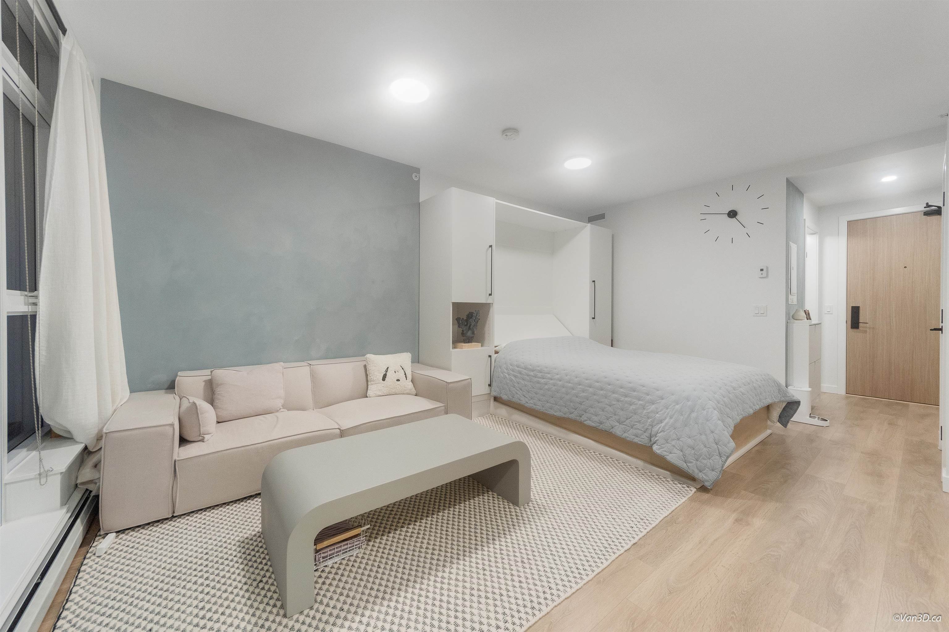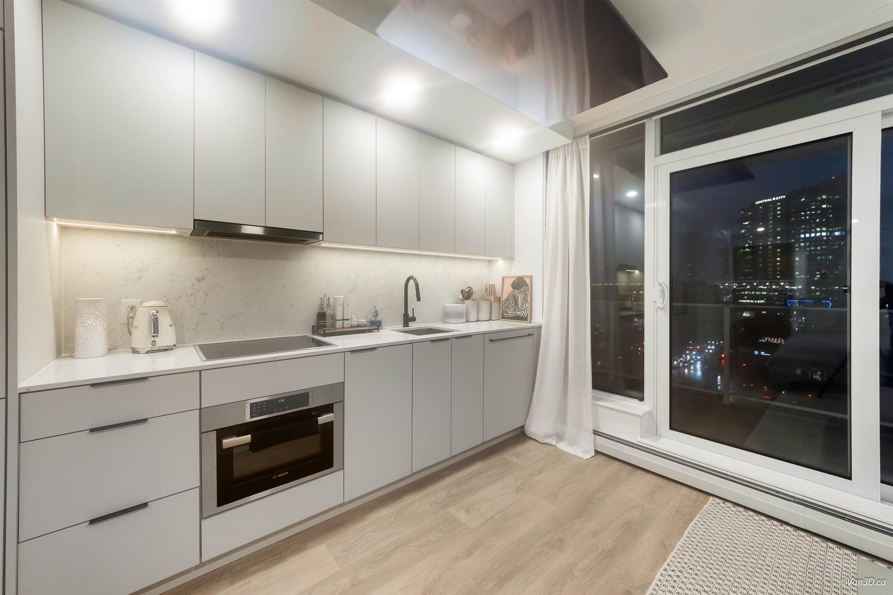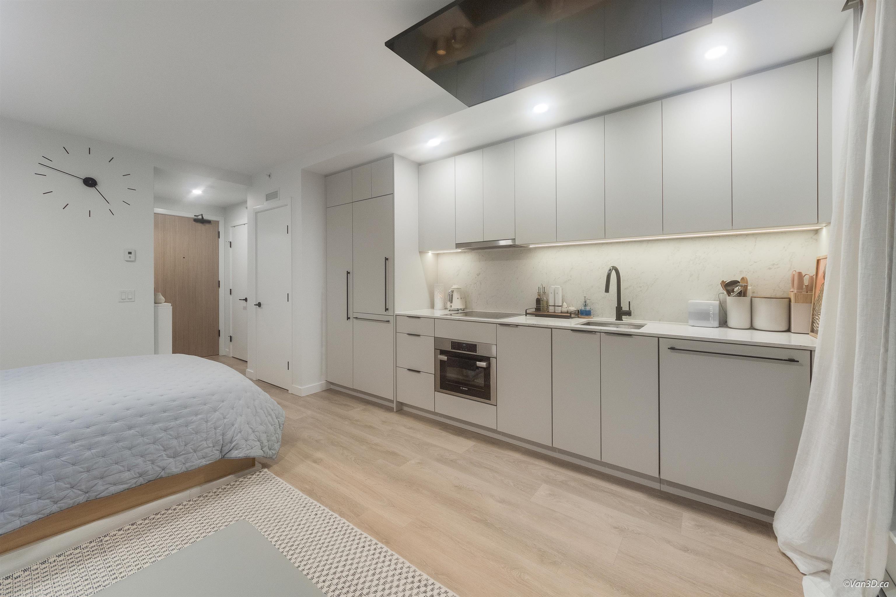 IN THE HEART OF SURREY CITY CENTRE! Where comfort meets unbeatable convenience. Enjoy stunning sunset and city skyline views right from your window. Ideally located just steps from Walmart, T&T, Shoppers Drug Mart, Surrey Central Mall, SkyTrain Station, and a wide selection of dining and everyday amenities. With SFU, KPU, and the future UBC Surrey campus nearby. This is an excellent choice for both living and investment. A Queen sized Murphy bed, maximizing your living space. Efficient and functional Kitche...