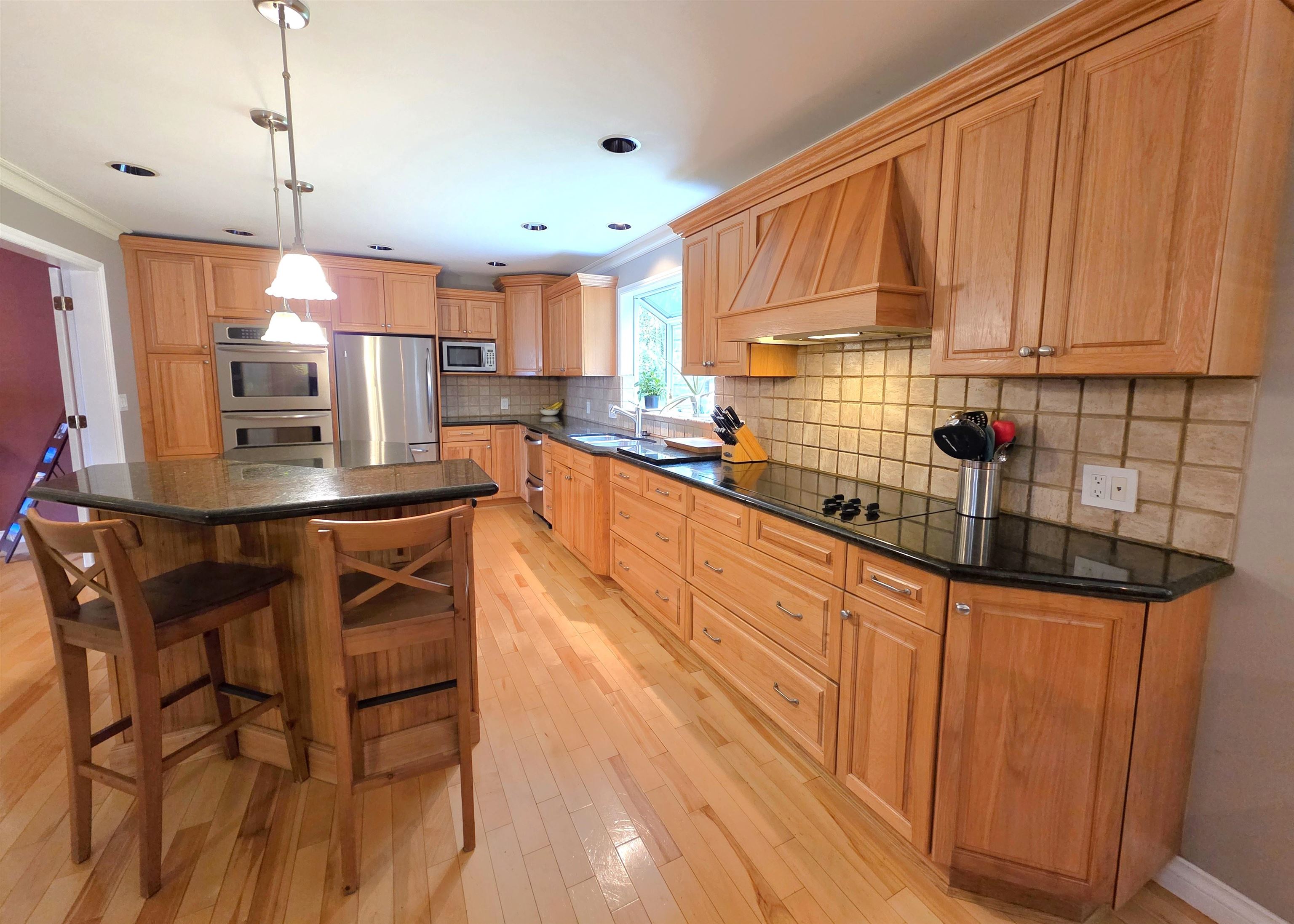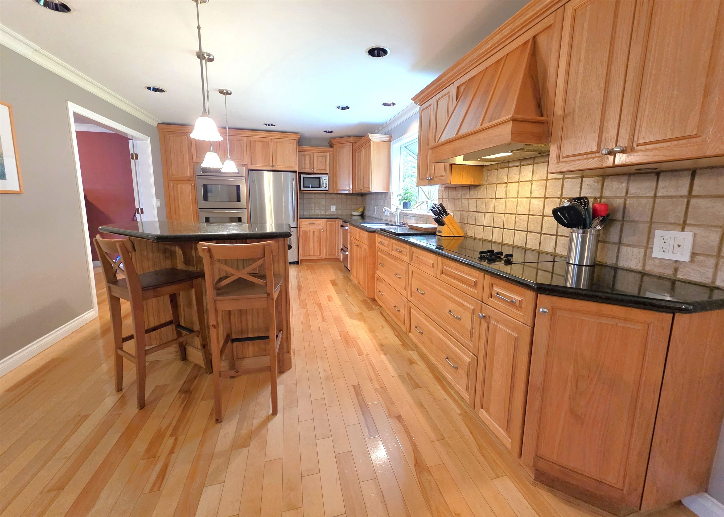 FOREST HILLS BEAUTY! Great central location at the end of a cul-de-sac, backing onto treed greenspace. Extremely well maintained by the owner for the past 20 years. Huge open kitchen, eating area, and family room, once redone with stainless steel appliances, double oven, large center island, and loads of cabinet space with granite counters. Sliding doors lead to a huge deck and a south-facing, fully fenced backyard. Upstairs features a generous primary bedroom with two additional bedrooms, plus a games room...