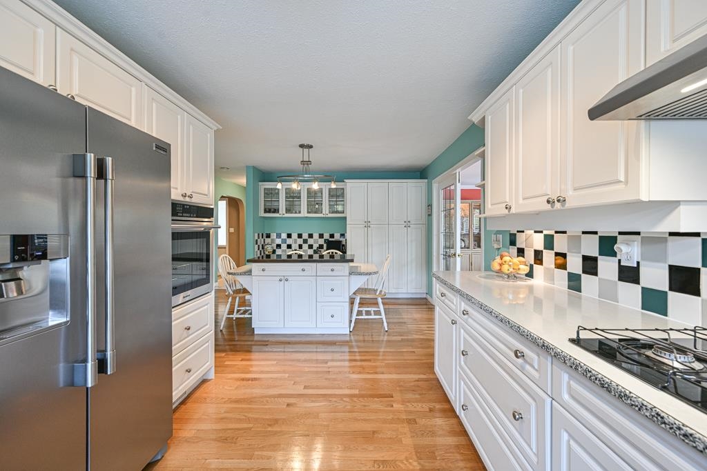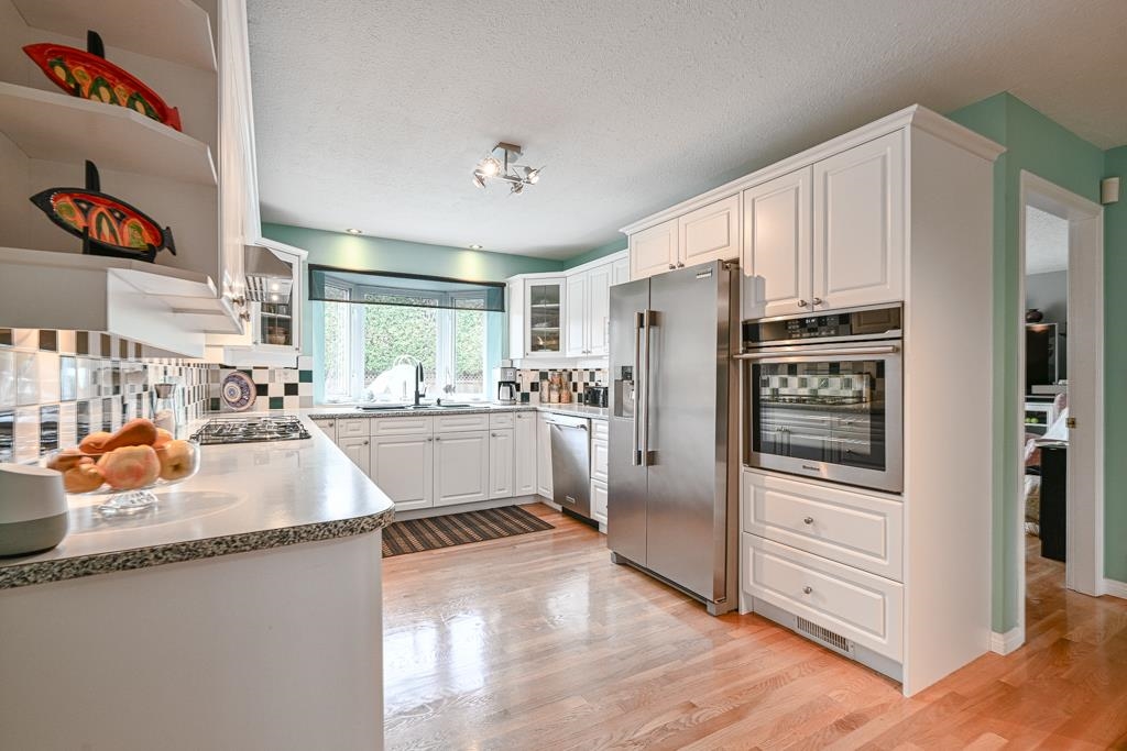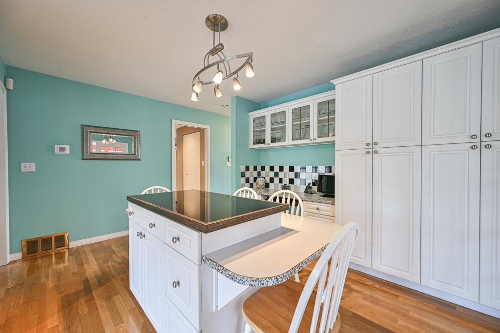 Welcome to this beautifully upgraded 5 bed, 3 bath home featuring a functional layout, this home offers spacious rooms, rich hardwood & broadloom floors, and a stunning vaulted cedar ceiling in the living room. The bright, spacious kitchen comes with updated Stainless steel appliances and flows seamlessly into the main living areas, while a private family room overlooks the backyard oasis, perfect for relaxing or entertaining. Enjoy year-round comfort with a heat pump, high-efficiency furnace, and hot water...