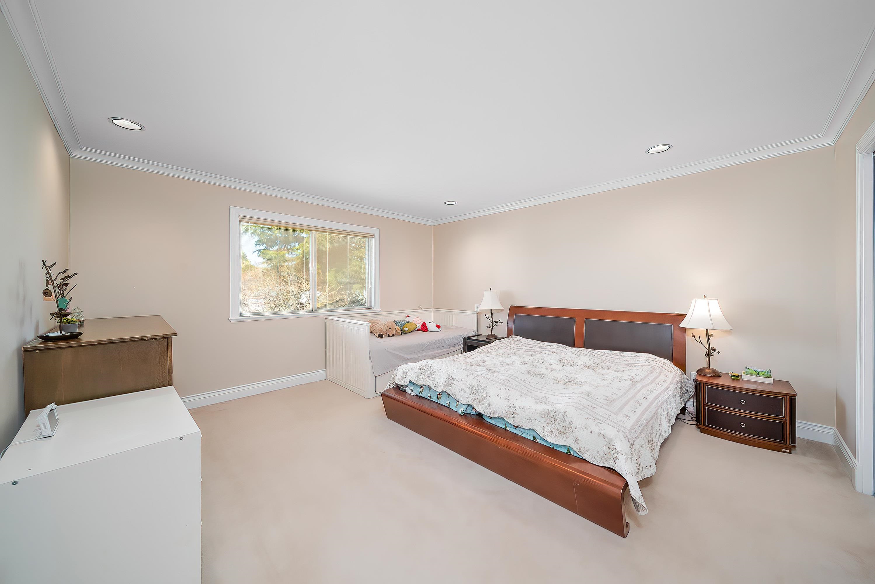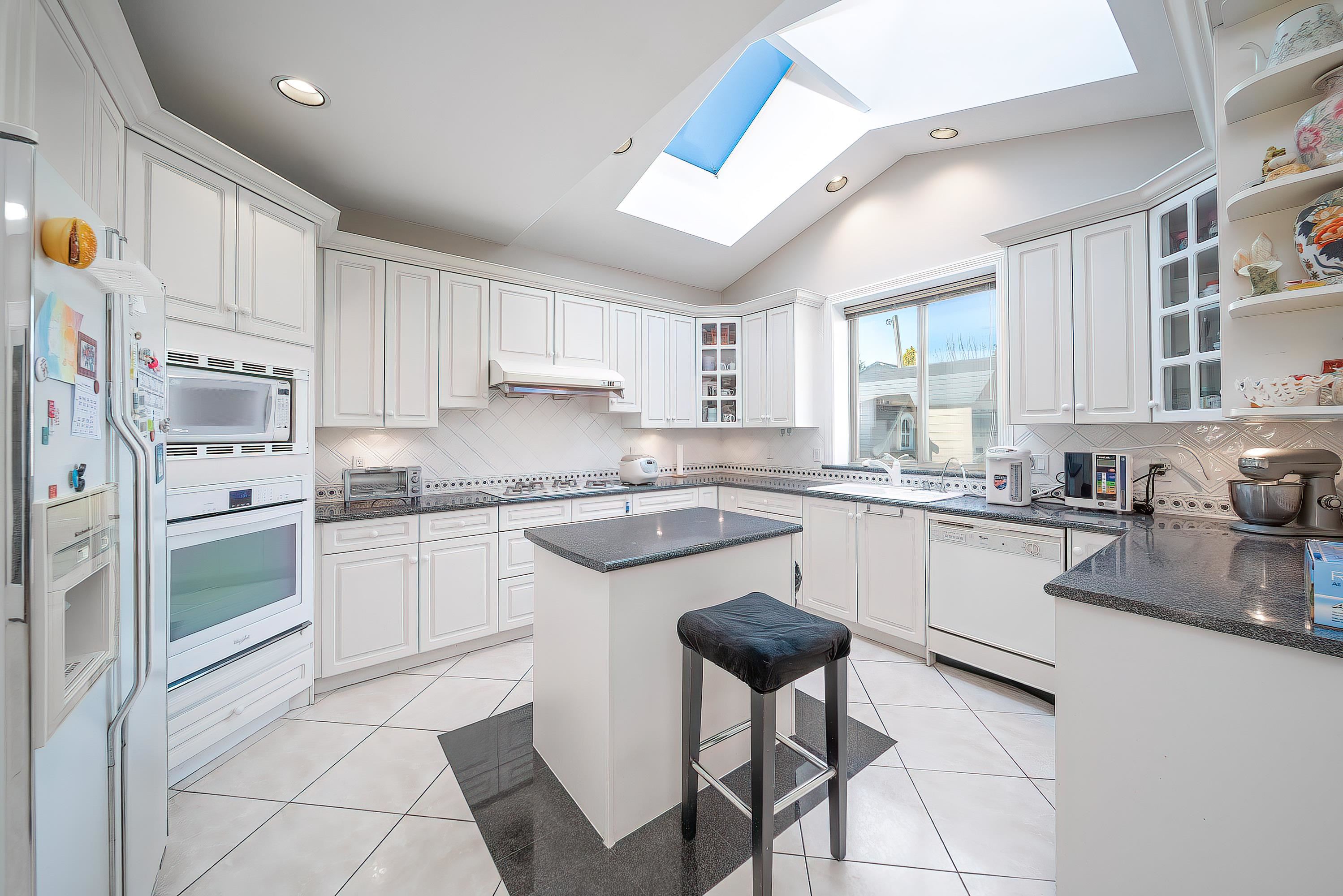 Quality-built home in desirable Saunders, Richmond. Well-maintained 6 bed, 5 bath home with approx. 3,298 sq ft living on nearly 7,000 sq ft lot. Bright South–North exposure with functional layout. Elegant crystal chandeliers in foyer and dining room. Skylights in the foyer corridor and kitchen fill the home with bright, natural light. Radiant in-floor heating on both levels. Two kitchens (main + wok). Rare 5 bedrooms upstairs. Main floor bedroom with full ensuite. No ditch or power lines on this side of th...