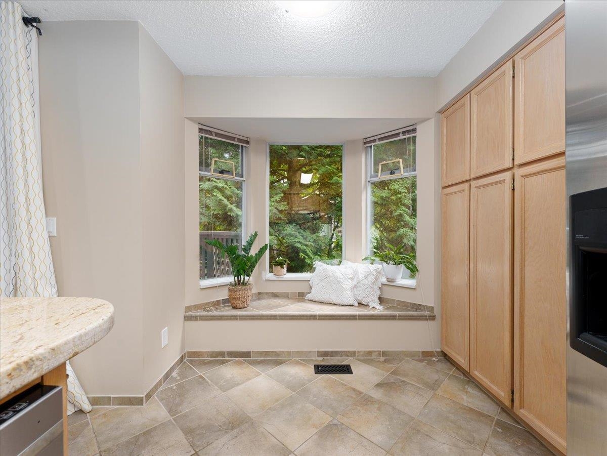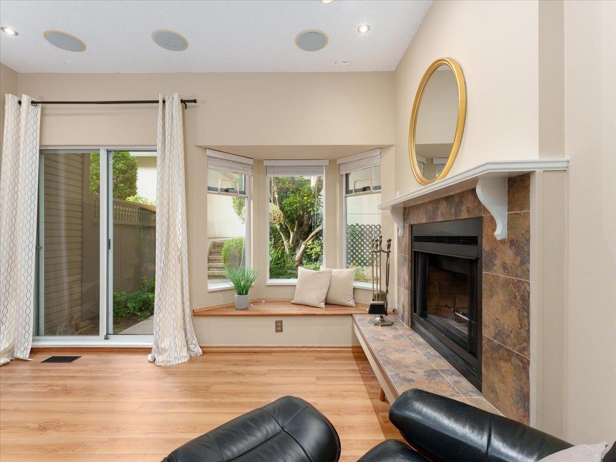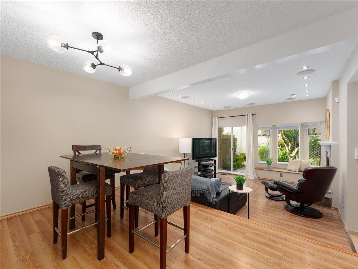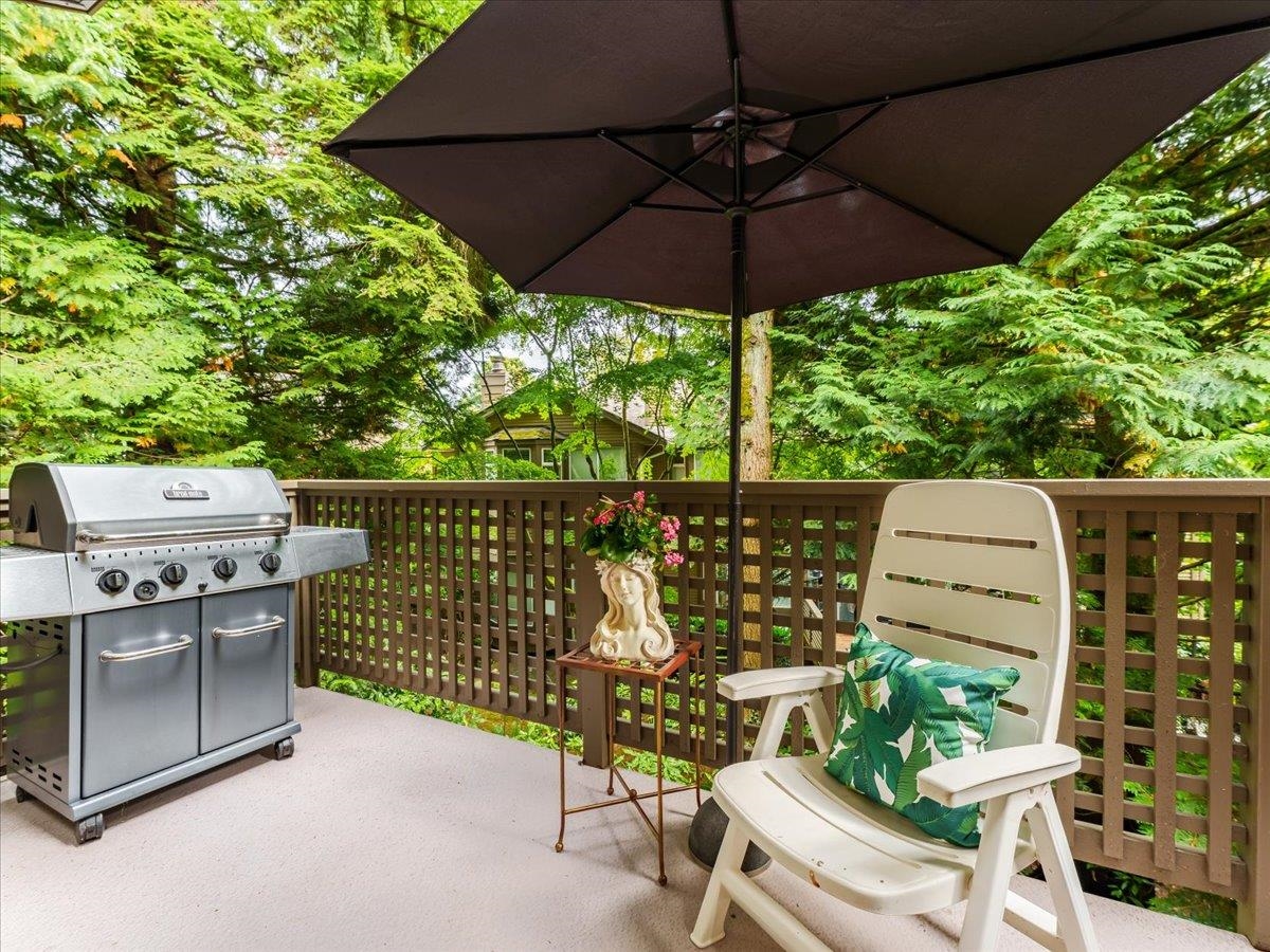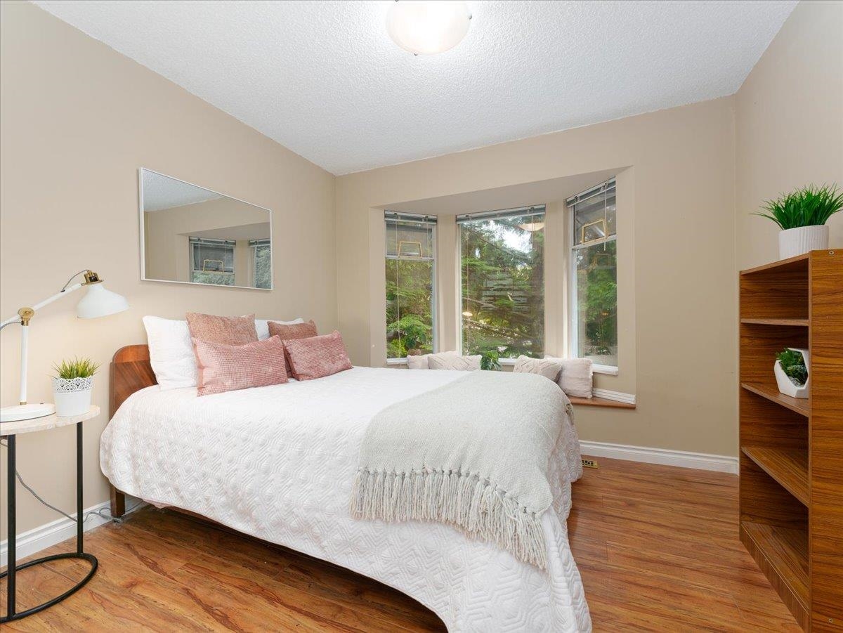 House sized 2098 sft corner townhome w/ 4 beds & 3 baths in a tranquil natural setting. Rare 350 sft detached double garage + 2 car pad, front/side/back gardens, 380 sft total patio space & 74 sft balcony off kitchen for BBQ's & morning coffee. Large principle rooms, bay windows, family-size kitchen w/new DW & stove, wood fire place, updated primary bath w/ waterfall shower & free-standing tub. 4th bed below for in-laws, SFU students or combine for larger rec. room. Plenty of storage w/ large crawl space. P...