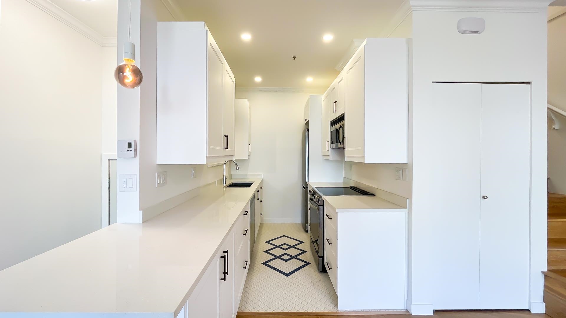 NO STRATA FEES for this 1/2 Duplex on this quiet, peaceful rear facing lot. Beautiful Oak Hardwood floors throughout, featuring french doors through to a private deck and fenced yard with garden. Great for children, pets or entertaining. 2Bed/2bath home with ensuite in master bedroom. Master features a large walk-in closet. The top floor includes a den, or 3rd bedroom, that leads to a gorgeous rooftop deck with stunning mountain views. Recently Remodeled kitchen and tastefully painted throughout. Single ca...