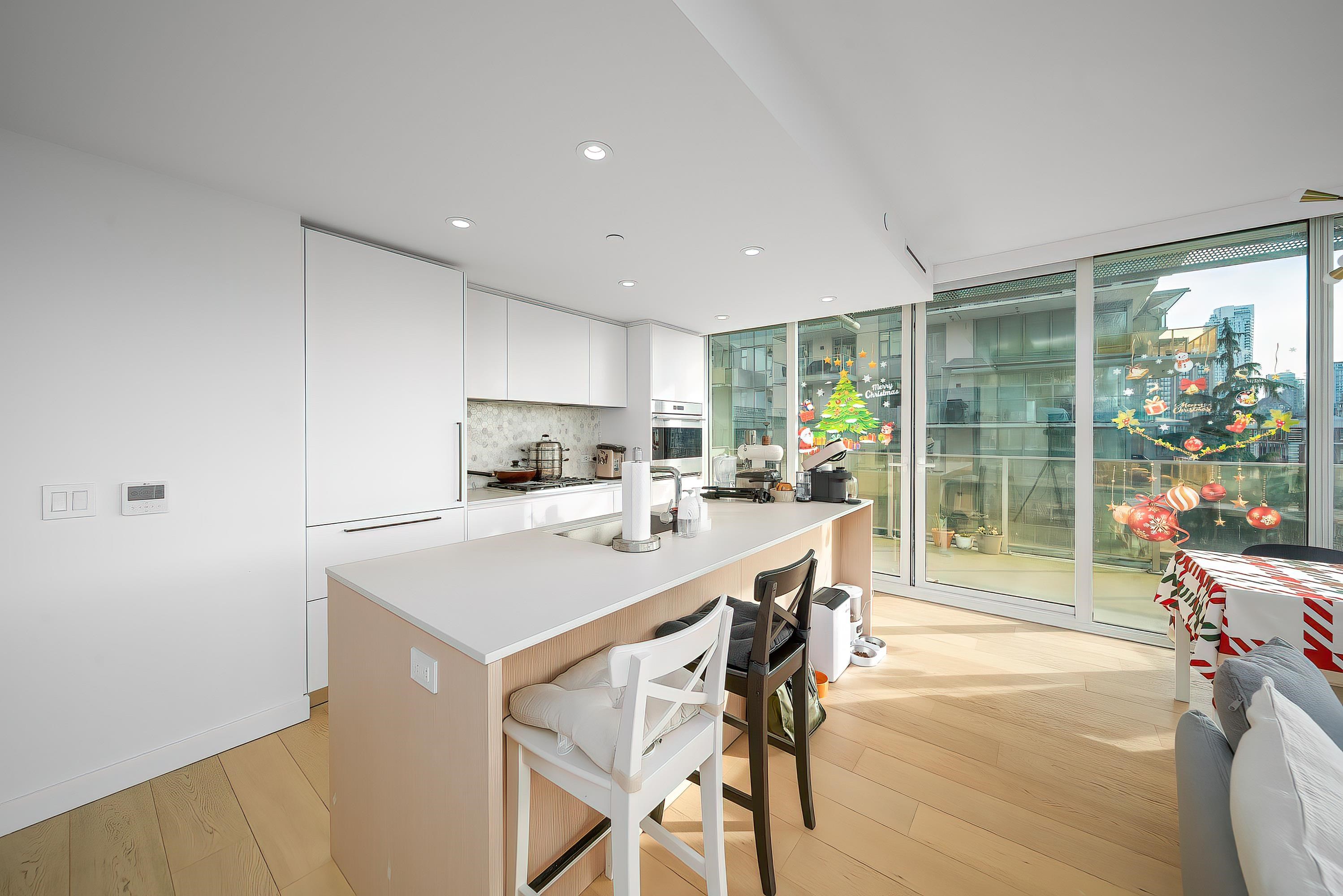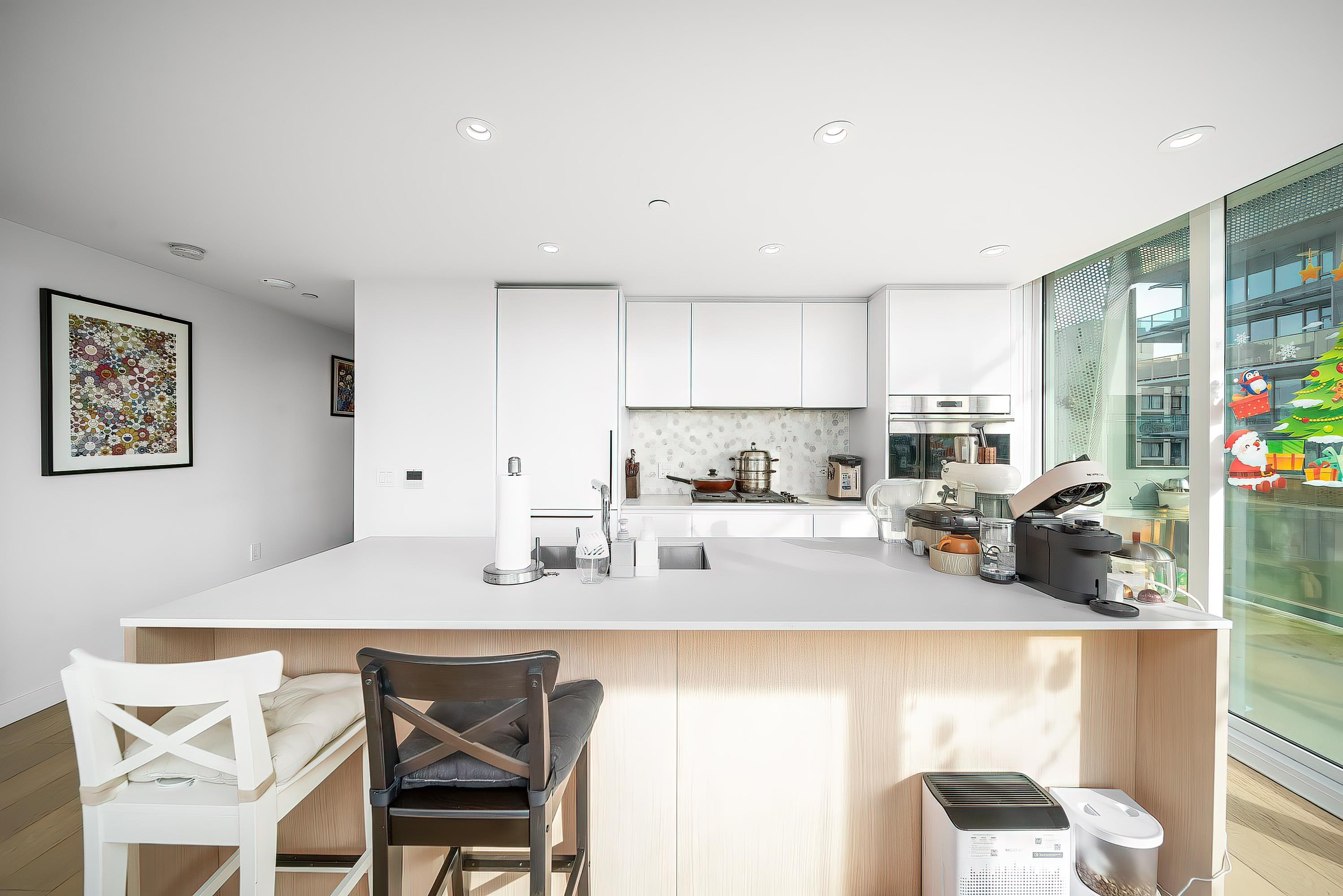 Step into a masterpiece of West Coast modernism at Mirabel by Marcon. Brought to life by the visionary Henriquez Partners Architects and acclaimed interior designer Alda Pereira, this rare 2-bedroom, 2-bathroom residence is a true study in minimalist elegance. Natural light pours into the open living space through stunning floor-to-ceiling windows, highlighting rich hardwood floors and a sleek kitchen equipped with premium stainless steel appliances. Enjoy year-round comfort with state-of-the-art air condit...