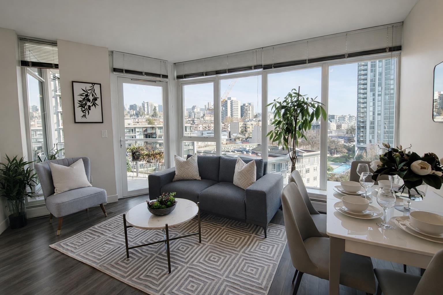 Welcome to Ventana, a premier concrete residence in the heart of Lower Lonsdale. This bright 2 bed, 2 bath corner suite offers 800 sqft with floor-to-ceiling windows framing harbour, city mountain views. The open layout features a modern kitchen with quartz counters, sleek cabinetry gas cooktop, flowing into a light-filled livingdining area with access to a private balcony. The spacious primary bedroom includes dual closets a 4-piece ensuite, while the second bedroom is perfect for guests or a home office. ...