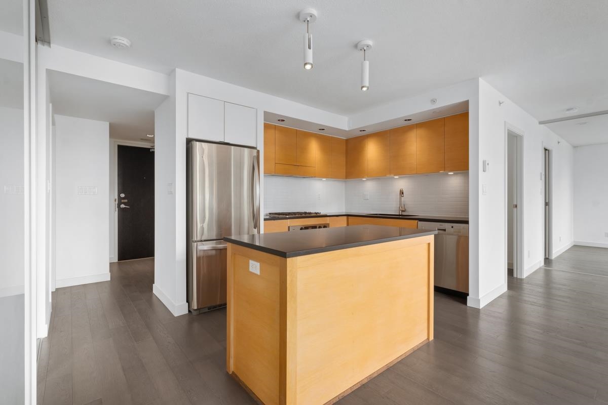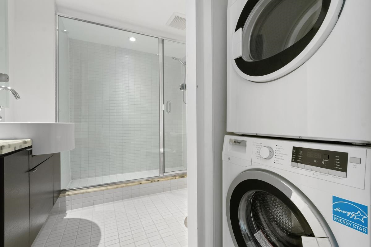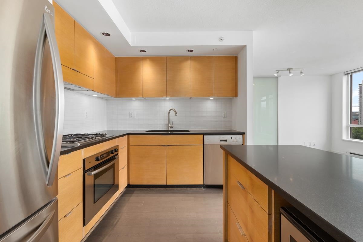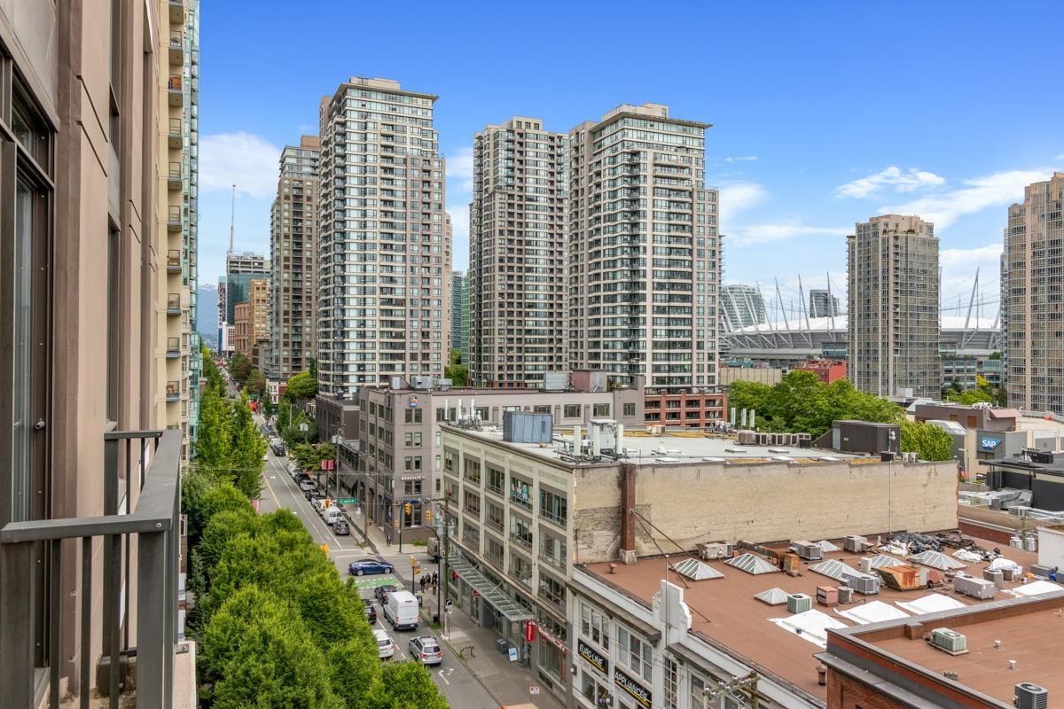 Spacious 2 bed condo with an excellent layout and expansive city views! This 1,050 sqft corner suite with views that clear the heritage Yaletown conversion buildings below. This functional home has new engineered hardwood flooring, plus new paint and fixtures. The kitchen features oak cabinetry, honed black granite countertops, and cooktop. Both bathrooms boast marble-topped vanities; the master bathroom has a deep soaker tub and separate shower, plus a wall of windows. Second bathroom has an over-sized sho...