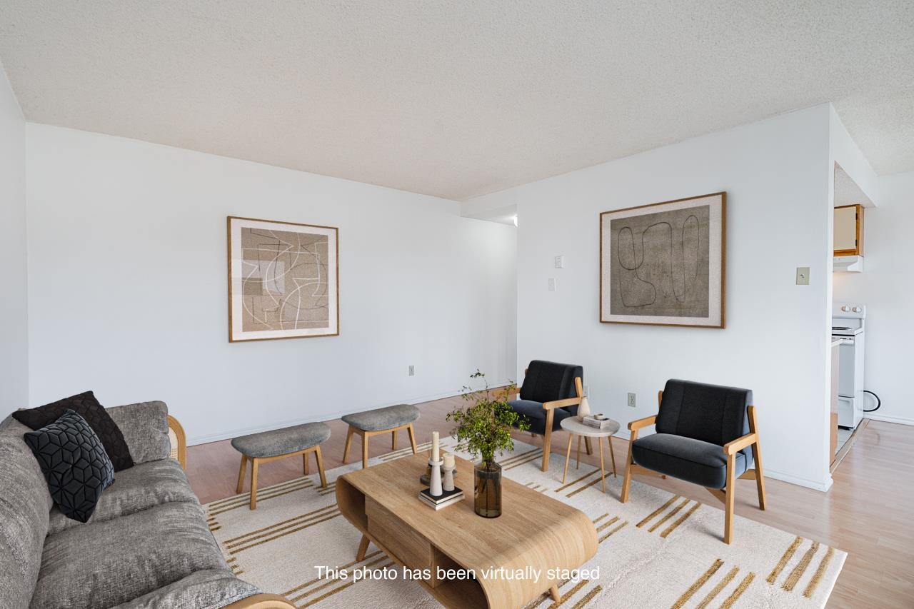MOVE-IN READY! Bright & spacious, 691 sq ft, 1 Bed & 1 Bath with efficient layout, large room sizes, plenty of windows, storage & private, covered deck located on quiet side of the building overlooking city views. Recent building updates include: roof, pool deck, landscaping, parking membrane, re-piping & elevator upgrades. Very convenient location close to parks, transit, New West skytrain station, shopping, restaurants & cafes, schools, the Quay, movie theater & more. Building has ample shared laundry fac...