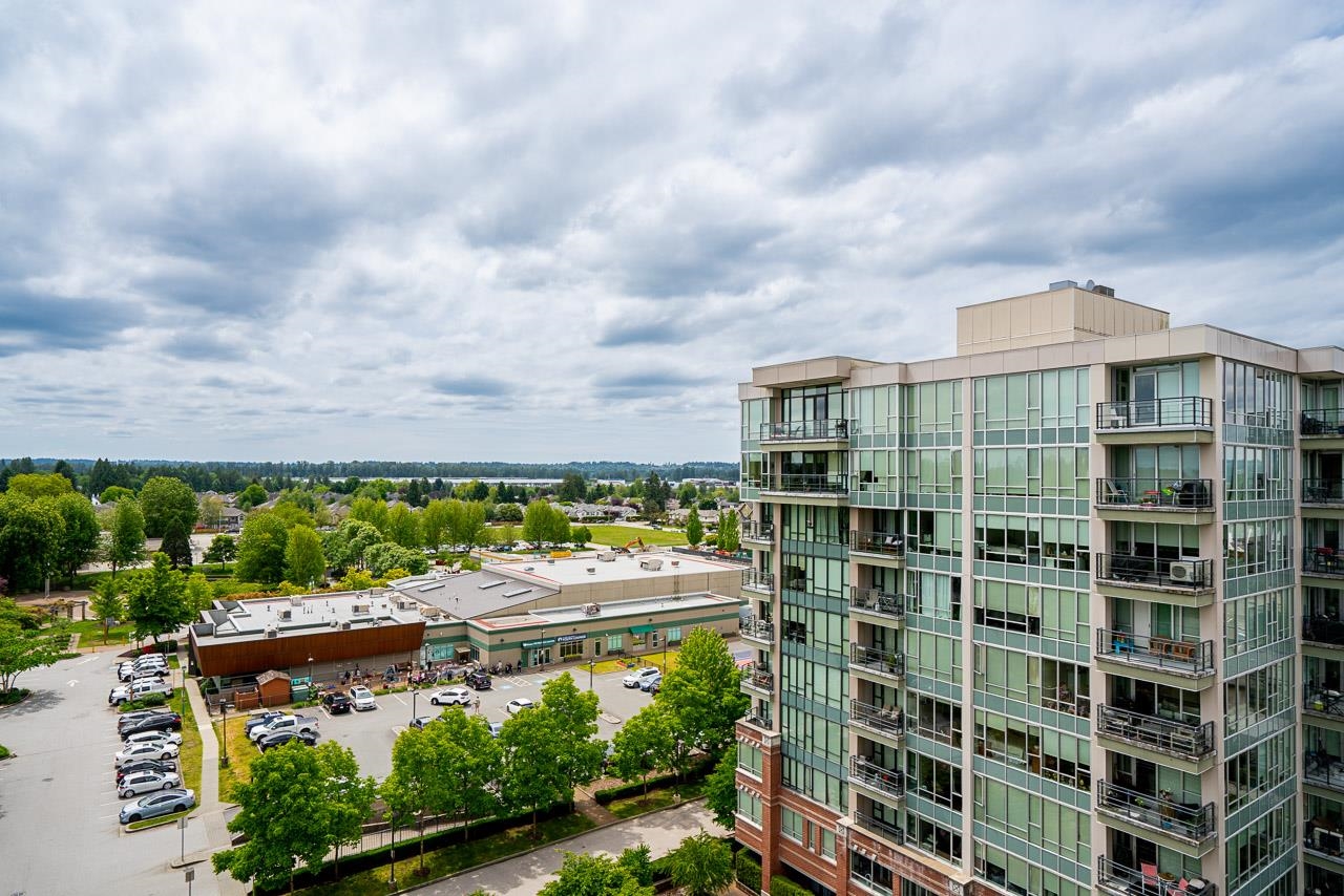 SUB-PENTHOUSE with spectacular south-facing views from Pitt Meadows’ tallest building! This 9th-floor 1-bed + den offers sweeping city and river vistas in a rare concrete high-rise. Features stainless steel appliances, granite counters, and floor-to-ceiling windows for exceptional natural light. Steps to shopping, dining, recreation, and transit. Includes secure parking and storage locker. A prime central location and solid construction make this an incredible opportunity—don’t miss out!