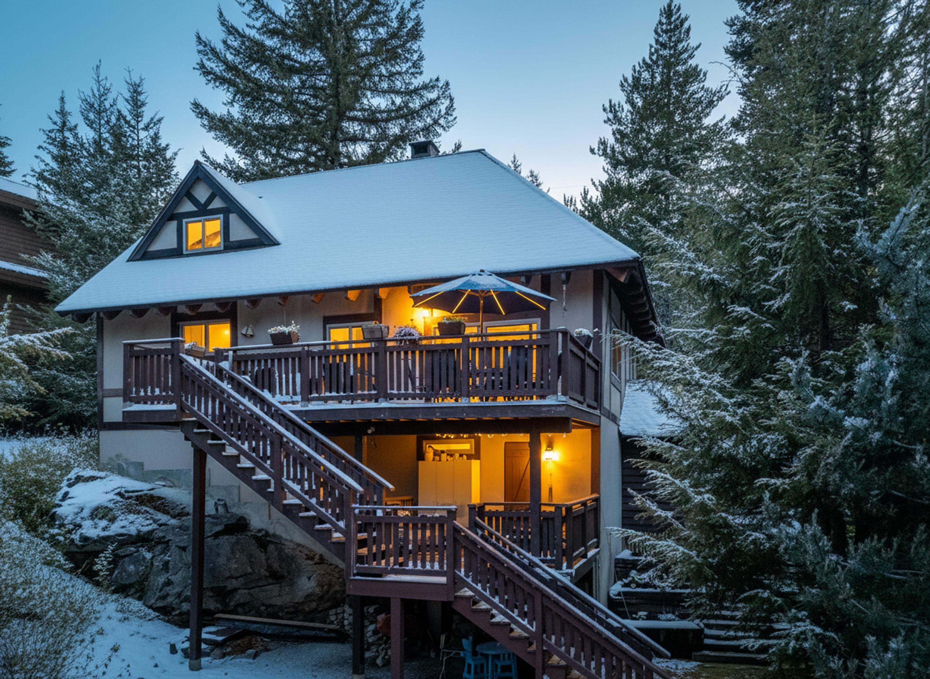 Welcoming alpine-inspired chalet combining modern living with timeless charm, thoughtfully cared for by one family for over 30 years. Features 3 beds, 2 baths, a large vaulted loft, and open layout. Airy kitchen with breakfast nook, sunken living room, and formal dining opening onto a spacious patio with mountain views. Versatile outdoor space with tiered gardens underground irrigation, and host of 2 family weddings. Includes a 2-bed + den guest suite and sauna. Parking for 6, steps from bus route. Renovat...