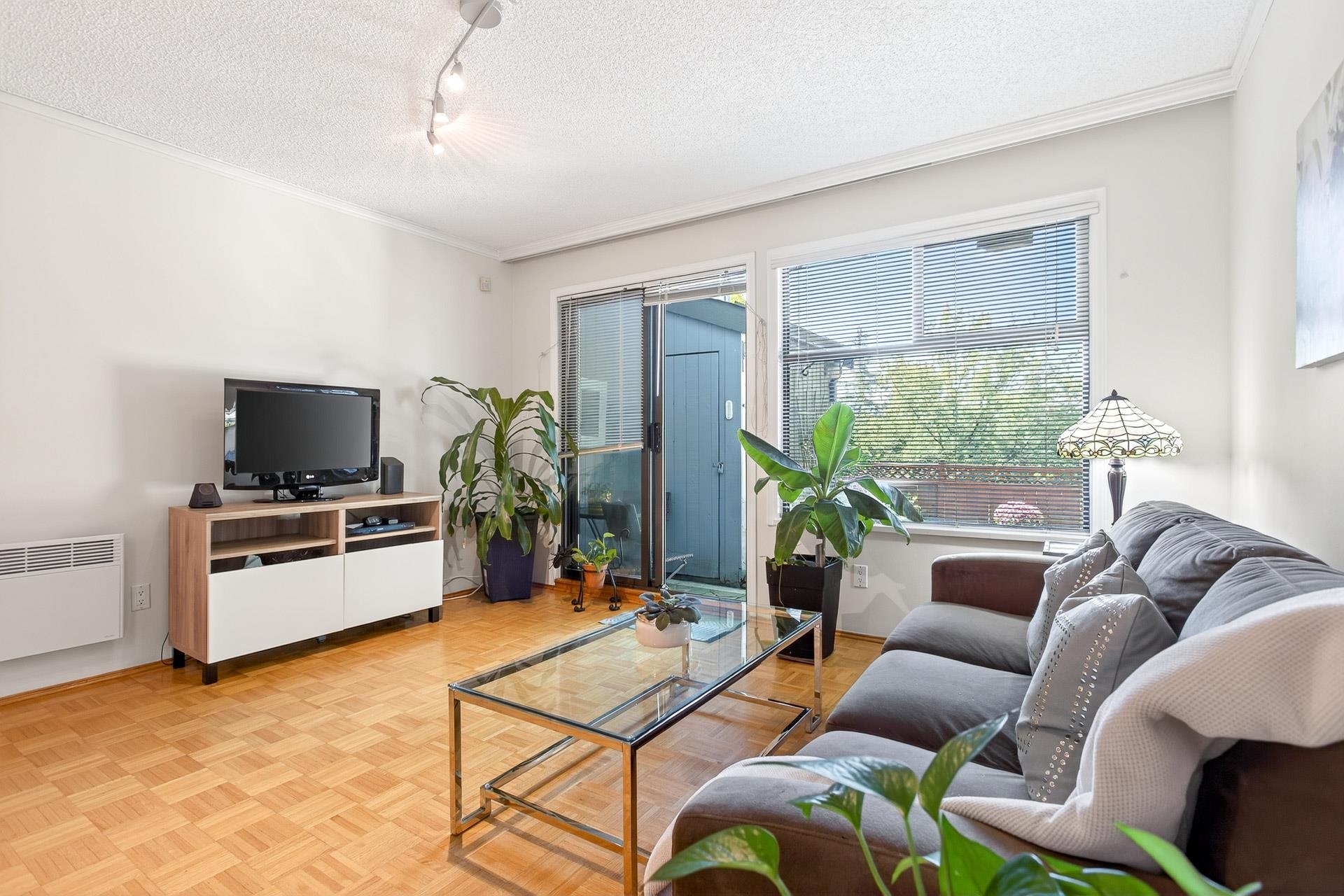 END unit townhouse in popular Woodside Village on Port Moody's North Shore. This family friendly home features over 1000 sqft with 3 beds and full bath upstairs, plus a second full bath on the main. Kitchen with stainless appliances. Easy care parquet and tile floors. Spacious living area with direct access to the private fenced patio/yard complete with storage shed. Easy access to Newport Village, transit and WC Express station. Two allocated parking stalls.