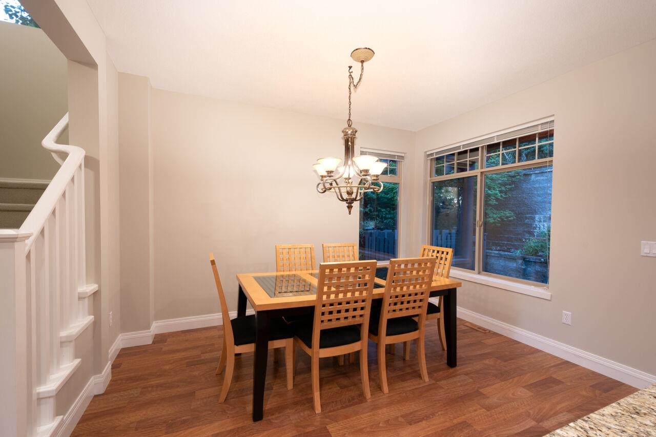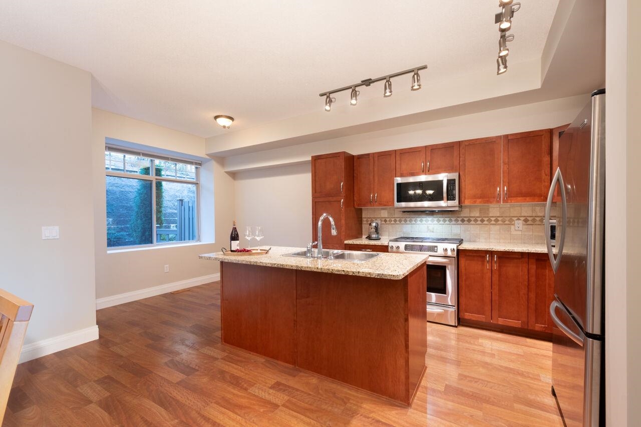 SPECTACULAR VIEWS AND PRIVATE GREENBELT SETTING! This immaculate townhome offers the most private location in upscale COBALT SKY! Enjoy the cozy Great Room that offers endless views and walks out to a huge view deck. No townhome in front to obscure the view...just gorgeous sunsets over Burnaby Mtn. The main floor features quality laminate flooring, fresh new paint, and tons of natural light. The Kitchen offers an entertaining island, maple cabinets, granite counters and upscale appliances. Spacious Dining a...